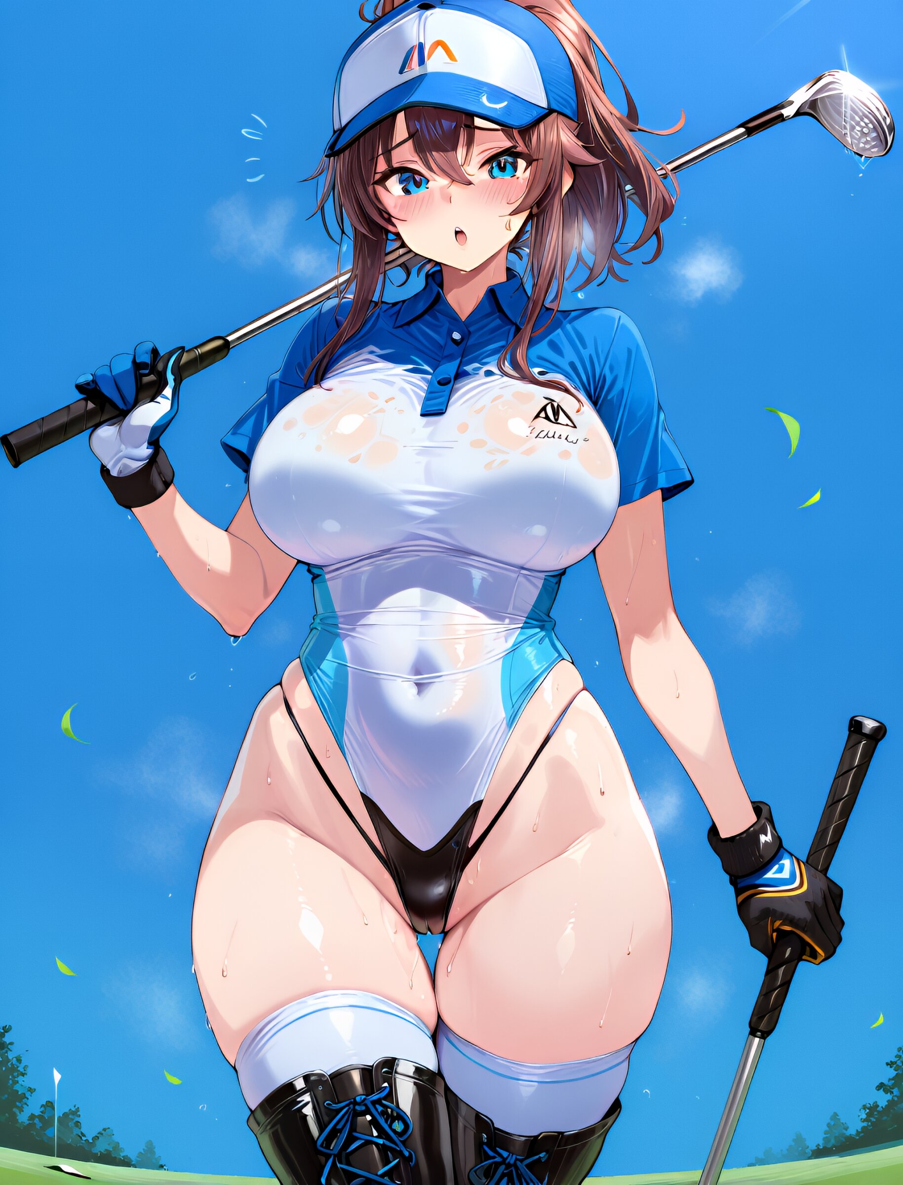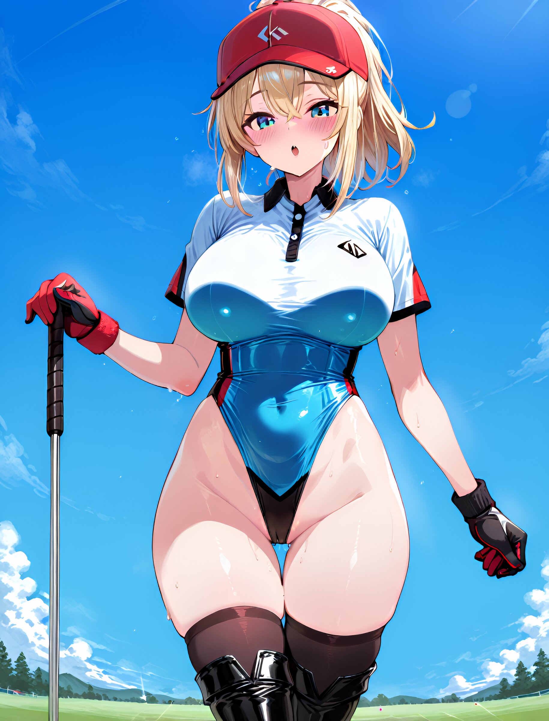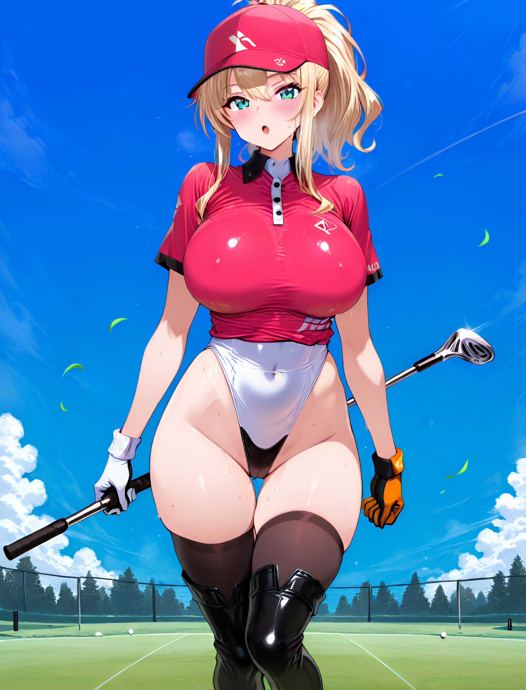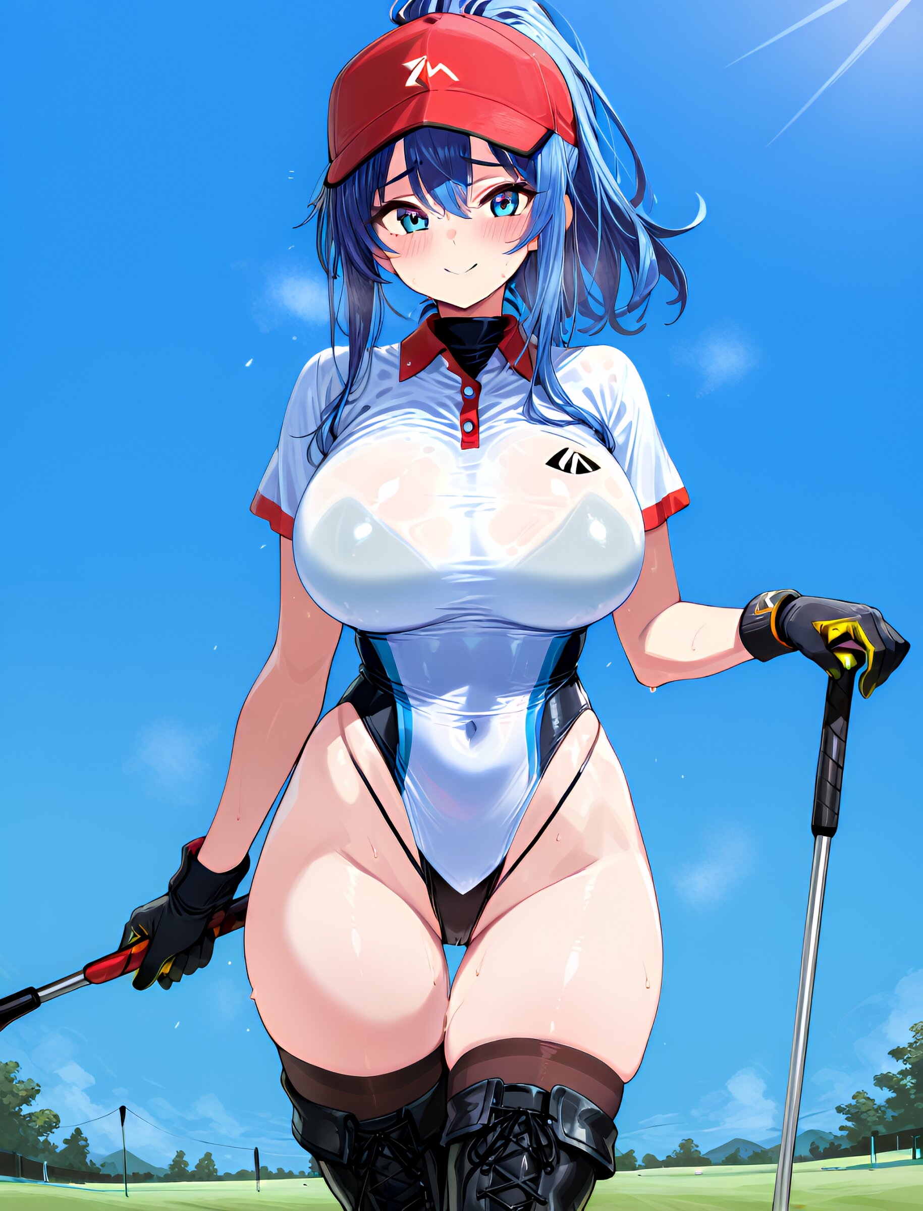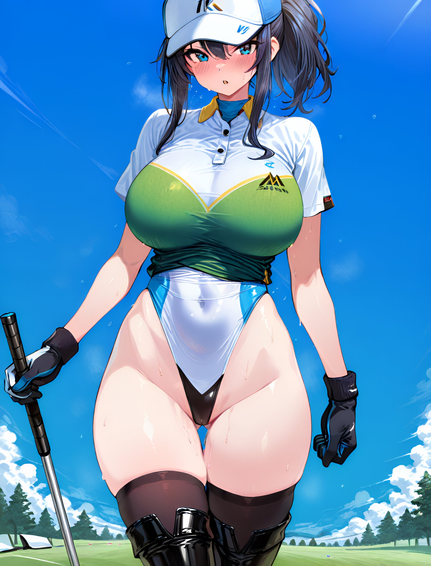 1girl, golf shirt, golf cap, golf glove, holding golf club,(upper body:1.6), (extremely highleg leotard bottom:1.8), (thighhigh boots:1.5), (zettai ryouiki:1.5), (thigh gap:1.5), masterpiece, best quality, ultra-detailed, 8k resolution, very aesthetic, amazing quality <lora:noobai_ep11_stabilizer_v0.11_fp16:0.7> <lora:StS-Illustrious-Detail-Slider-v1.0:2.> <lora:sdxl-hairdetailer_02:2> <lora:xl_more_art-full_v1:1.4> <lora:spo_sdxl_10ep_4k-data_lora_webui:0.7>