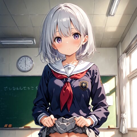 masterpiece, best quality, school uniform, skirt lift, leggings, showing leggings, class room,