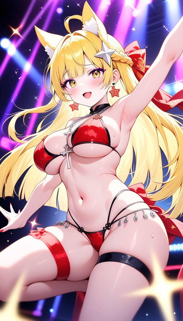 DaysAIのテーマ「バーレスクダンサー」で作成。選択肢は「笑顔」にしたんですが、なぜか下がり眉に。