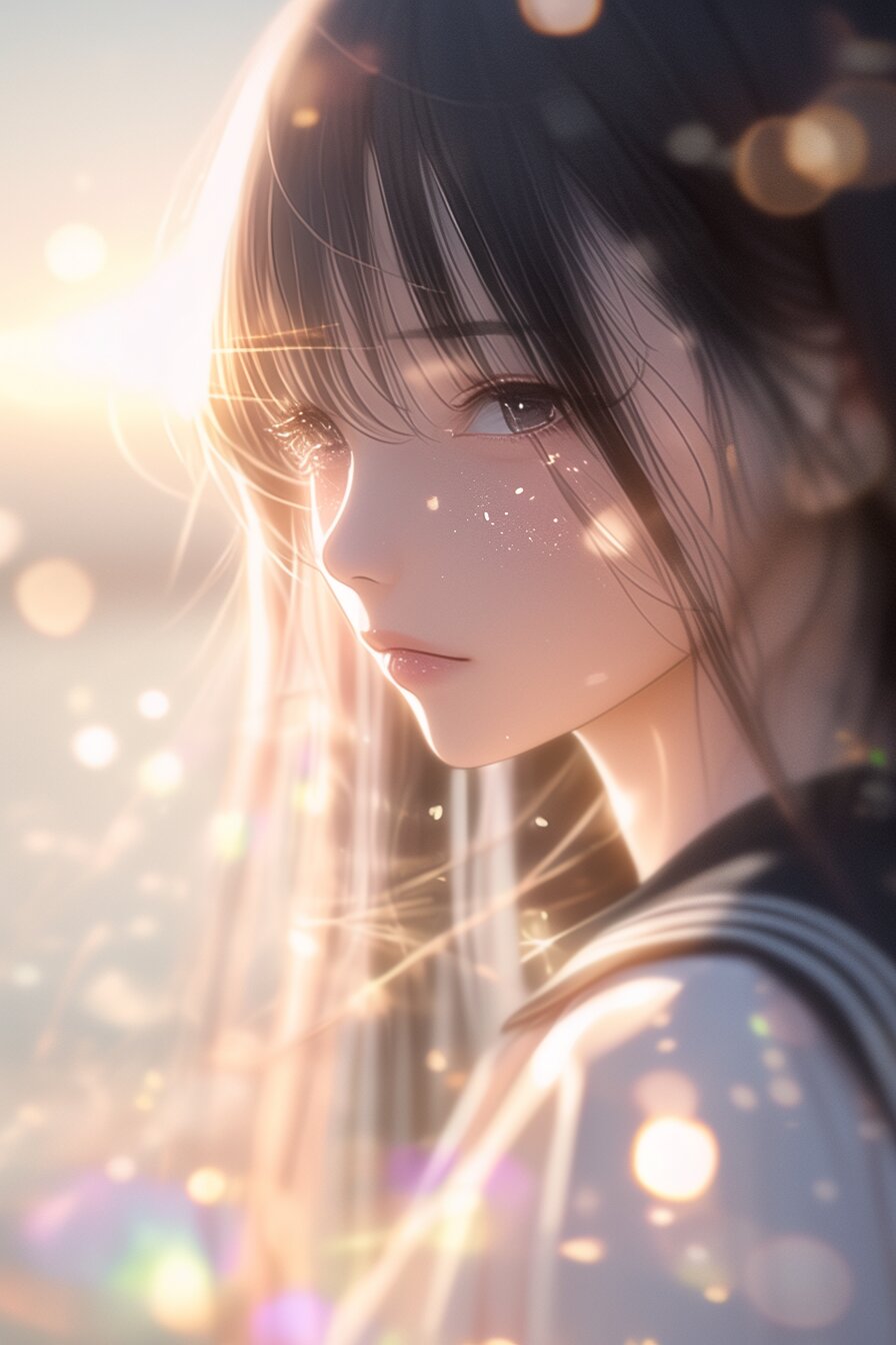 Beautiful girl, white sailor uniform with white collar, short sleeves, small smile, long black straight hair, clear skin,