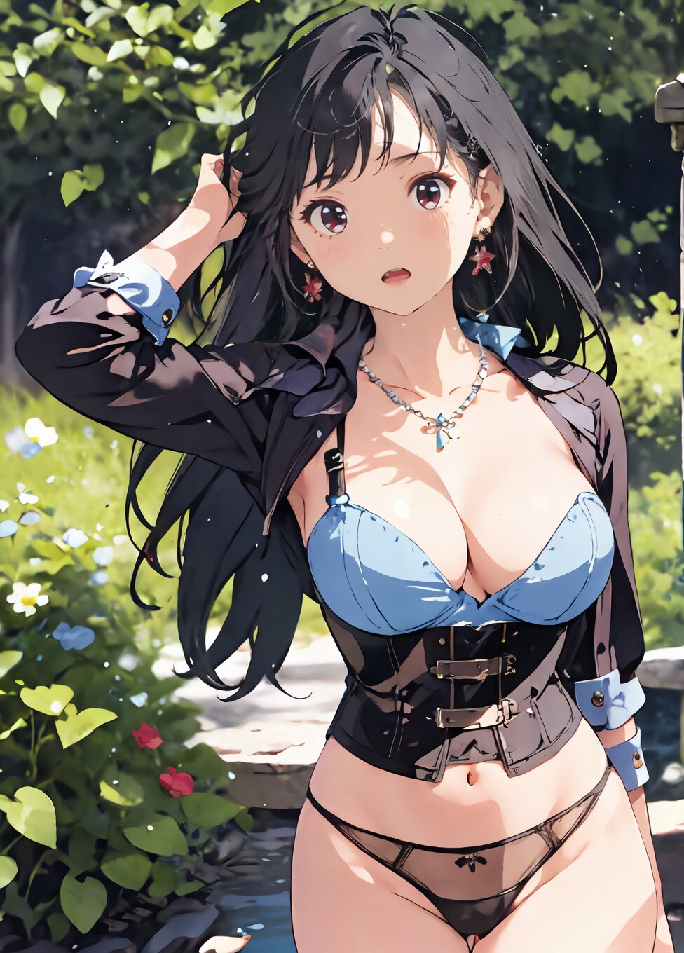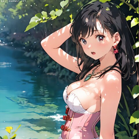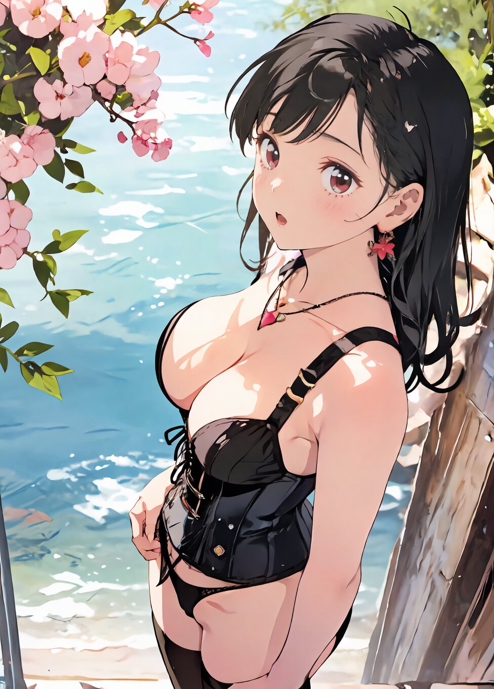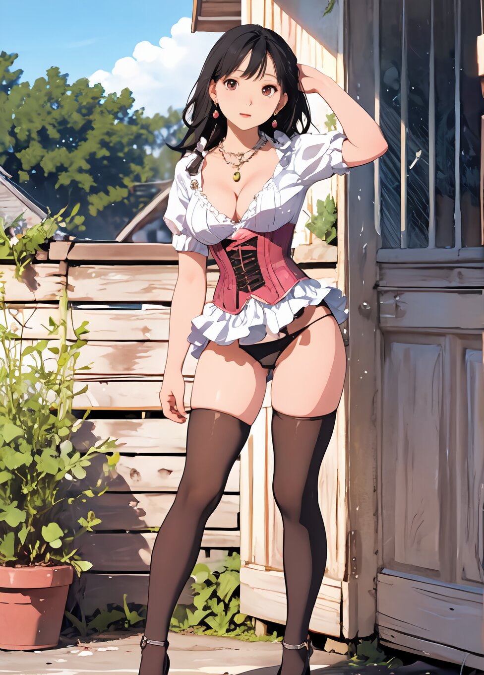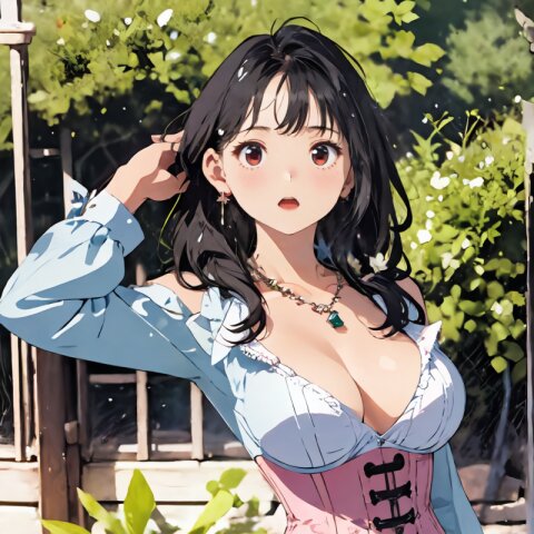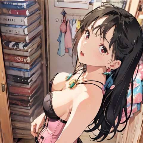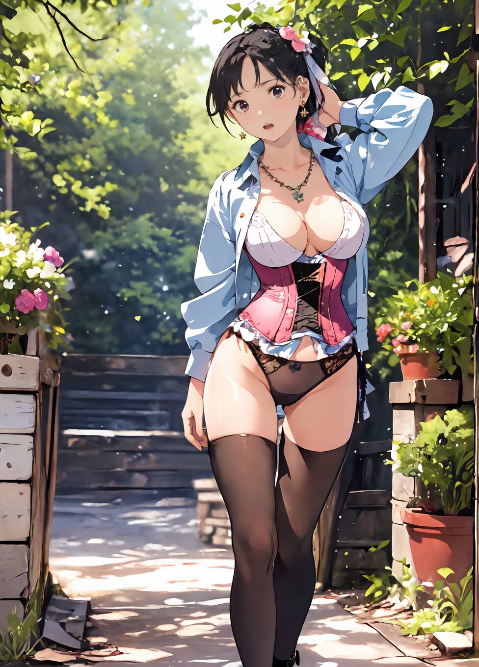 nsfw, from front, (upper body, random sexy posing: 1.6), (8k, best quality, masterpiece:1.4), (realistic, photo-realistic:1.6), HDR, (incredibly absurdres:1.2), (vibrant color:1.2), ultra-detailed, 1girl, 17 years old, (pink corset, black panties and tights, necklace and earrings, black high heels: 1.6), long black hair, (slender, huge breast:1.2), perfect anatomy, beautiful detailed face, perfect skin, detailed skin texture, looking at viewer, (standing: 1.2), on the grassland, <lora:marimori_v01:1.2>