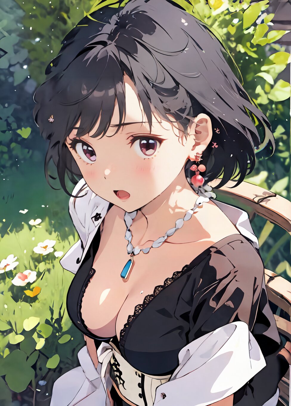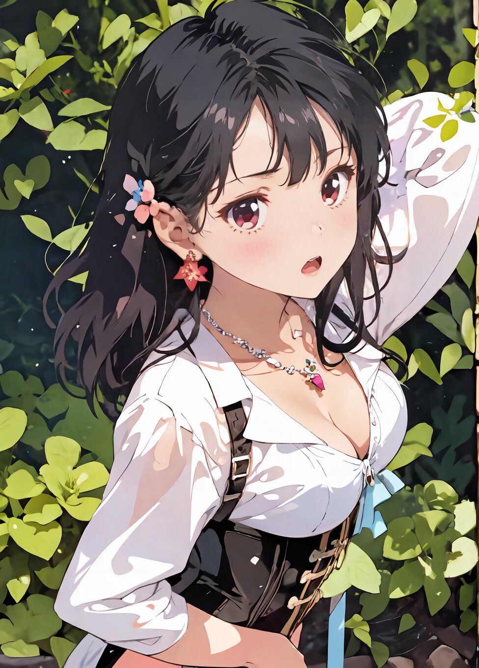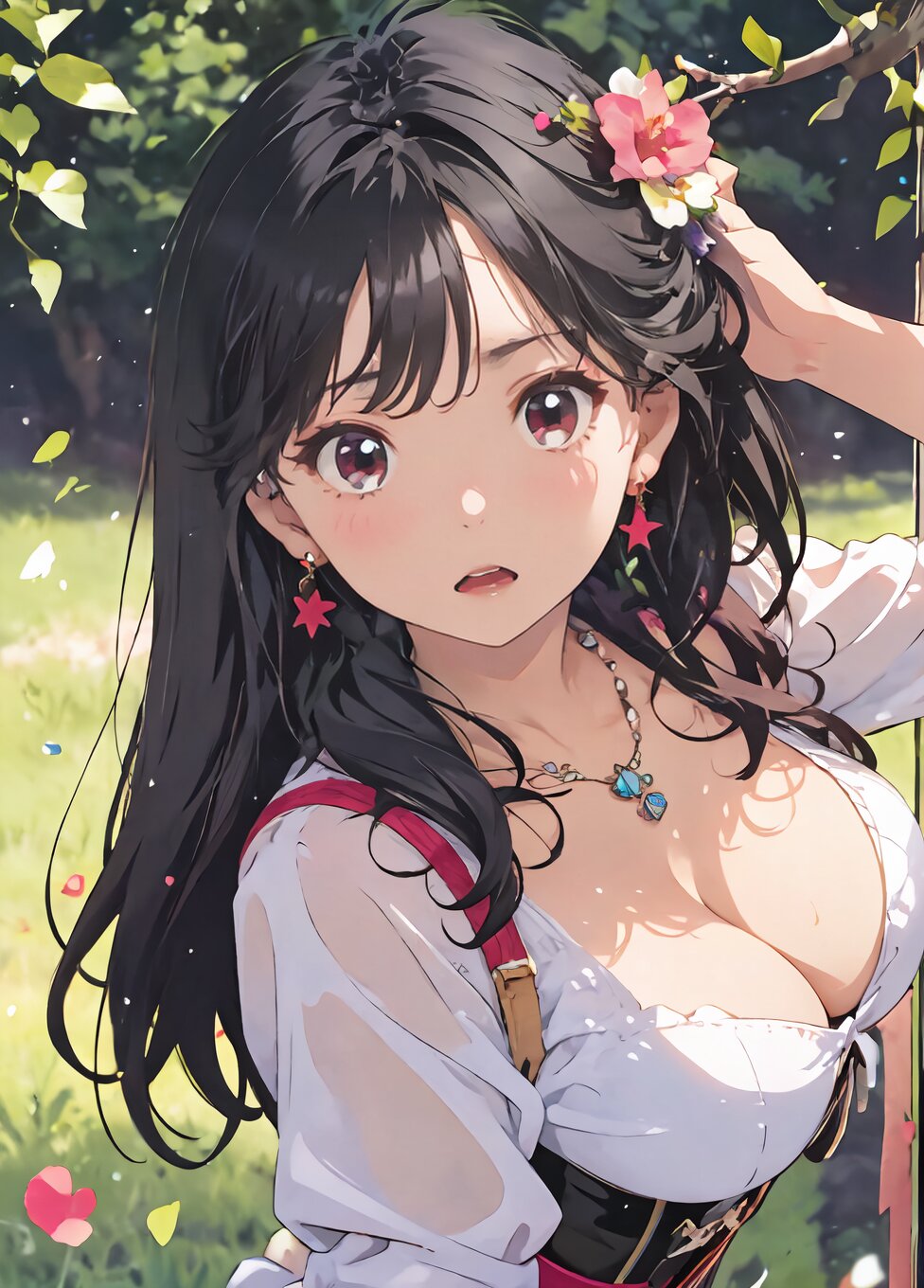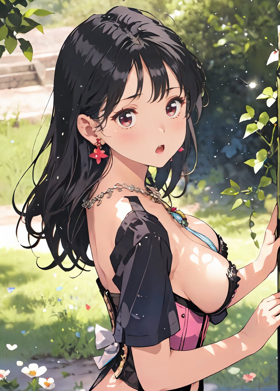 nsfw, from front, (upper body, random sexy posing: 1.6), (8k, best quality, masterpiece:1.4), (realistic, photo-realistic:1.6), HDR, (incredibly absurdres:1.2), (vibrant color:1.2), ultra-detailed, 1girl, 17 years old, (pink corset, black panties and tights, necklace and earrings, black high heels: 1.6), long black hair, (slender, huge breast:1.2), perfect anatomy, beautiful detailed face, perfect skin, detailed skin texture, looking at viewer, (standing: 1.2), on the grassland, <lora:marimori_v01:1.2>