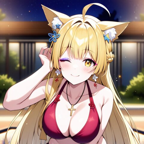 PixAiでは4枚生成がデフォルトで、作画が安定しないためそこからいいものを1枚抽出するスタンスを取っていて、SeaArtでも当初2枚生成させていたんですが、作画が安定しているんで、最近は1枚だけ生成しています。これはSeaArtの利用を再開して間もない頃に作ったもので、2枚生成させたんですが、どちらも気に入って保存しました。