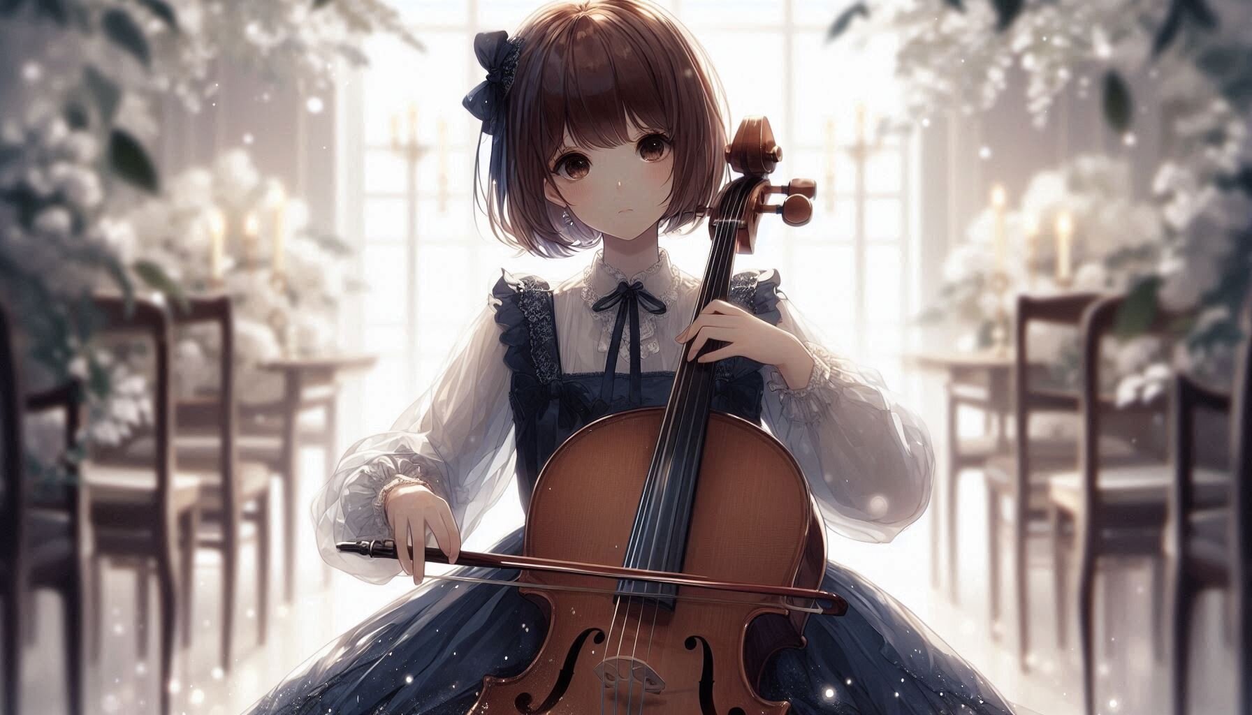 ダークな色合いのドレスではありますが、全体のデザインや雰囲気から、清潔感、上品さ、控えめさといった「清楚系」の本質的な要素を強く感じます。典型的な「白やパステルカラーでフリルたっぷり」というイメージとは少し違うかもしれませんが、この絵は「落ち着いた上品さ」を表現した清楚系と言えるでしょう。