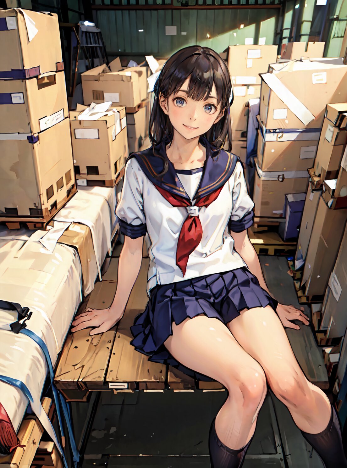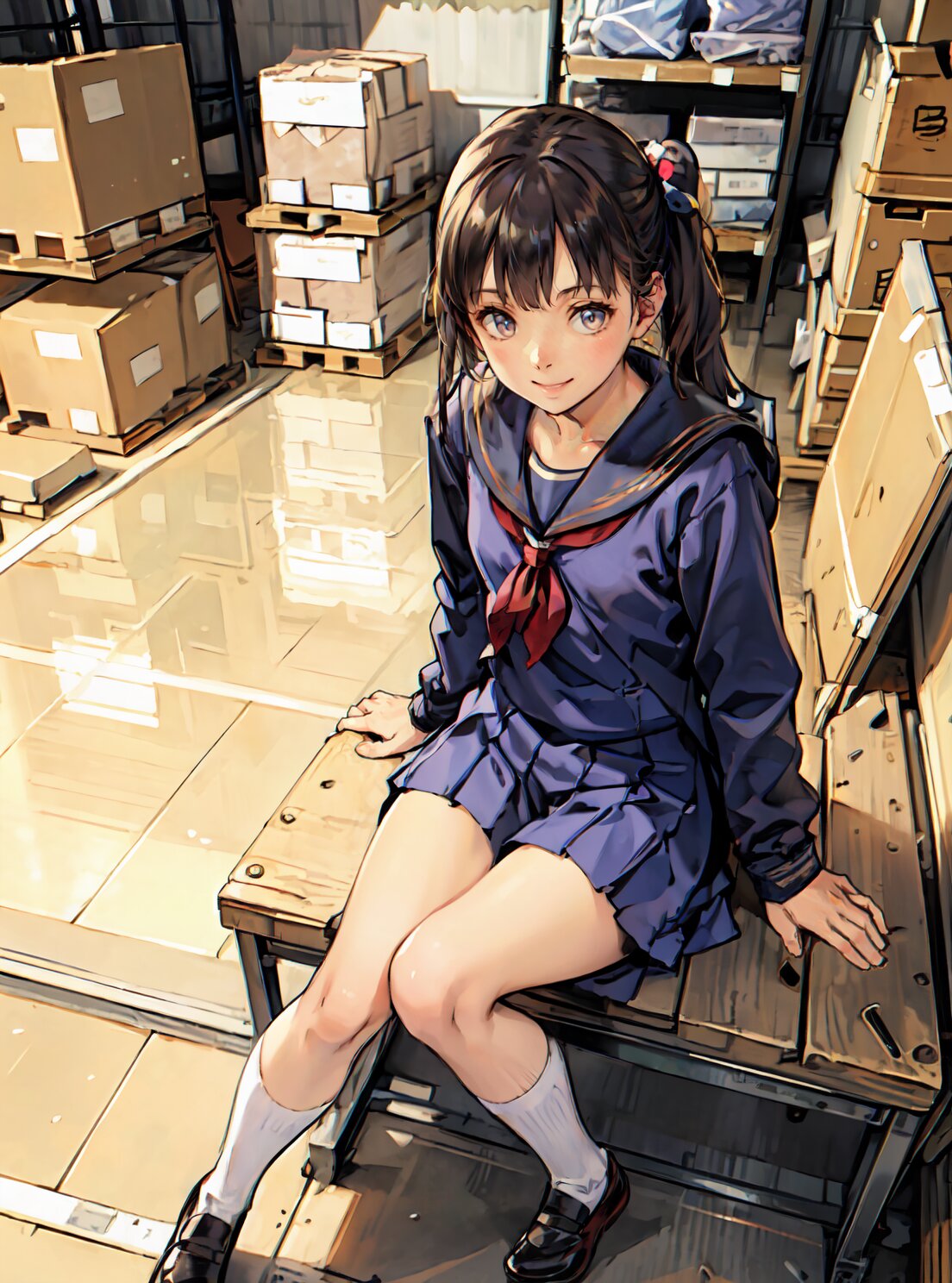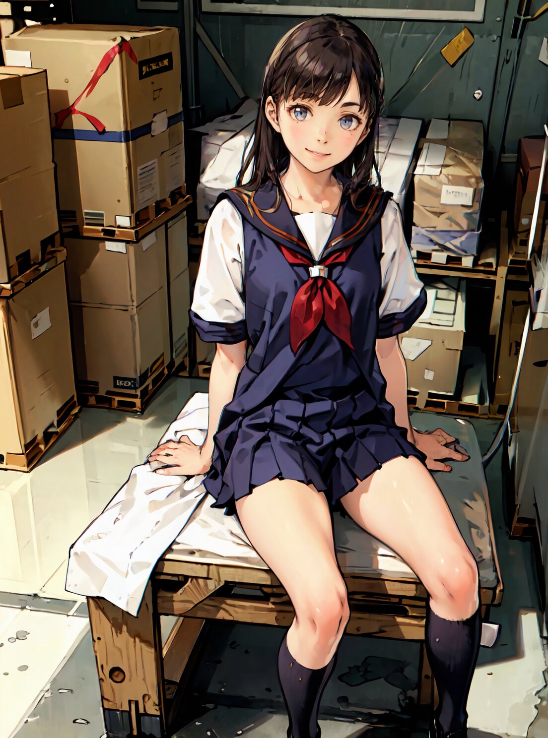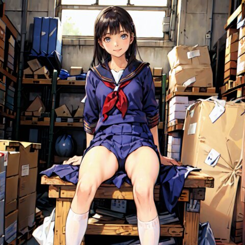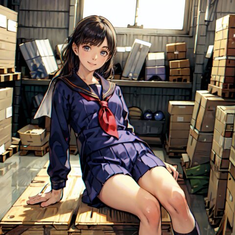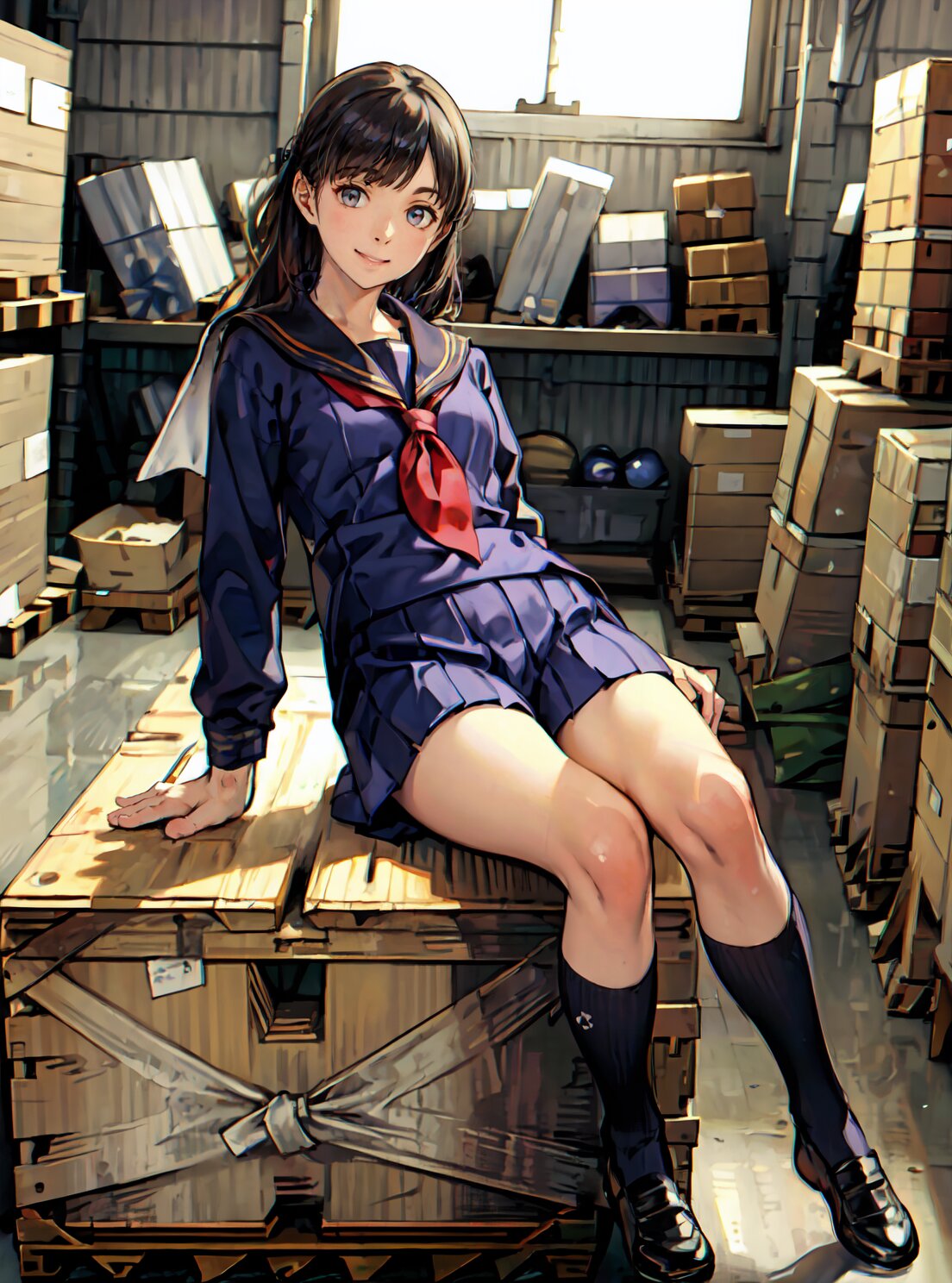 (random pose, random angle: 1.2), (8k, best quality, masterpiece:1.4), (realistic, photo-realistic:1.6), HDR, (incredibly absurdres:1.2), (vibrant color:1.2), ultra-detailed, 1girl, solo, 12years old, solo, small girl, (((petite, small breasts))), long hair, full body, perfect body, highly detailed, shiny hair, looking at viewer, (school uniform, sailor suit: 1.6), (sitting in the school gymnasium warehouse: 1.6), <lora:KOHINA_V01:0.6>