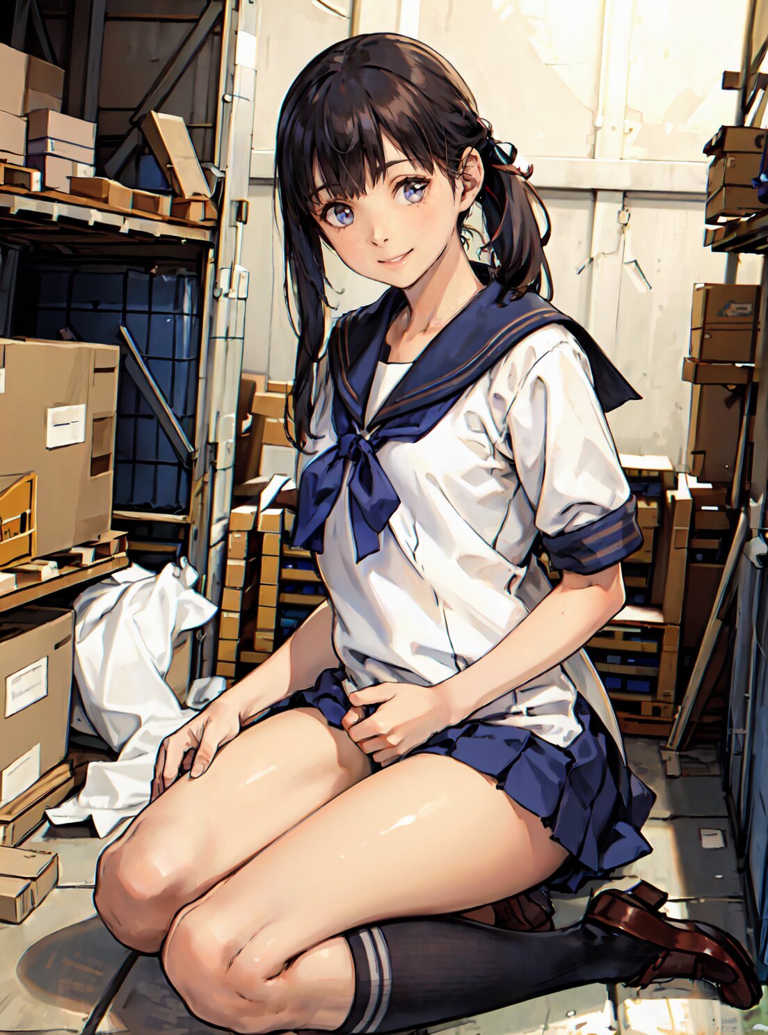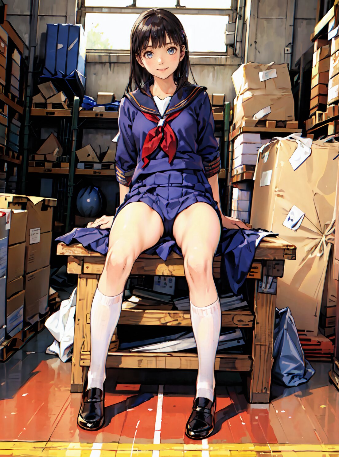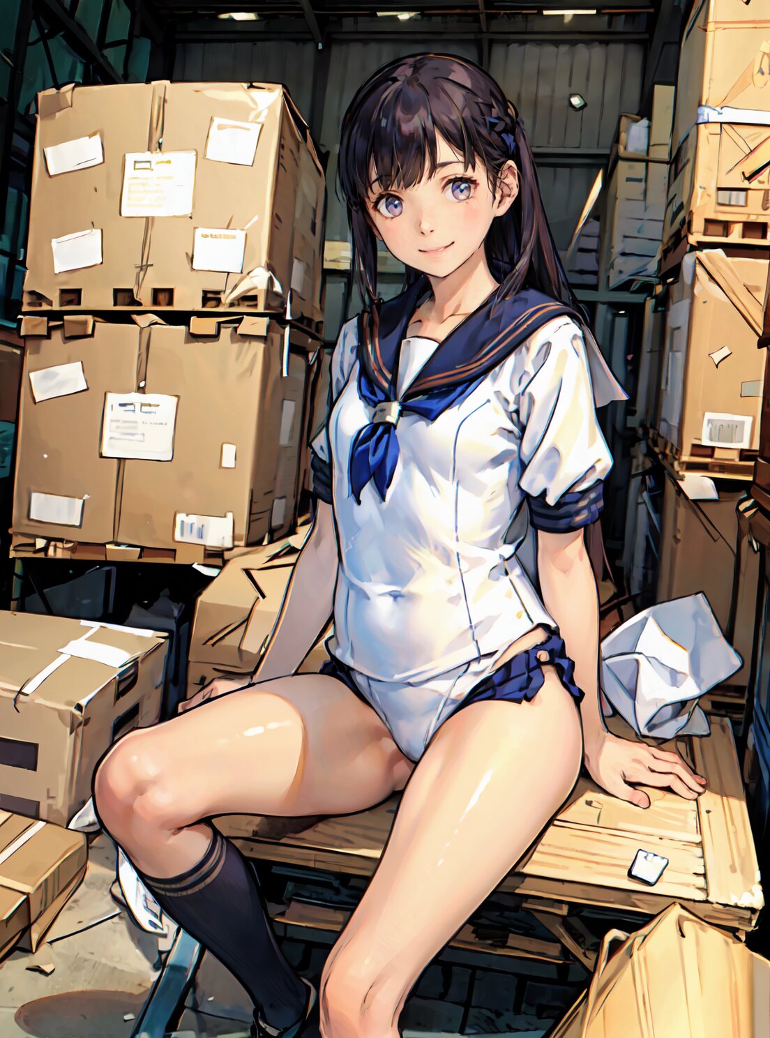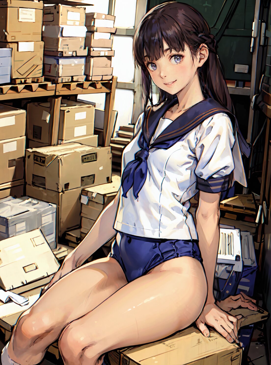 (random pose, random angle: 1.2), (8k, best quality, masterpiece:1.4), (realistic, photo-realistic:1.6), HDR, (incredibly absurdres:1.2), (vibrant color:1.2), ultra-detailed, 1girl, solo, 12years old, solo, small girl, (((petite, small breasts))), long hair, full body, perfect body, highly detailed, shiny hair, looking at viewer, (school uniform, sailor suit: 1.6), (sitting in the school gymnasium warehouse: 1.6), <lora:KOHINA_V01:0.6>