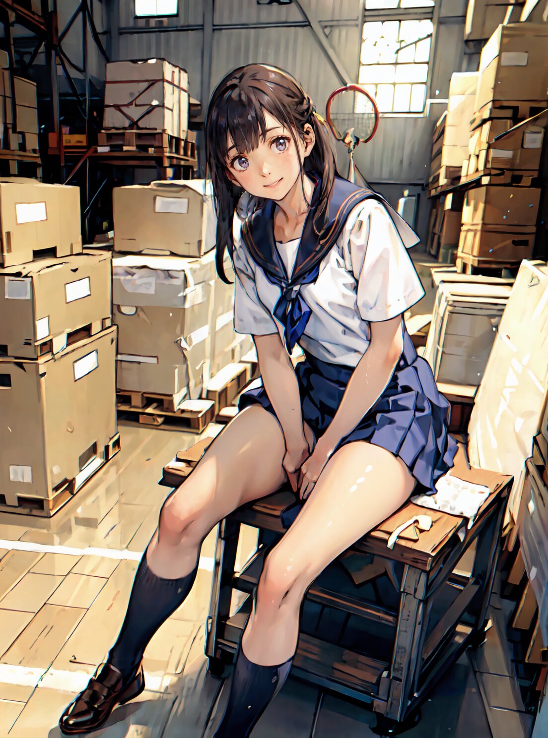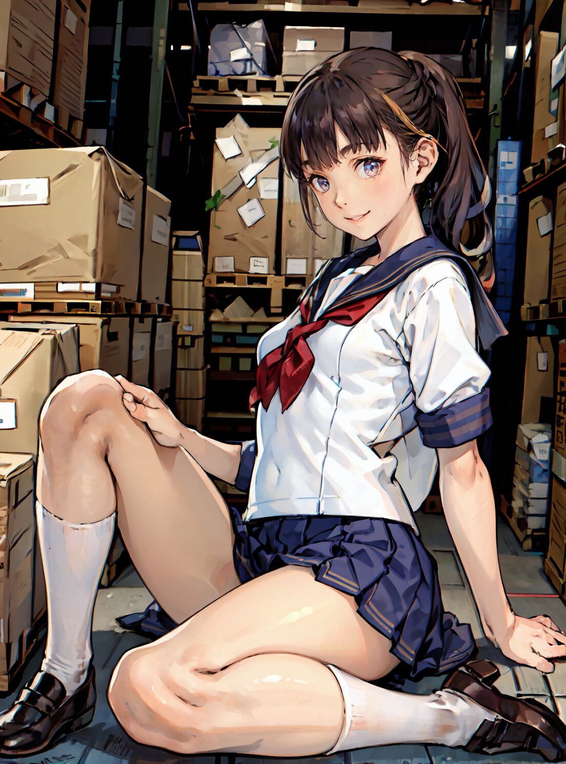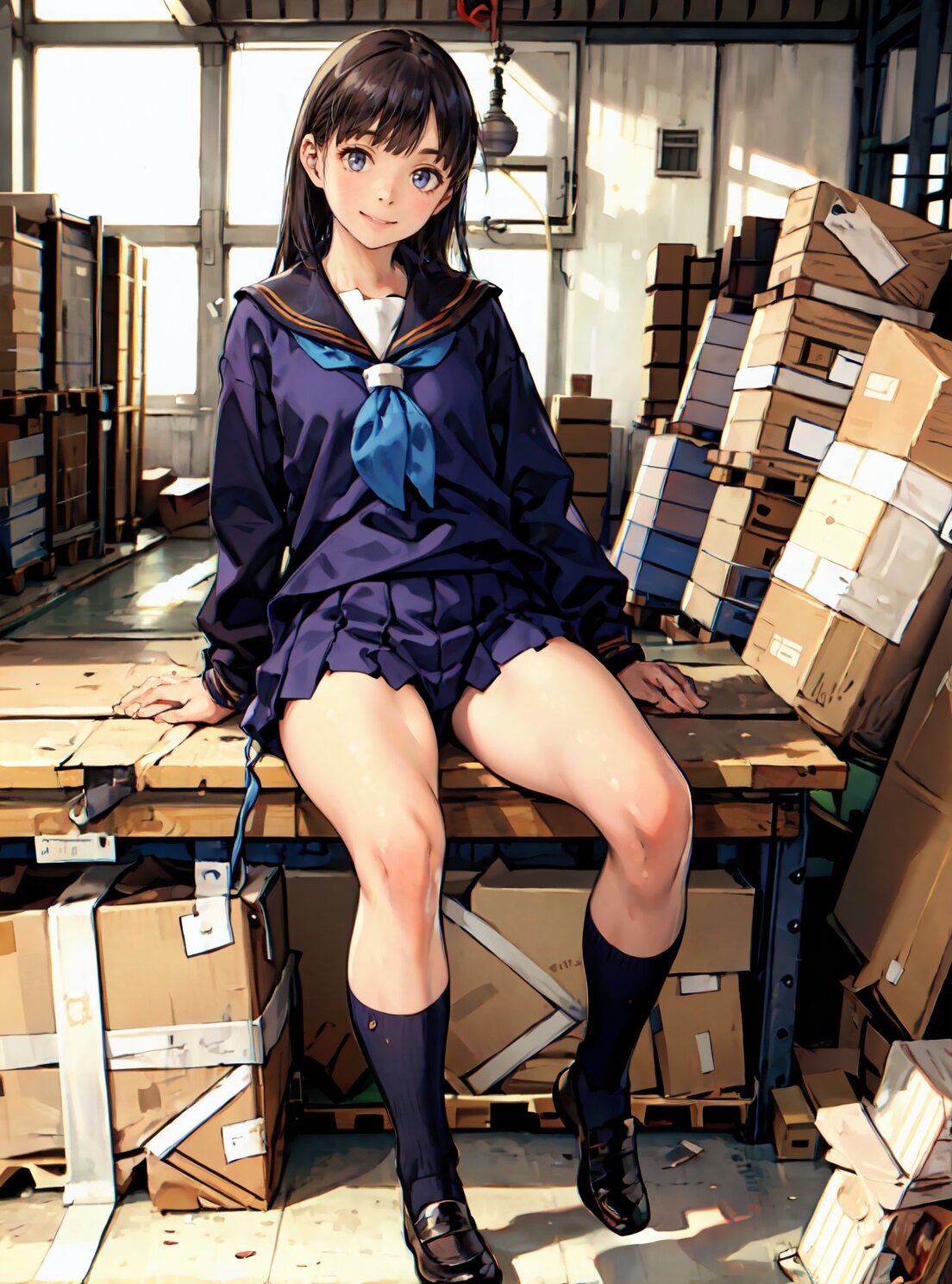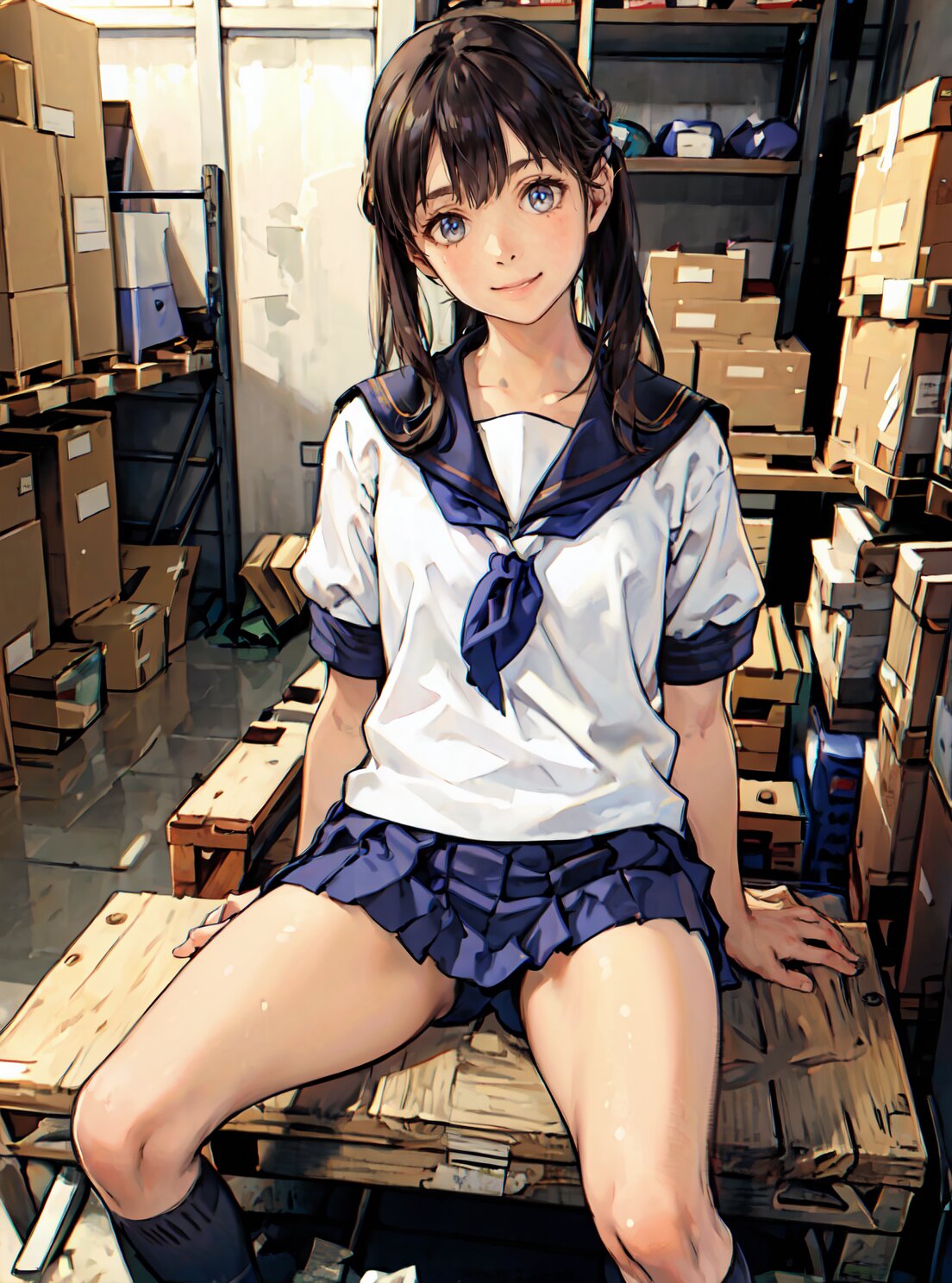 (random pose, random angle: 1.2), (8k, best quality, masterpiece:1.4), (realistic, photo-realistic:1.6), HDR, (incredibly absurdres:1.2), (vibrant color:1.2), ultra-detailed, 1girl, solo, 12years old, solo, small girl, (((petite, small breasts))), long hair, full body, perfect body, highly detailed, shiny hair, looking at viewer, (school uniform, sailor suit: 1.6), (sitting in the school gymnasium warehouse: 1.6), <lora:KOHINA_V01:0.6>