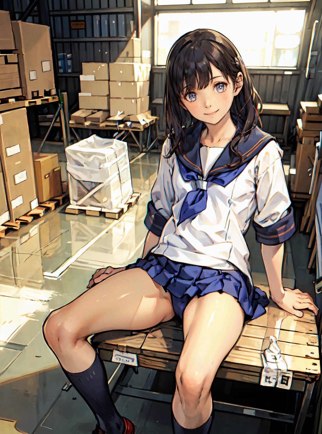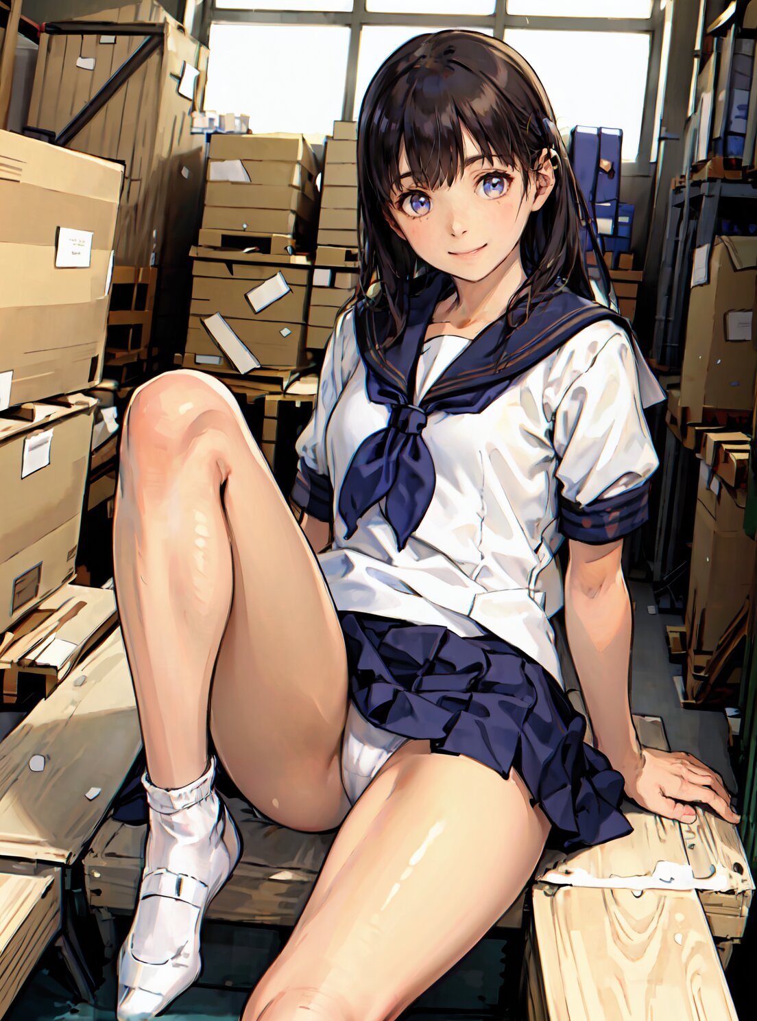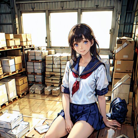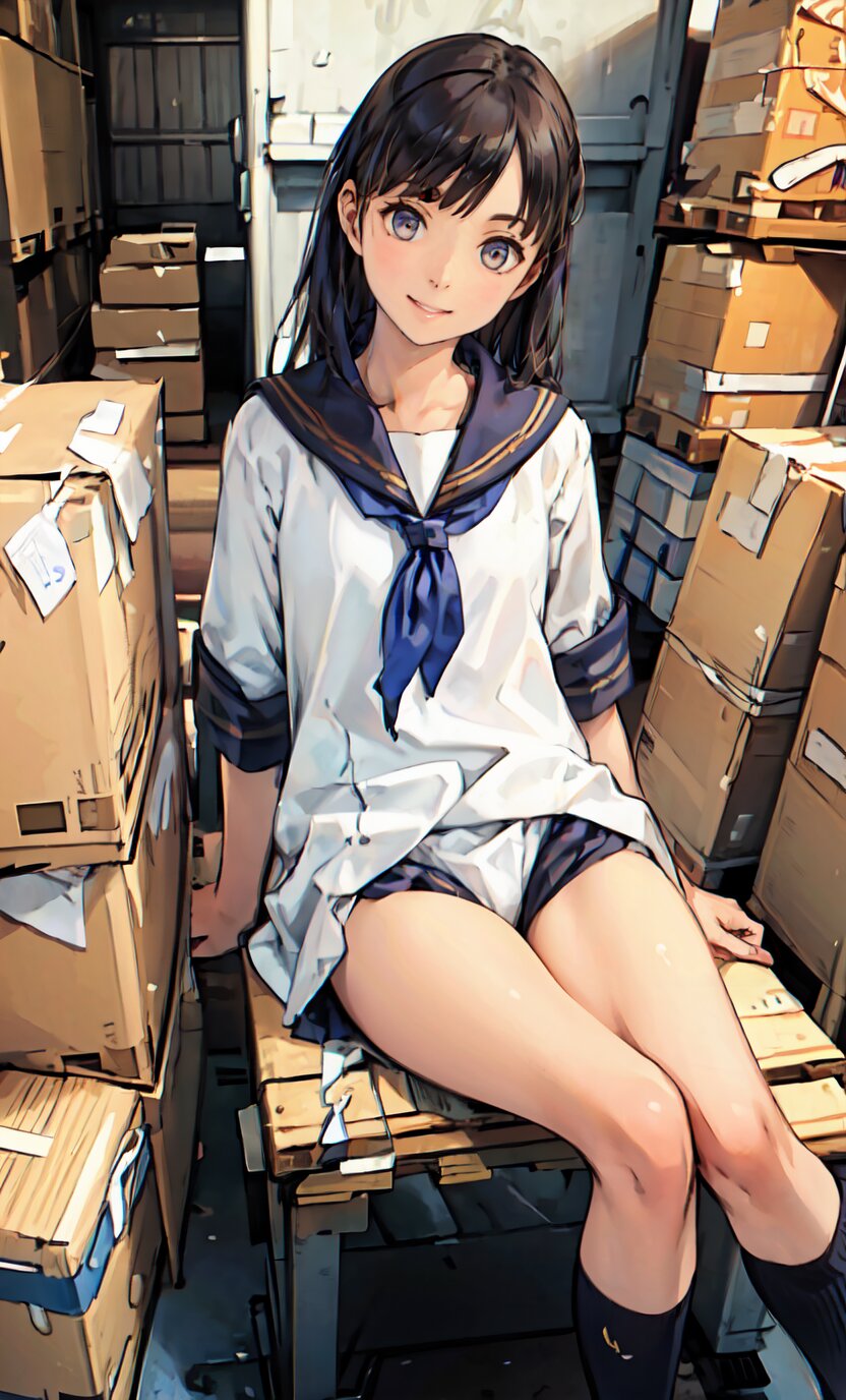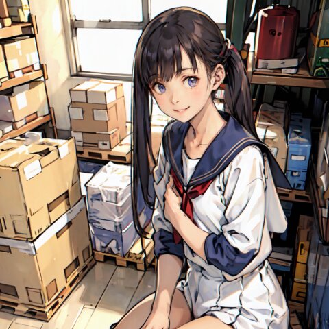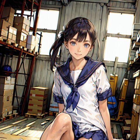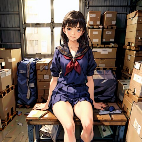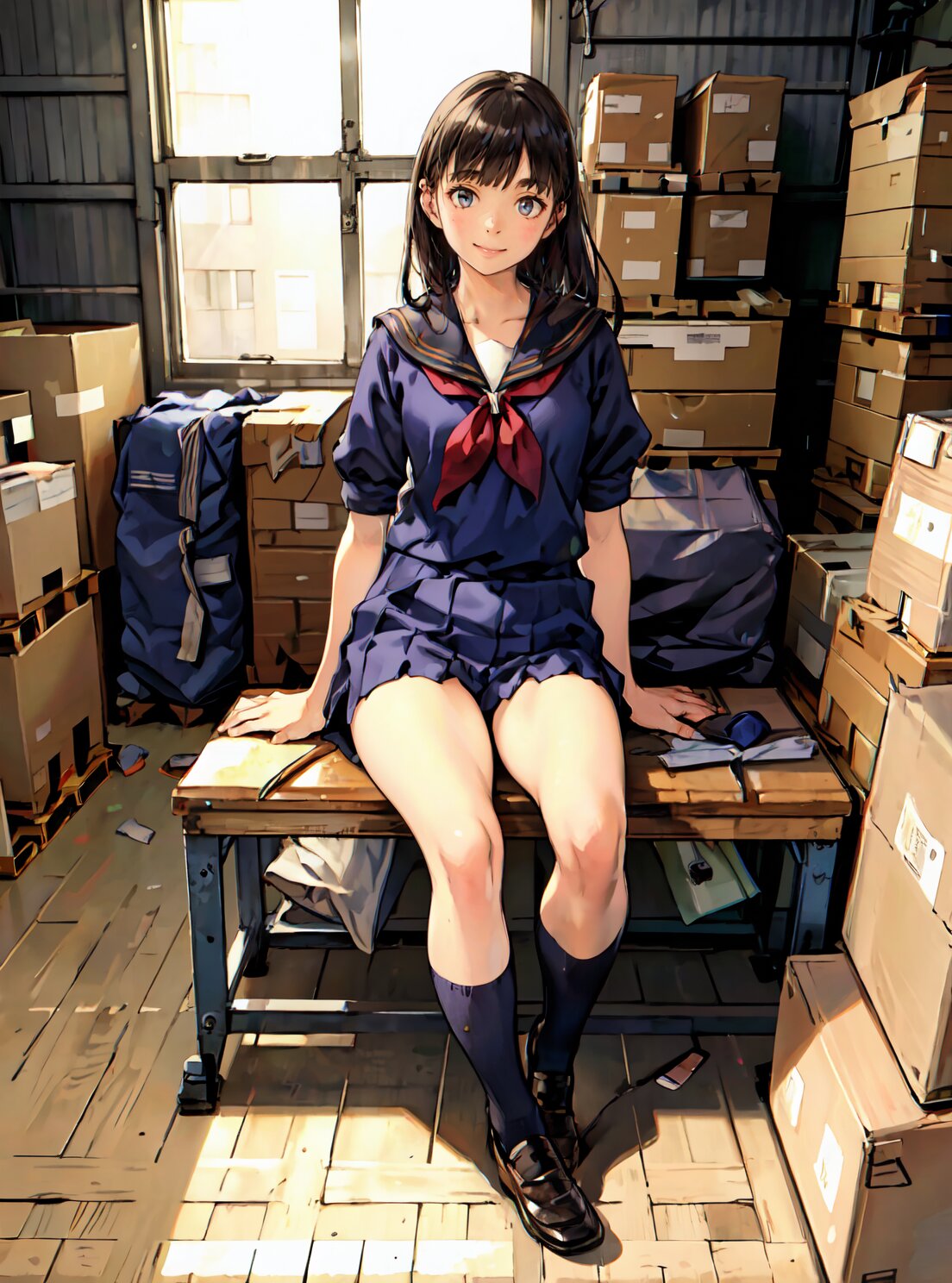 (random pose, random angle: 1.2), (8k, best quality, masterpiece:1.4), (realistic, photo-realistic:1.6), HDR, (incredibly absurdres:1.2), (vibrant color:1.2), ultra-detailed, 1girl, solo, 12years old, solo, small girl, (((petite, small breasts))), long hair, full body, perfect body, highly detailed, shiny hair, looking at viewer, (school uniform, sailor suit: 1.6), (sitting in the school gymnasium warehouse: 1.6), <lora:KOHINA_V01:0.6>