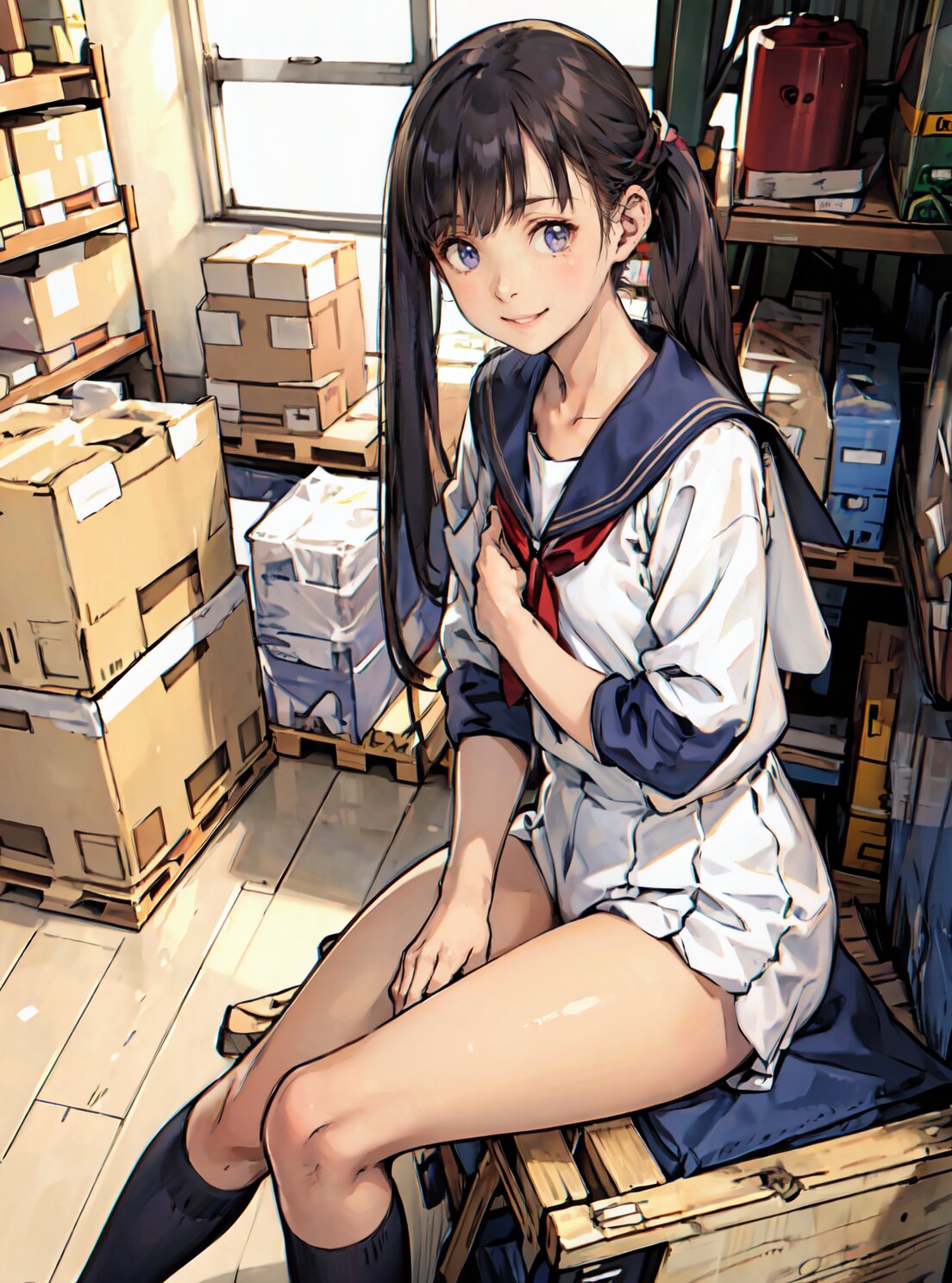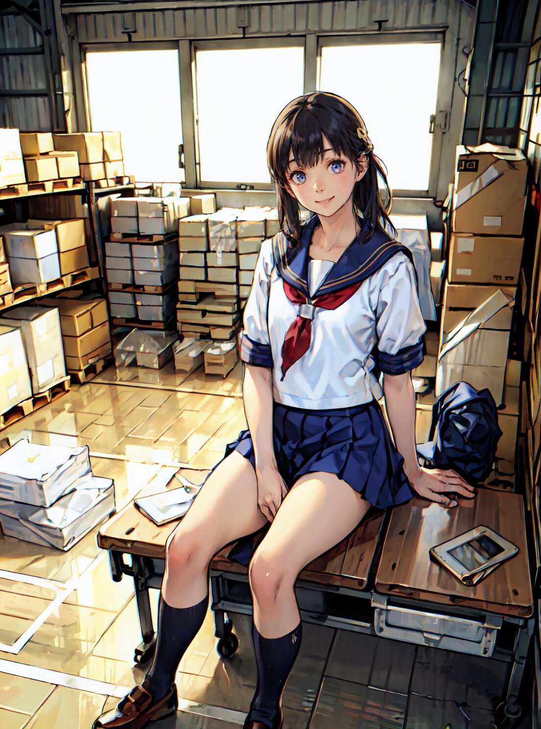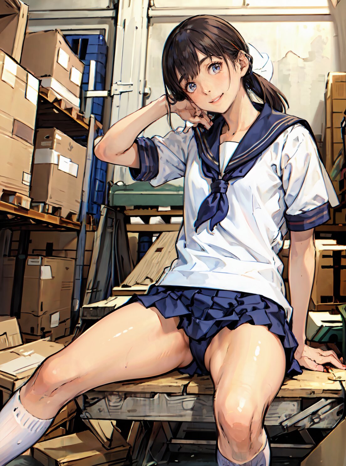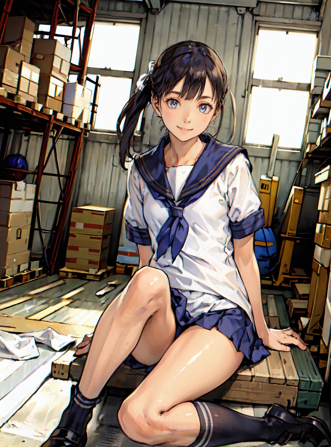 (random pose, random angle: 1.2), (8k, best quality, masterpiece:1.4), (realistic, photo-realistic:1.6), HDR, (incredibly absurdres:1.2), (vibrant color:1.2), ultra-detailed, 1girl, solo, 12years old, solo, small girl, (((petite, small breasts))), long hair, full body, perfect body, highly detailed, shiny hair, looking at viewer, (school uniform, sailor suit: 1.6), (sitting in the school gymnasium warehouse: 1.6), <lora:KOHINA_V01:0.6>