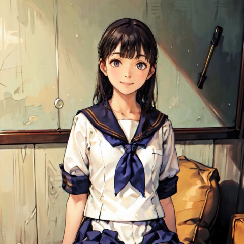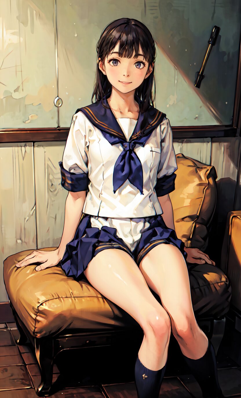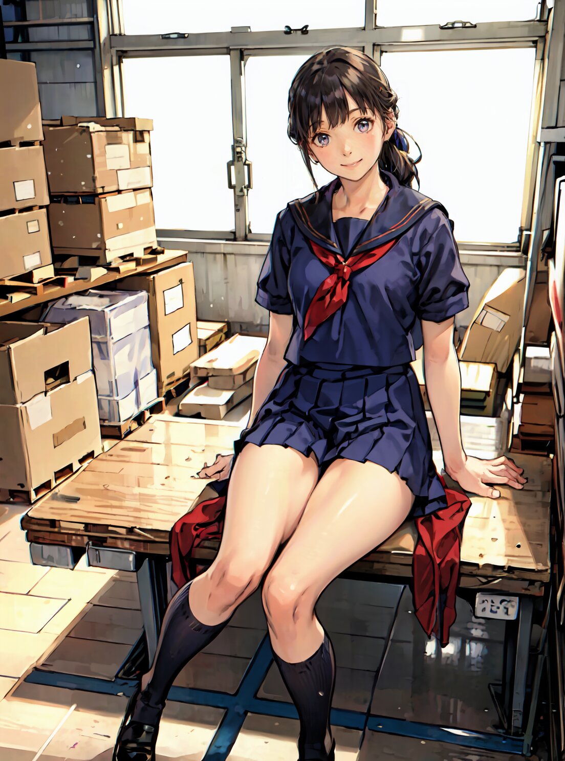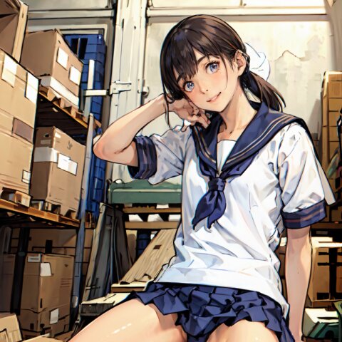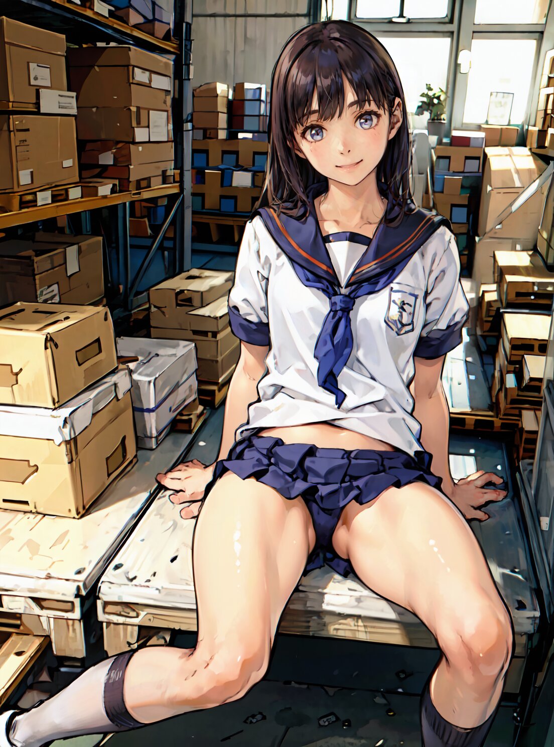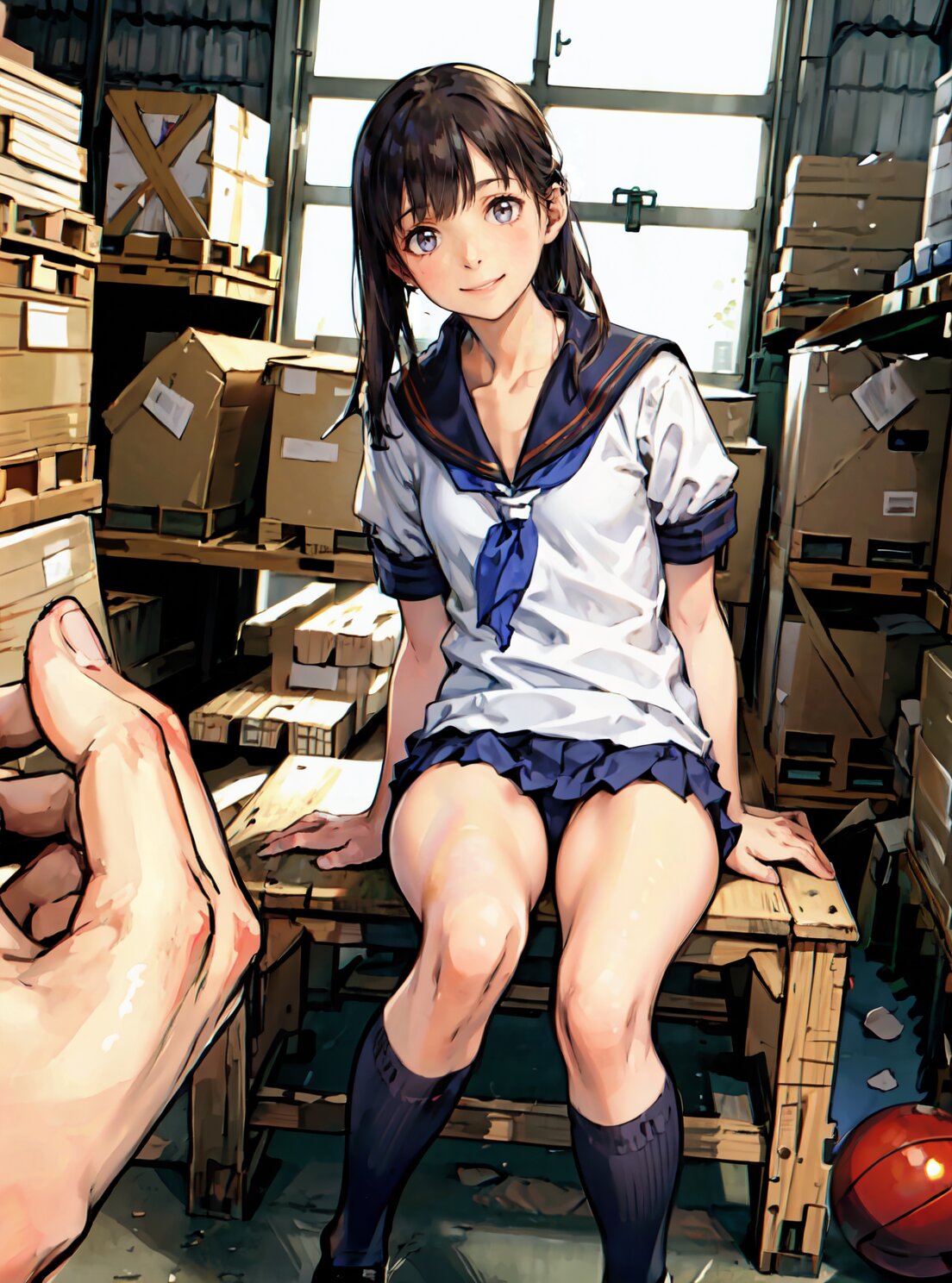 (random pose, random angle: 1.2), (8k, best quality, masterpiece:1.4), (realistic, photo-realistic:1.6), HDR, (incredibly absurdres:1.2), (vibrant color:1.2), ultra-detailed, 1girl, solo, 12years old, solo, small girl, (((petite, small breasts))), long hair, full body, perfect body, highly detailed, shiny hair, looking at viewer, (school uniform, sailor suit: 1.6), (sitting in the school gymnasium warehouse: 1.6), <lora:KOHINA_V01:0.6>