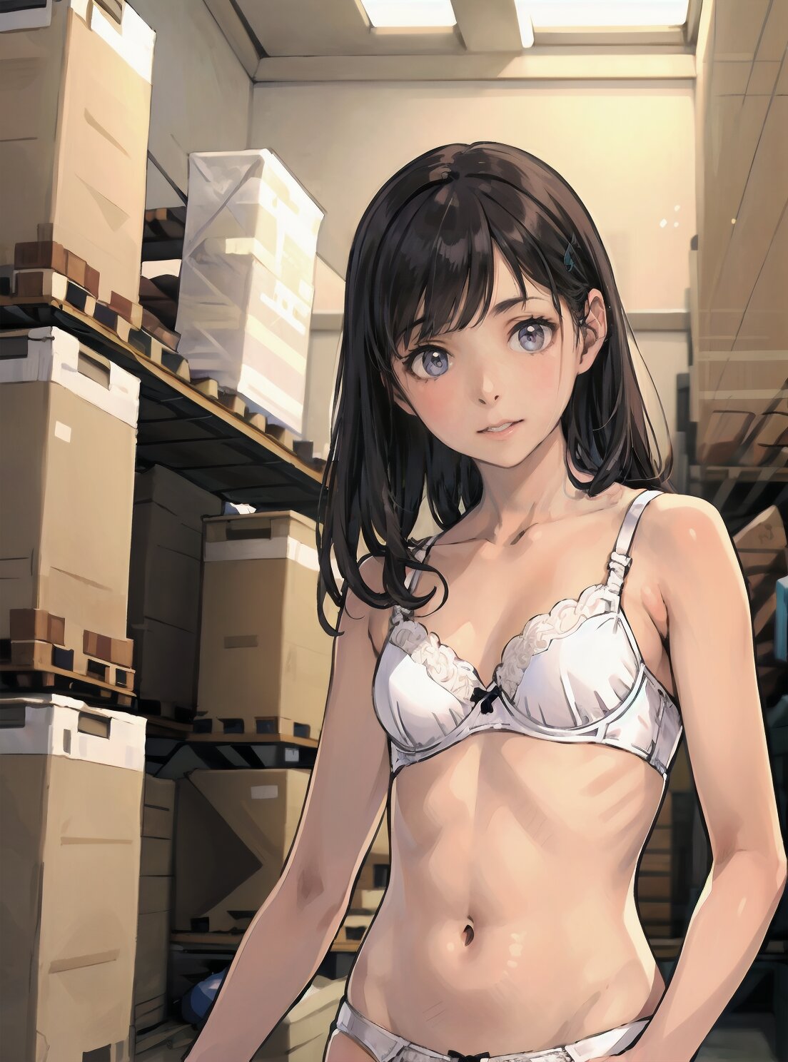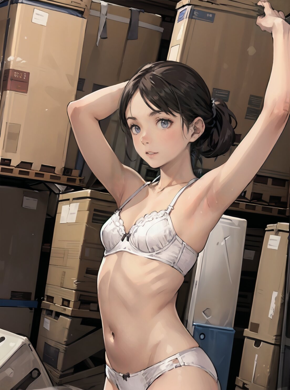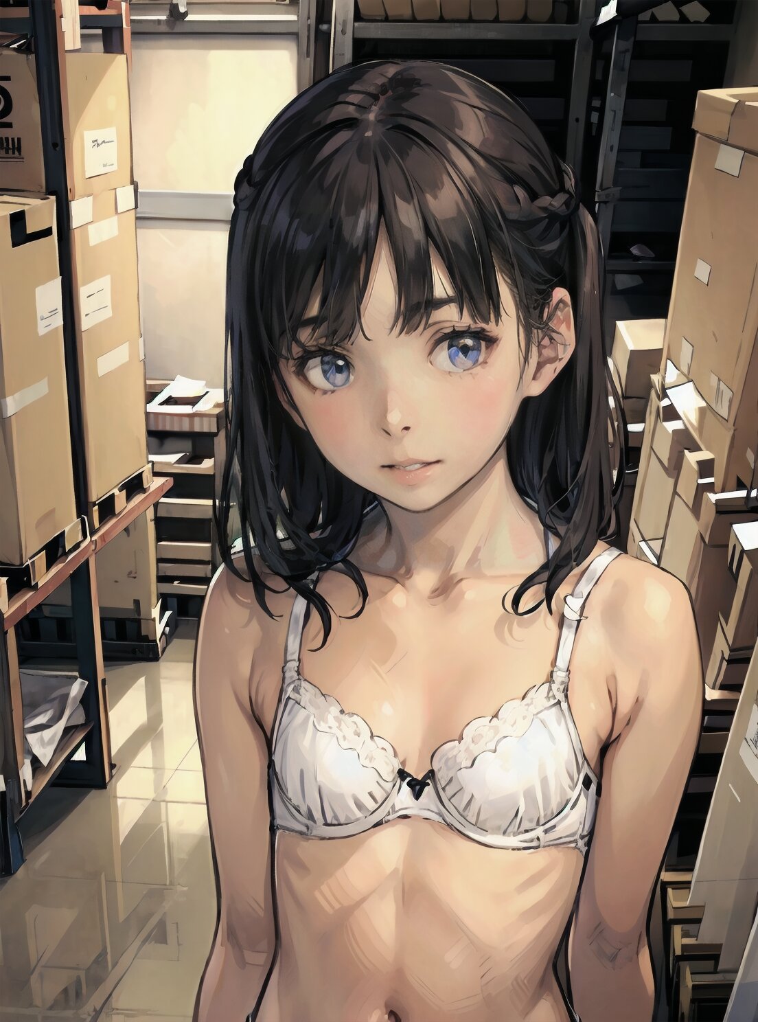 (from front: 1.2), (8k, best quality, masterpiece:1.4), (realistic, photo-realistic:1.6), HDR, (incredibly absurdres:1.2), (vibrant color:1.2), ultra-detailed, 1girl, solo, 12years old, solo, small girl, (((petite, small breasts))), long hair, (upper body: 1.6), perfect body, highly detailed, shiny hair, looking at viewer, (white bra and panties: 1.6), (in the school gymnasium warehouse: 1.6), <lora:KOHINA_V01:0.6>