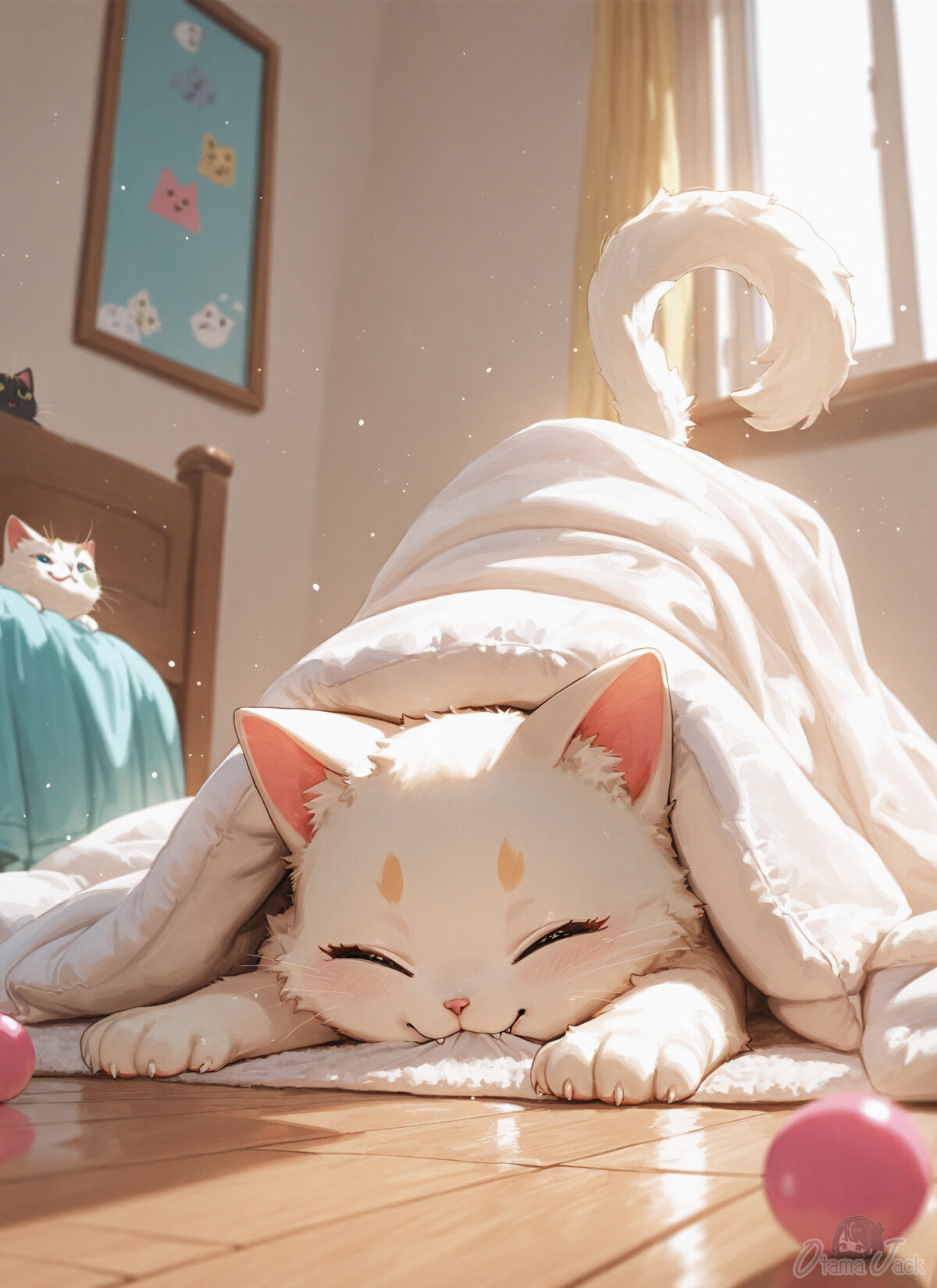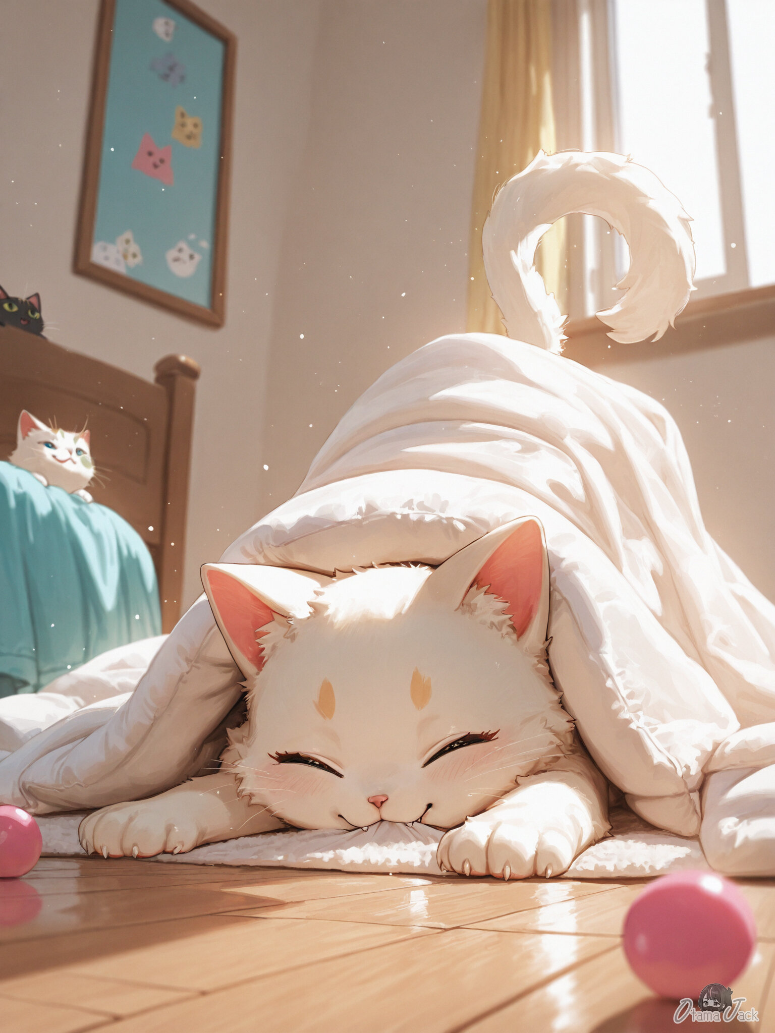 お玉じゃっく氏さんご参加ありがとうございます😽💕よくみると口で布団かんでるんですね!萌えポイント高し!