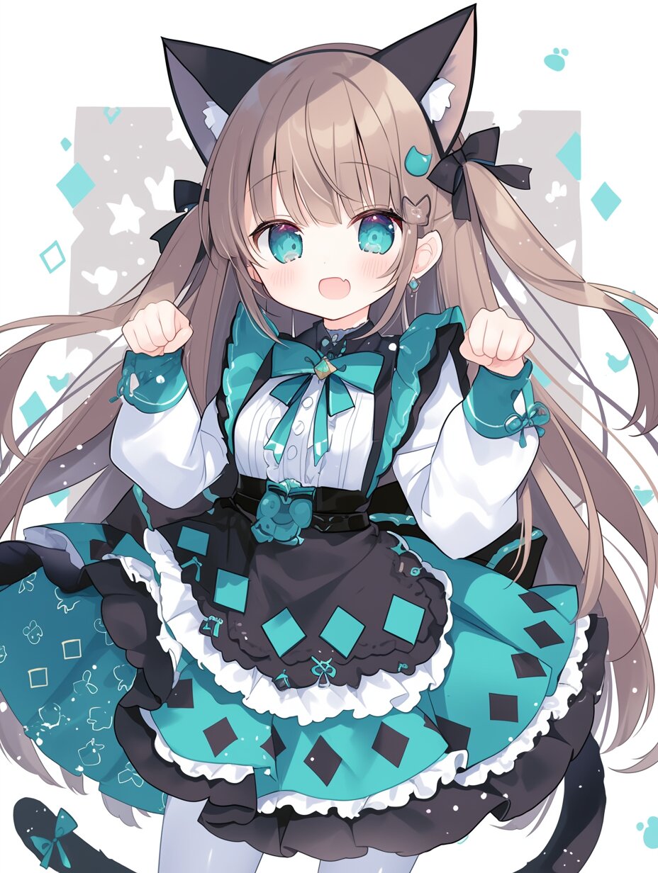 ショコラさん、ご参加ありがとうございます😽💕不思議の国のアリスを思わせるようなふわふわのドレスに、ネコ耳黒しっぽは間違いない組み合わせですね!背景のエフェクトとドレスの模様も統一感があって綺麗!