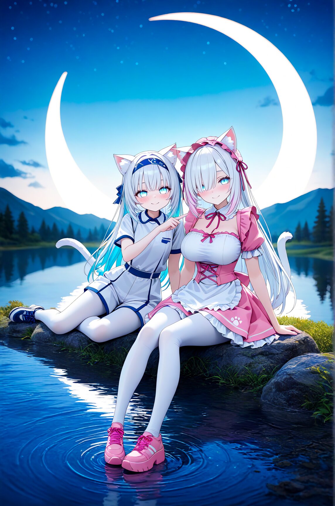 Anime illustration, CG art, 3D model, 3D rendering, 3D skin texture, high detail, depth of field, 1 person, cat ears, cat tail, hime cut, side ponytail, slanted eyes, sky blue eyes, white skin, gothic lolita, 8K, masterpiece, best quality, amazing quality, very aesthetic, (volumetric lighting), overexposed,