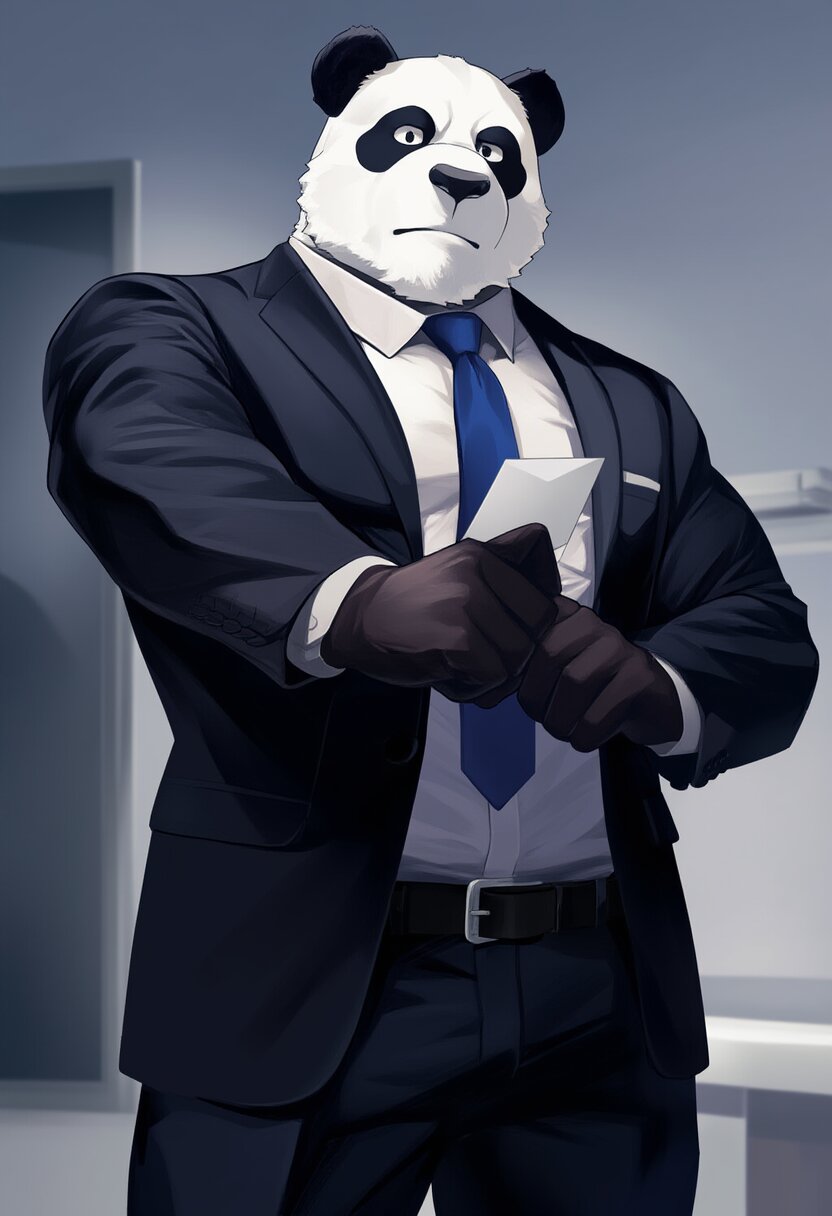 (traditional media:1.5),(sepia:1.8),masterpiece,best quality,ultra detailed,{{{panda}}},muscular,Suit,tie,looking at viewer,serious,Office,Business,Exchanging business cards,Holding a business card with both hands, rating:general, best quality, very aesthetic, absurdres