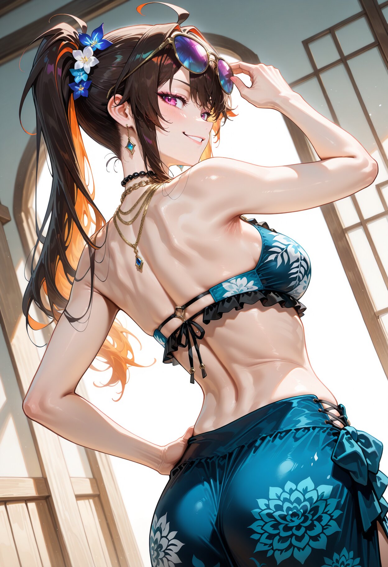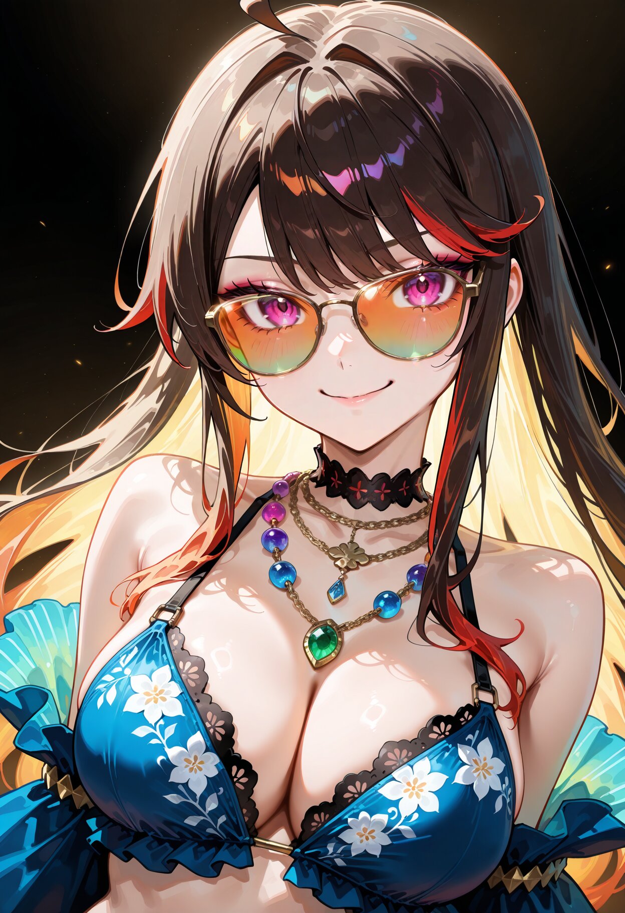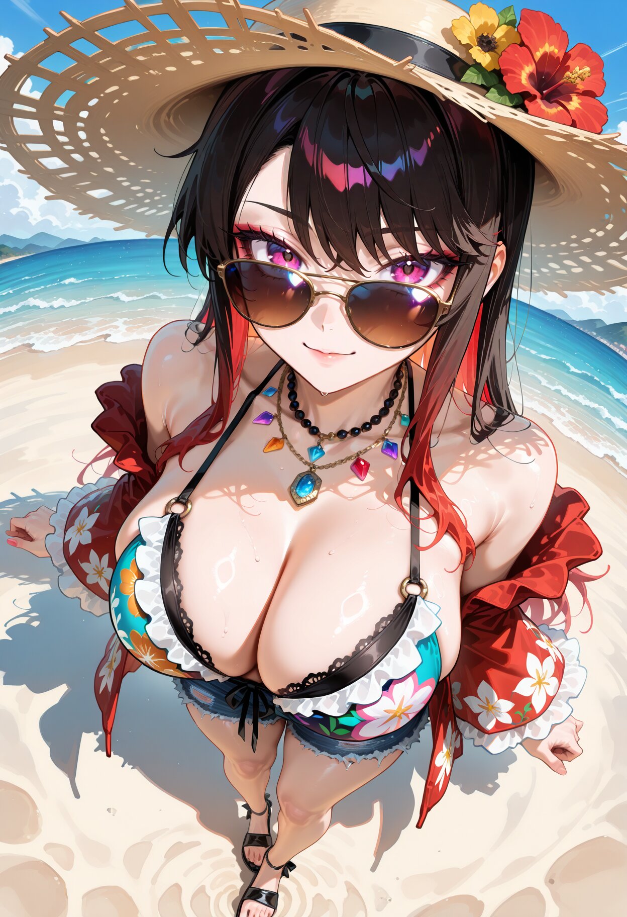 (fisheye,fisheye lens angle:1.0), (from above:1.1) , (dutch angle:1.2), //Character 1girl, BREAK //Fashions Maximalist Patchwork Bikini A daring bikini with a bold mix of floral, geometric, and baroque prints, inspired by Alessandro Michele's love for eclecticism, The bikini top features mismatched patterns with ruffled lace trims, while the high-waisted bottoms have vintage-style ruching, Styled with oversized tinted sunglasses, layered beaded necklaces, and a vibrant silk kimono with embroidered peacocks for a truly extravagant garden party beach look, BREAK super fine concept art, hard surface, 8K, unreal engine, masterpiece, best quality, amazing quality, very aesthetic, absurdres, you can add scenery, (volumetric lighting), To make the background more distinctive. professional art lots of details, , overexposure, sumie effect style, <lora:noline (1):-0.5> <lora:sdxl2-flat2-512b:0.0> <lora:facelightup_xl_v10:0.5>