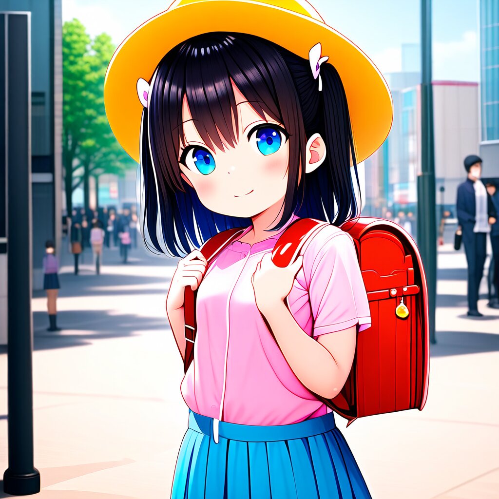 {{{masterpiece}}}, {{{best quality}}}, {{{very aesthetic}}}, {{{ultra-detailed}}}, {illustration}, {{{extremely detailed}}}, {{{an extremely delicate and beautiful}}}, {{{highly detailed}}}, {{official style}}, {{game cg}}, {{loli, child}}, 1girl, solo, style of ai-generated, {{tenka hyakken, girlfriend (kari)}}, blue eyes, {{medium hair, straight hair, two side up}}, black hair, hair between eyes, small breasts, standing, cowboy shot, light smile, {{{light pink shirt, light blue skirt, yellow hat}}}, {{{carrying a school bag}}}, {{shibuya street}}, no humans, no animal