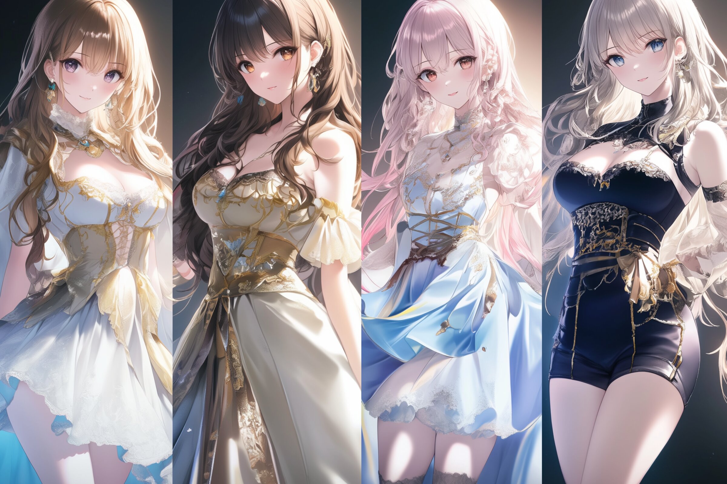 他のAIちゃんもそうだんですが、Niji journeyでは、適当にシンプルすぎるプロンプトを書くと、案外な結果が出せます。そうやって大量生成する時に、多くのいいイラストはが作れるし、より多くのボツ絵も作れるし、かなりの使えないイラストも作れるし、時折りにこんなプロンプトのパラメータの範囲外イラストも作れます。