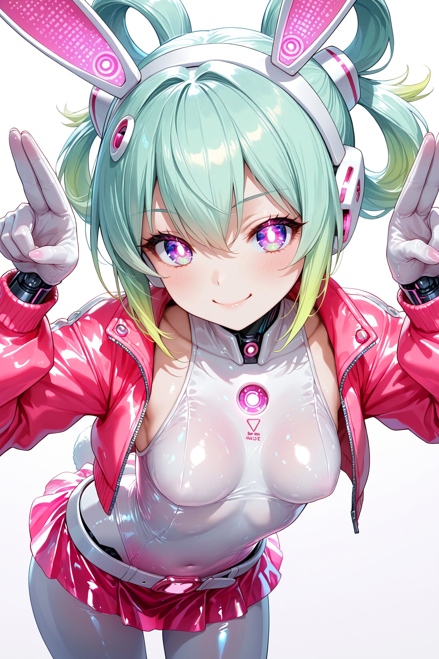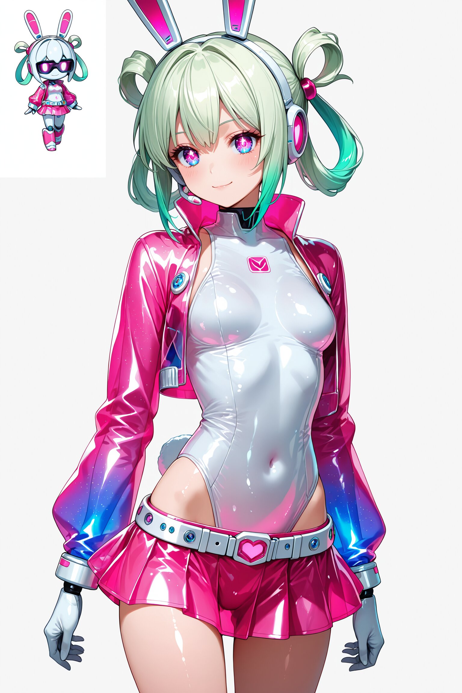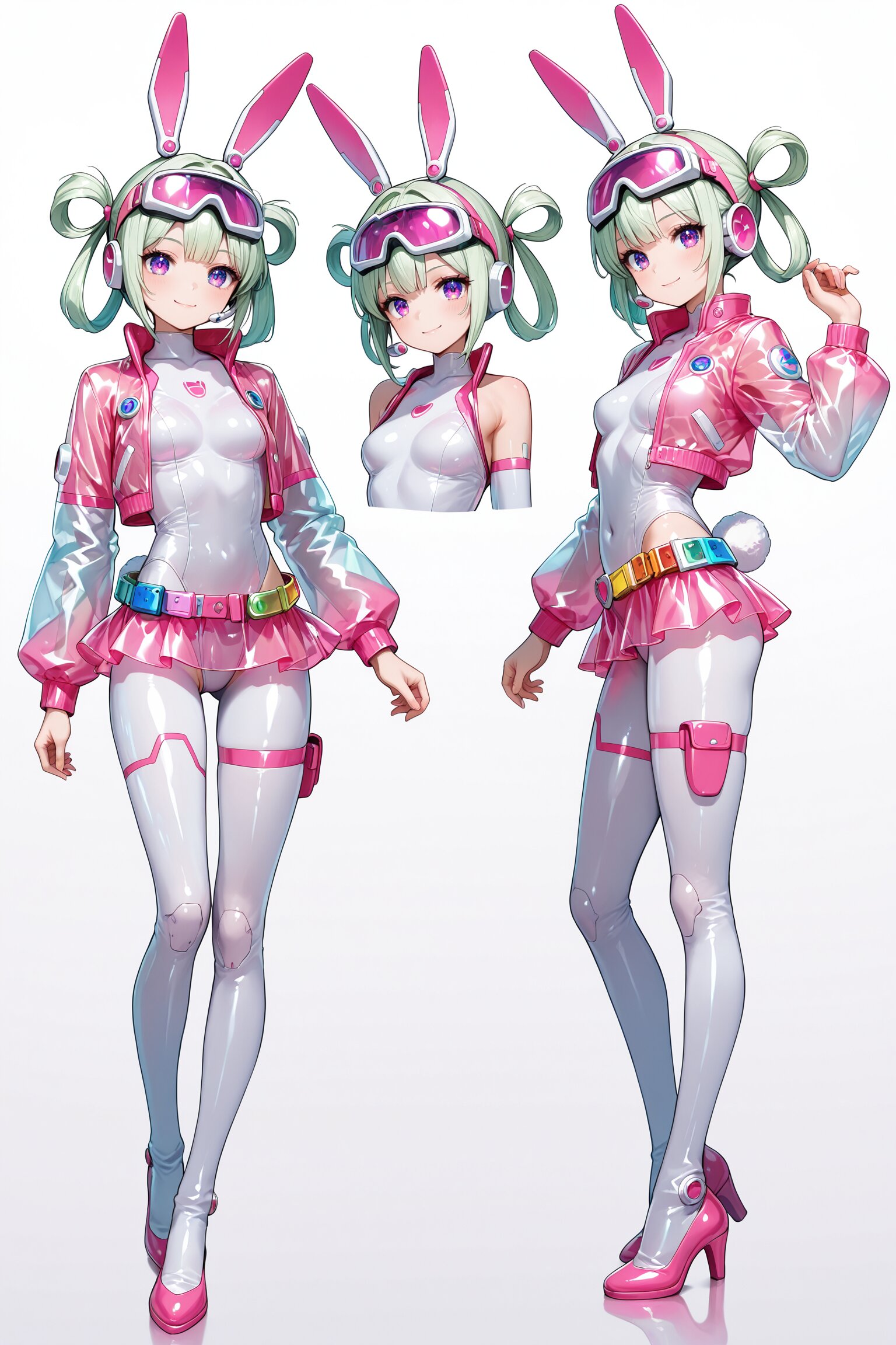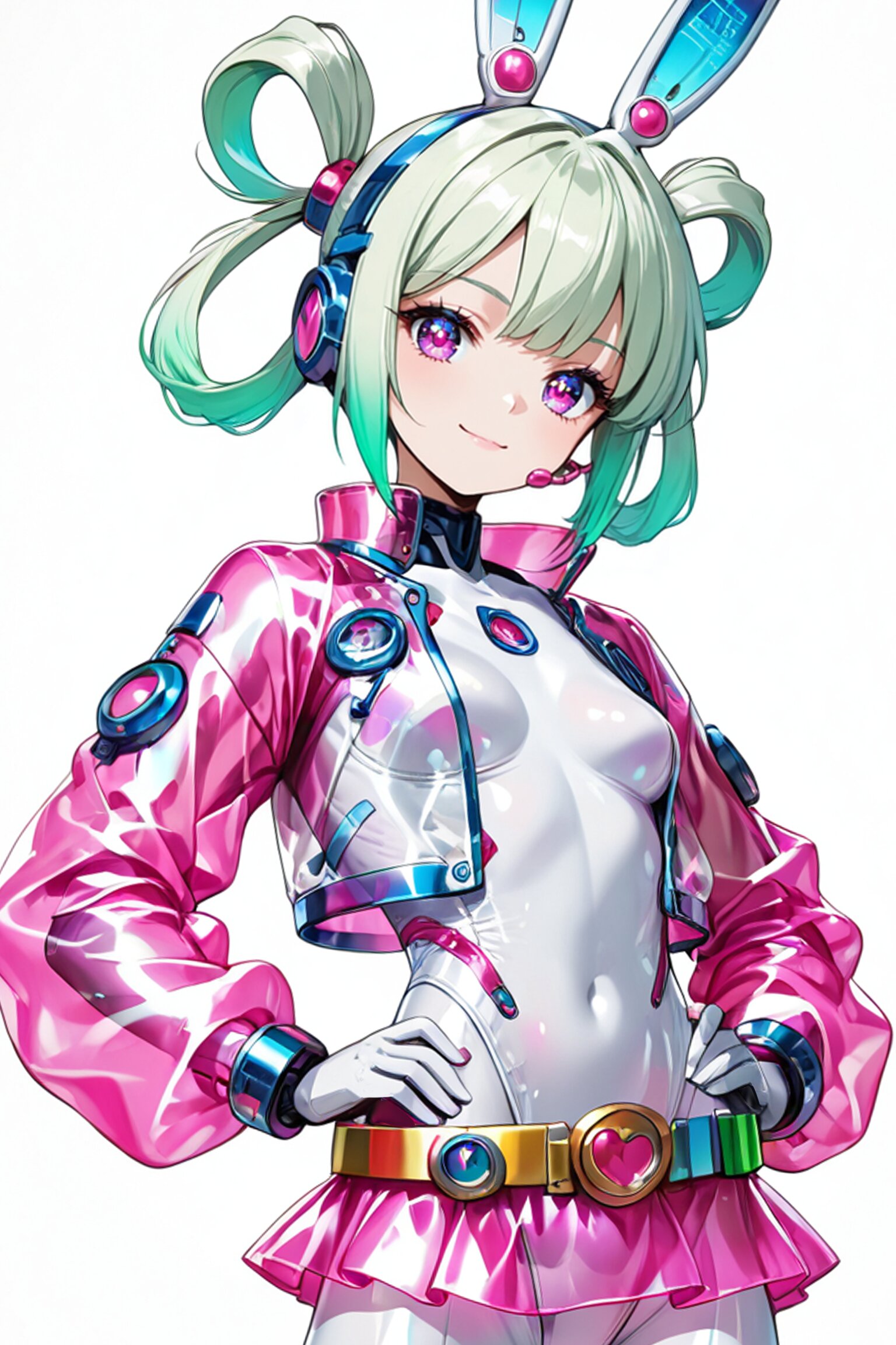 ・髪色にはエムズのイメージカラーであるライトグリーンを基調に、ホログラムのグラデーションを加え、AIらしい未来感と幻想性を演出