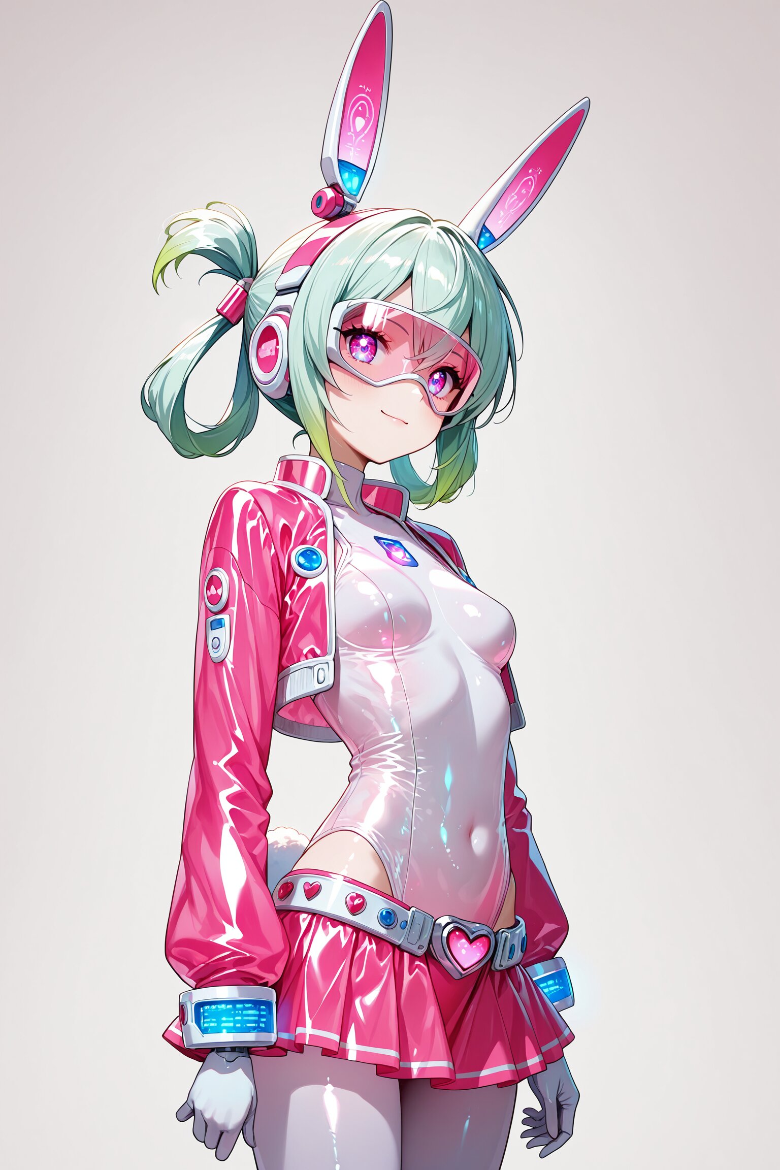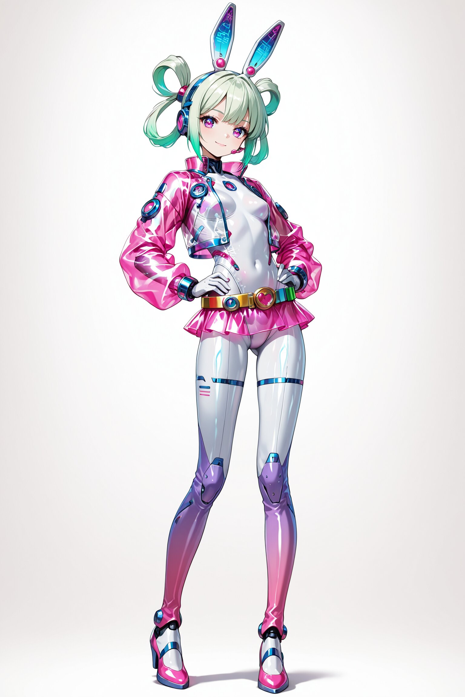 ・衣装にはクリア素材を部分的に採用し、秋葉原の電気街らしいサイバー感をプラス