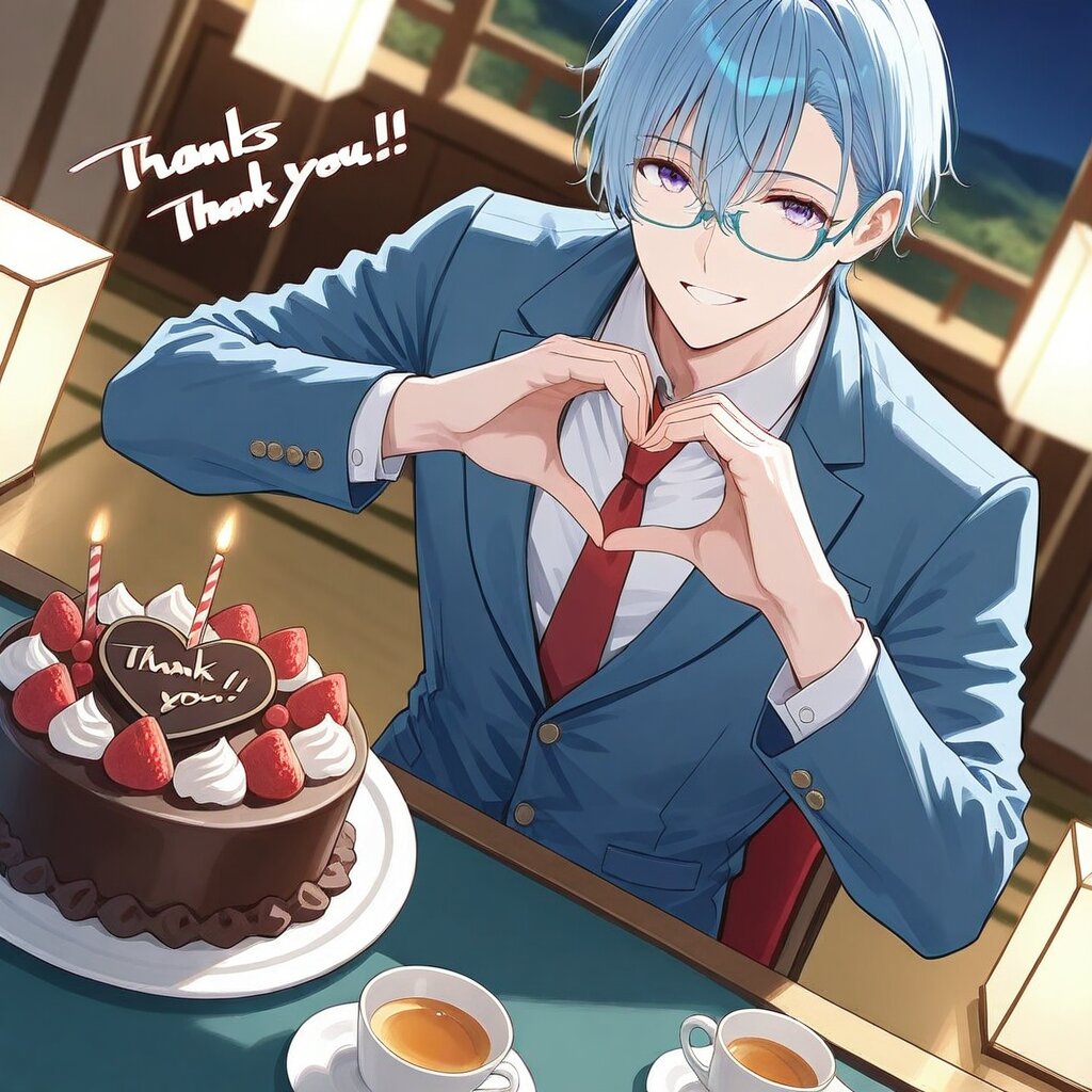 absurdres,detailed and intricate, (best quality), BREAK,(solo),(1boy),male,super beautiful,heart sign, BREAK,(blue hair),(extra short hair:1.5), BREAK,purple-eyes, BREAK,unique fashion, BREAK,thank you,gratitude,