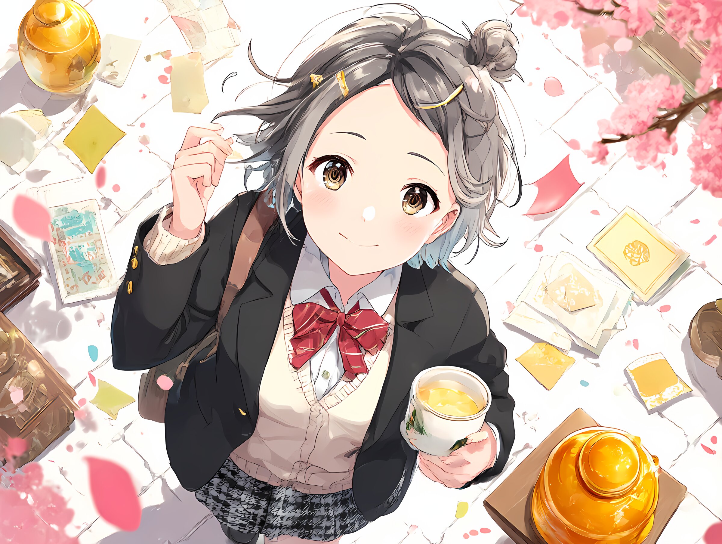 Ultra beautiful anime illustration: Japanese high school girl in early summer, wearing a blazer. She is azatokute kawaii (cunningly and adorably charming).