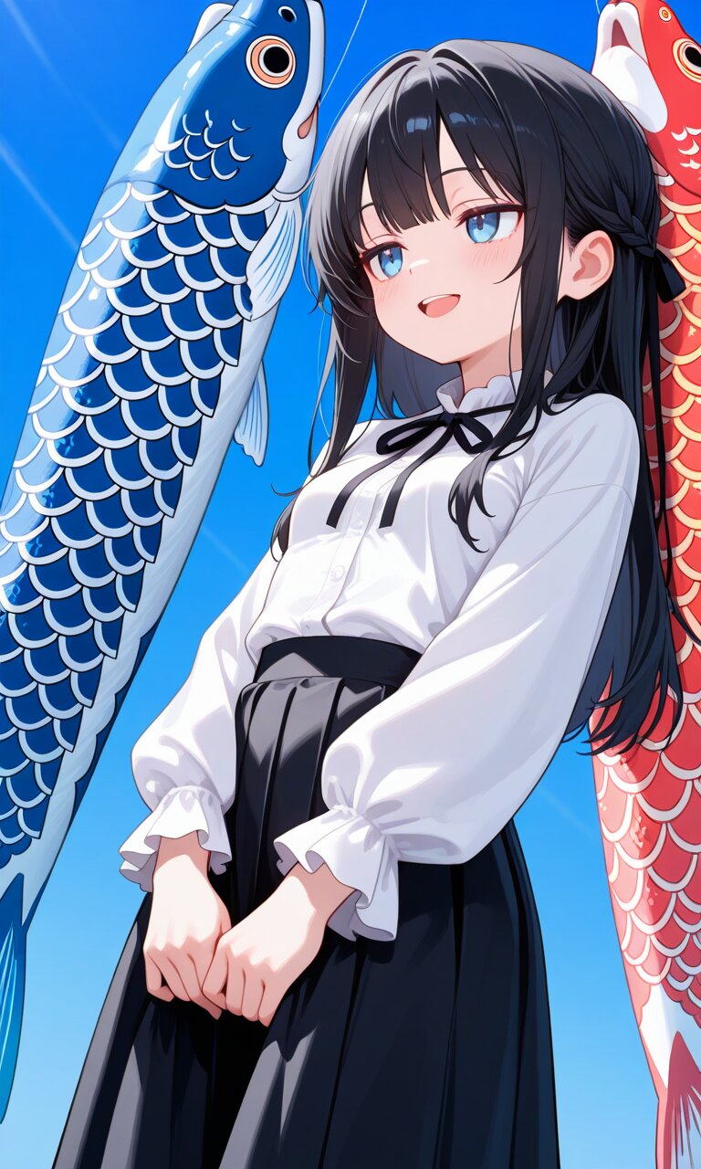 かわいい黒髪ちゃんと鯉のぼりさんの素敵なイラストですね!😊