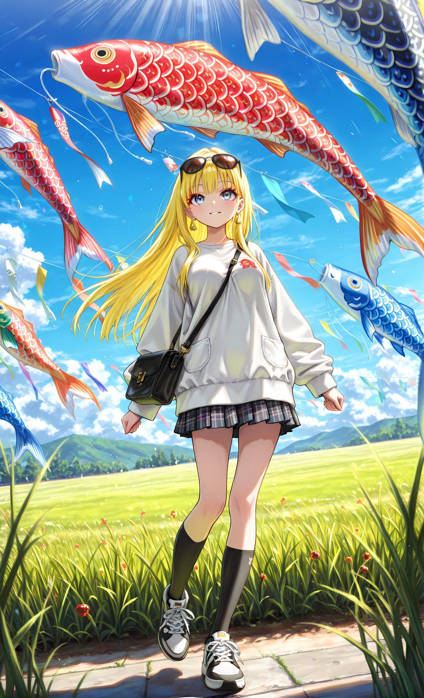 五月晴れのお空を泳ぐ鯉のぼりさんと、それを見上げるかわいい女の子ですね!😊