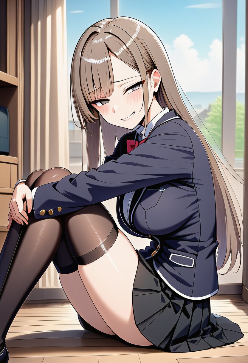 ai-generated, year 2024, 2.5::anime style::,1girl,solo,midday,in room,from side, masterpiece, best quality, ultra detailed, perfect fingers, high resolution, absurdres, perfect anotomy, detailed background, unity 8k wallpaper, location, masterpiece, no text, -0.8::feet::, rating:general