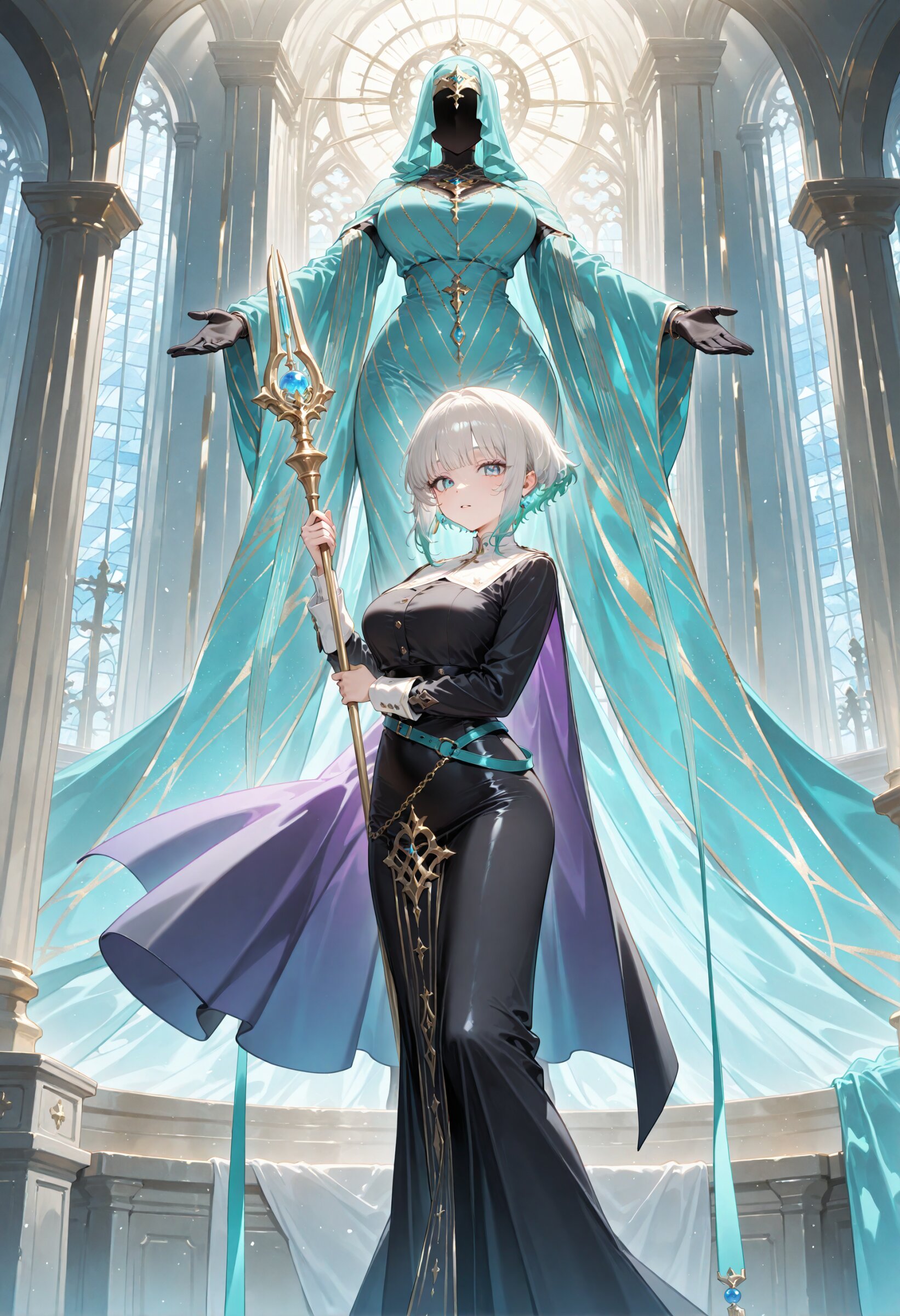 from side, looking at viewer (close up:1.3), knees out of frame (from below,looking down:1.2) cinematic angle, looking at viewer, 1girl, monk, beautiful detailed eyes, holy face, cool Elegant and sophisticated demeanor, (redness skin:1.0), skindentation, beautiful ever green eyes, solid circle eyes , multicolored hair, black,turquoise green,copper,cerulean blue hair, short hair, inverted bob,blunt bangs , soft hair, first-rate female bodies perfect body beautiful large breasts medium hips, (divine,Holy,goddess:1.2),, nun,Gold hair ornaments, purple cape, cloak, divine Stola, long sleeves, , , belt buckle, chest belt, , , ,, long skirt, (silk overskirt:1.0), boots, shiny smile, (nervous smile,turn pale:1.0), God Light, (intricate), opulent, lustrous, holy outfit, A solemn atmosphere of piety, ascetic manner, outdoors of Westminster Cathedral, altar, , holding scepter, holy light, beautiful morning, divine energy aura, holding own arm super fine concept art, hard surface, graceful eyes, different reflection, masterpiece, best quality, amazing quality, very aesthetic, absurdres you can add scenery, (volumetric lighting), To make the background more distinctive. professional art lots of details, , overexposure, shiny-glistening, (watercolor style:1.0), (pastel color style:0.0) <lora:noline (1):-0.5> <lora:sdxl2-flat2-512b:0.2> <lora:facelightup_xl_v10:0.5>