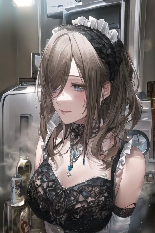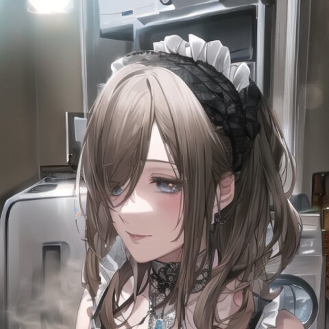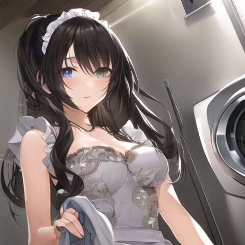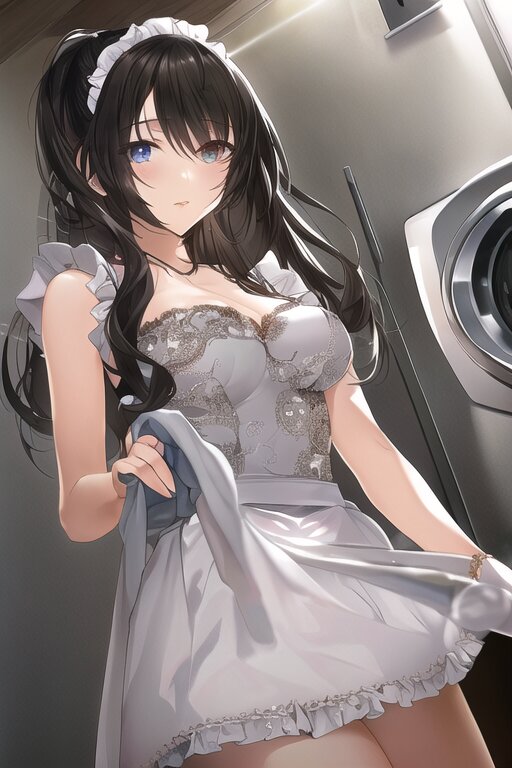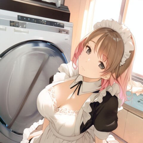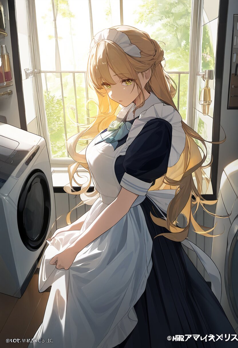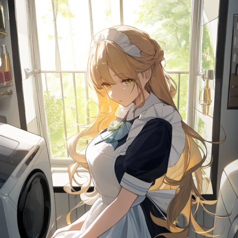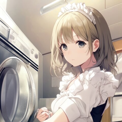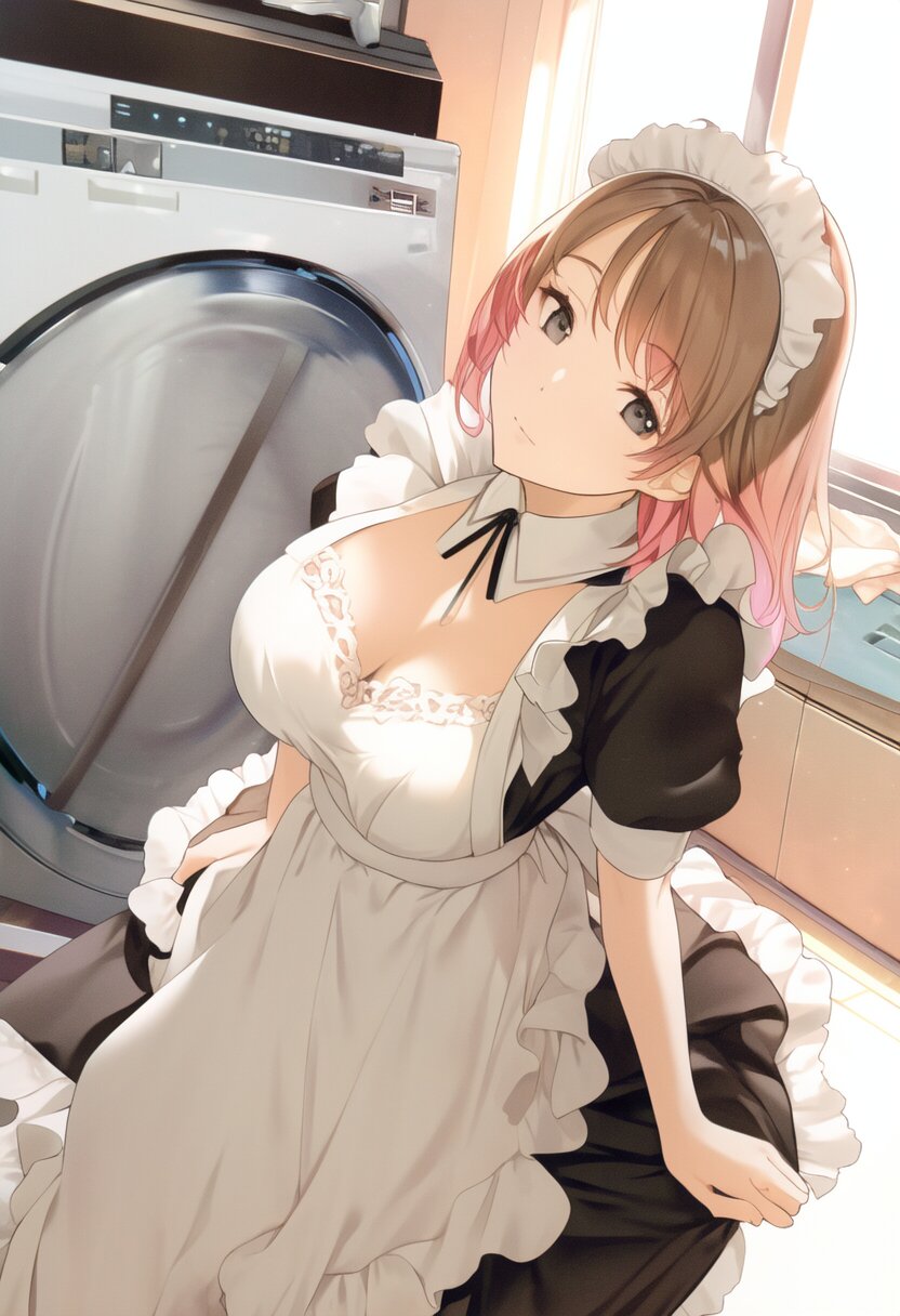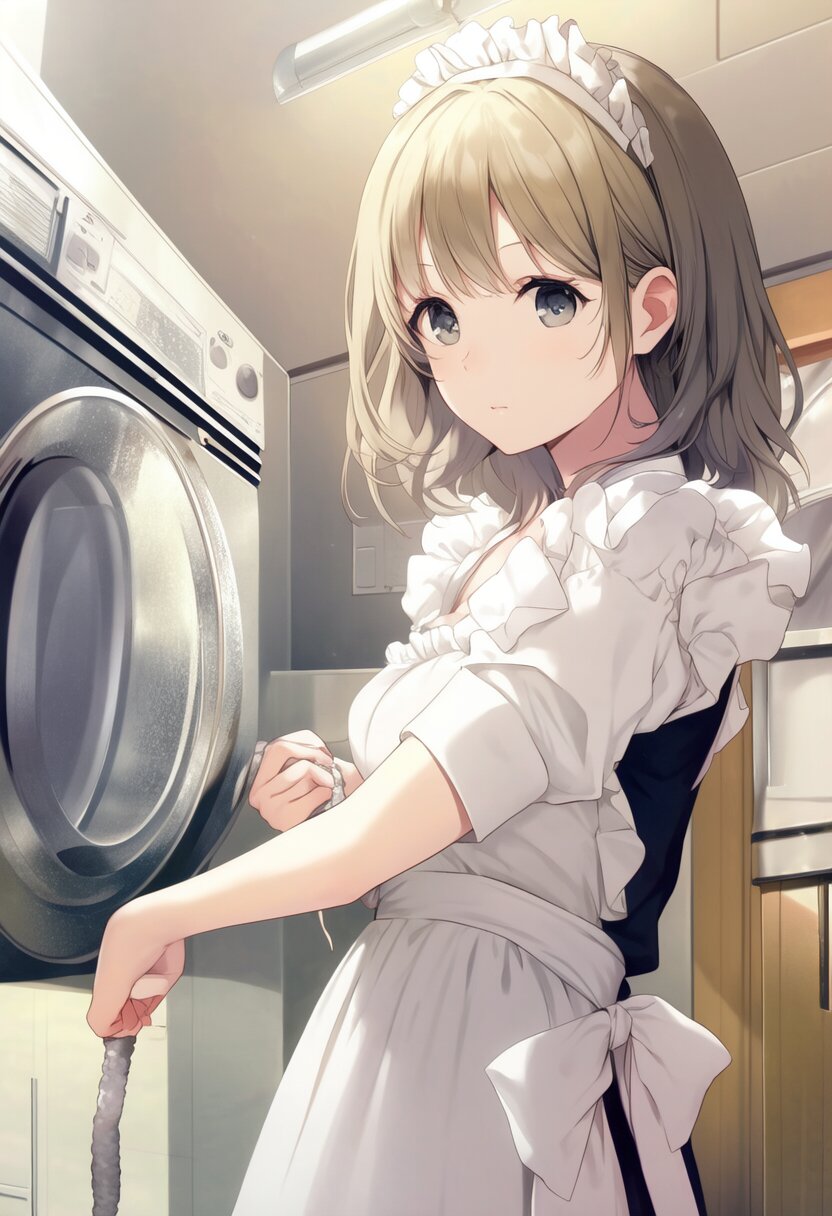 very aesthetic, best quality, absurdres, washing machine, maid, girl, solo, beautiful detailed hair, beautiful detailed eyes, official art, {{ultra-detailed}}, {{masterpiece}}, {{high resolution}}, with blush cheeks, dynamic fuzziness, intricate light, colorful, hdr,