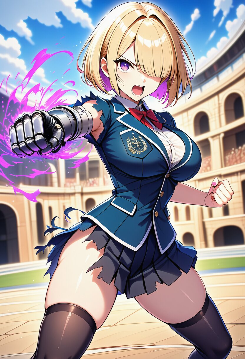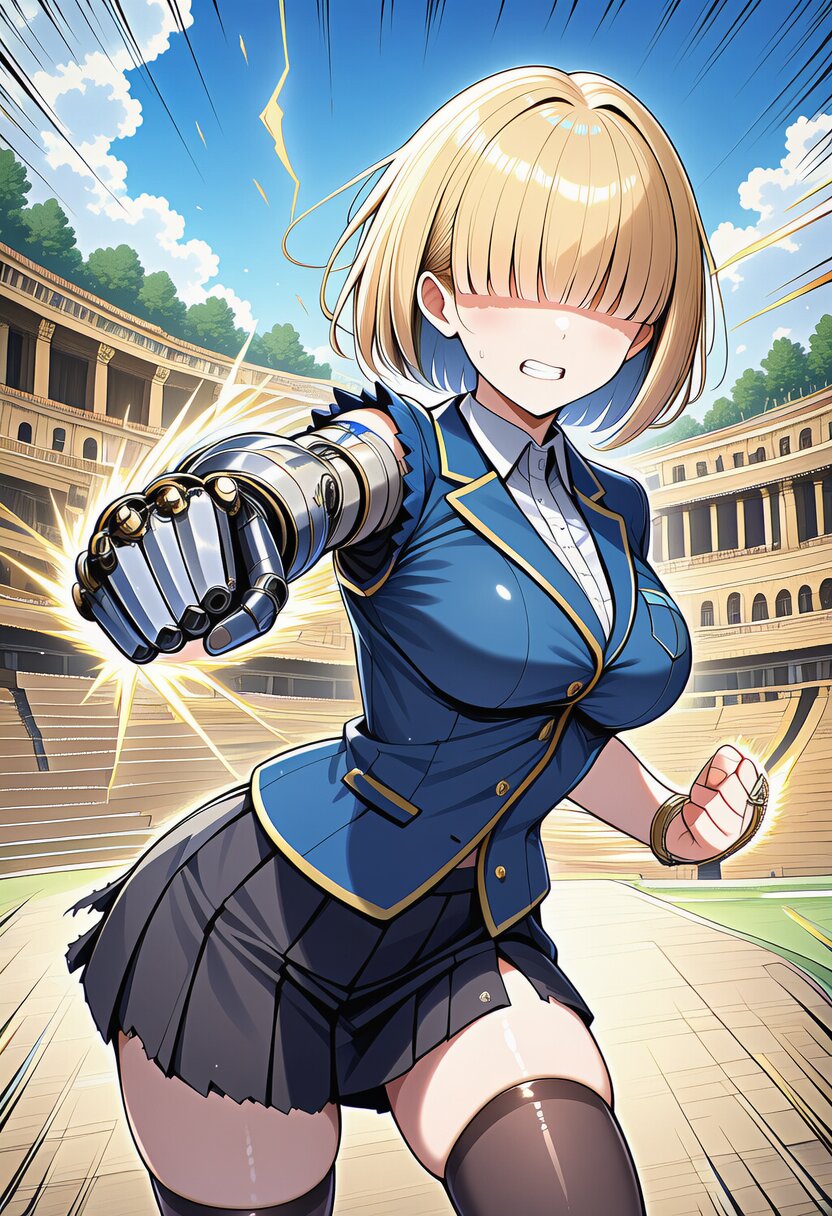 ai-generated, year2024, 2.5::anime style::,1girl,solo,1.5::fighting posing,motion line::,midday,indoor,1.0::in Colosseum::,dynamic angle, masterpiece, best quality, ultra detailed, perfect fingers, high resolution, absurdres, perfect anotomy, detailed background, unity 8k wallpaper