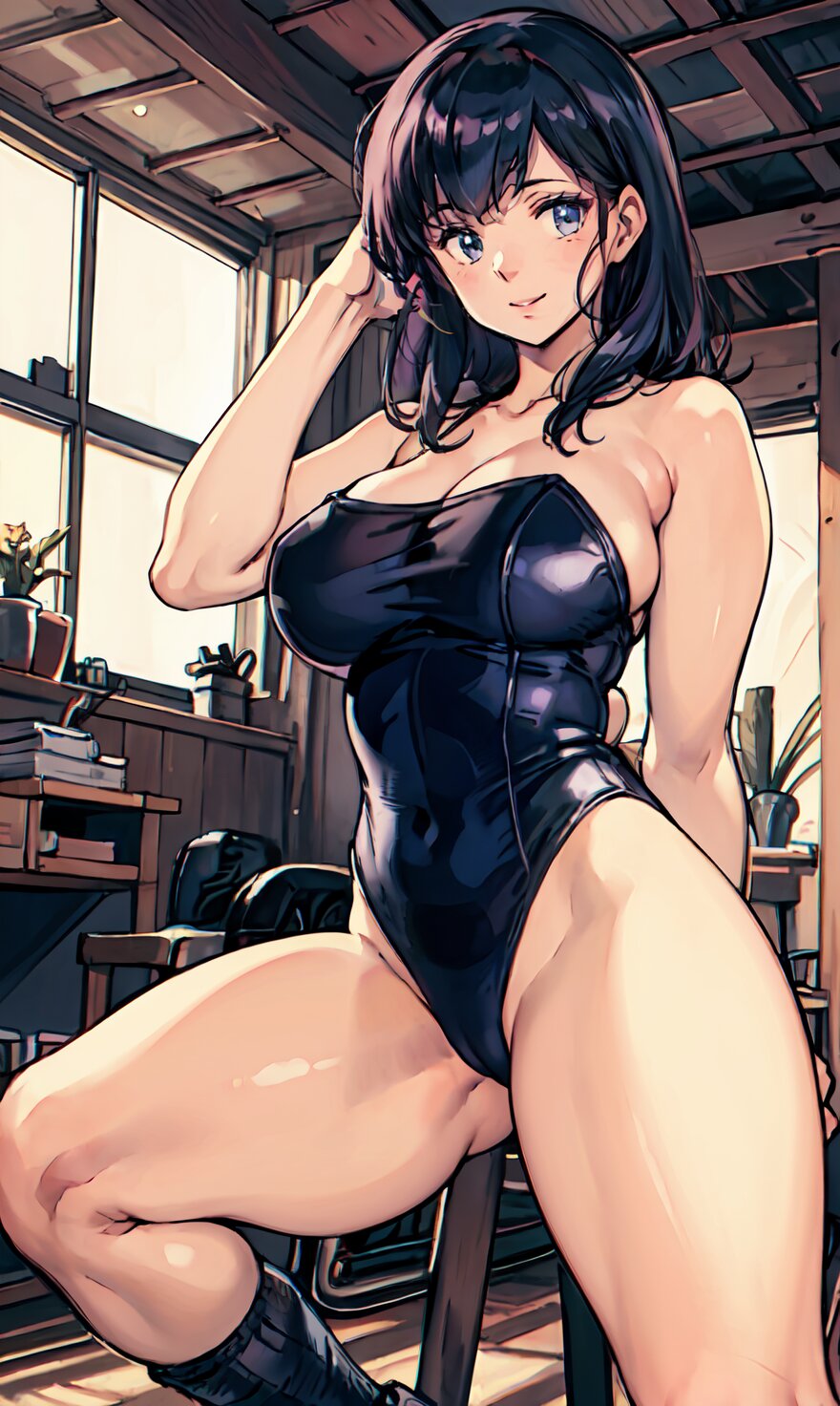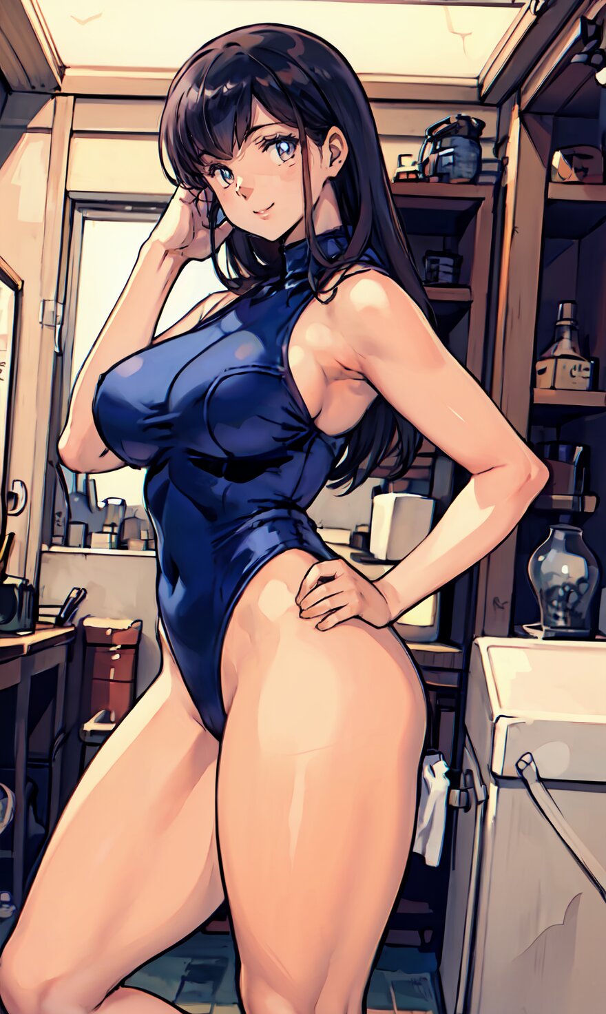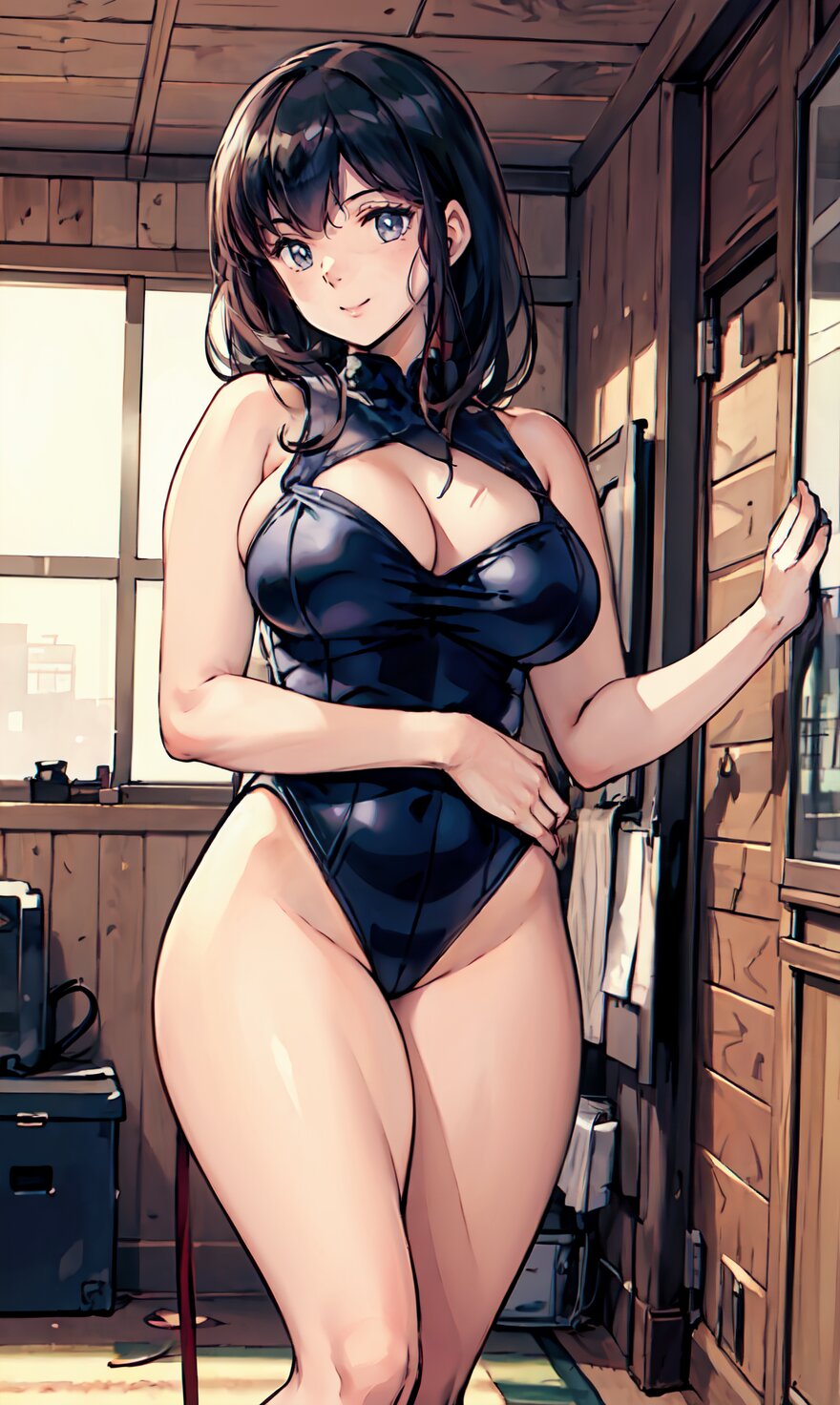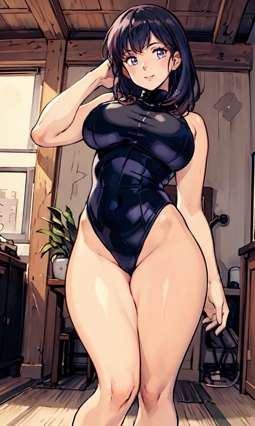 (8k, best quality, masterpiece:1.4), (realistic, photo-realistic:1.6), HDR, (incredibly absurdres:1.2), (vibrant color:1.2), ultra-detailed, (random pose, from front: 1.6), 1girl, solo, 22 years old, (chubby, huge breasts: 1.4), black long hair, (close up face: 1.2), perfect body, highly detailed, shiny skin, shiny hair, looking at viewer, (sexy Plunge leotard: 1.4), walking in the GYM, <lora:Oto_v01:0.8>