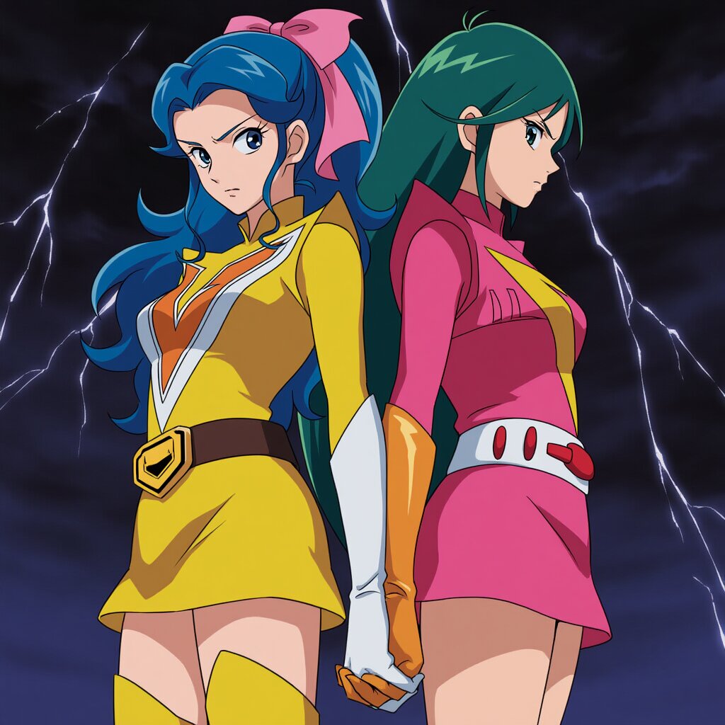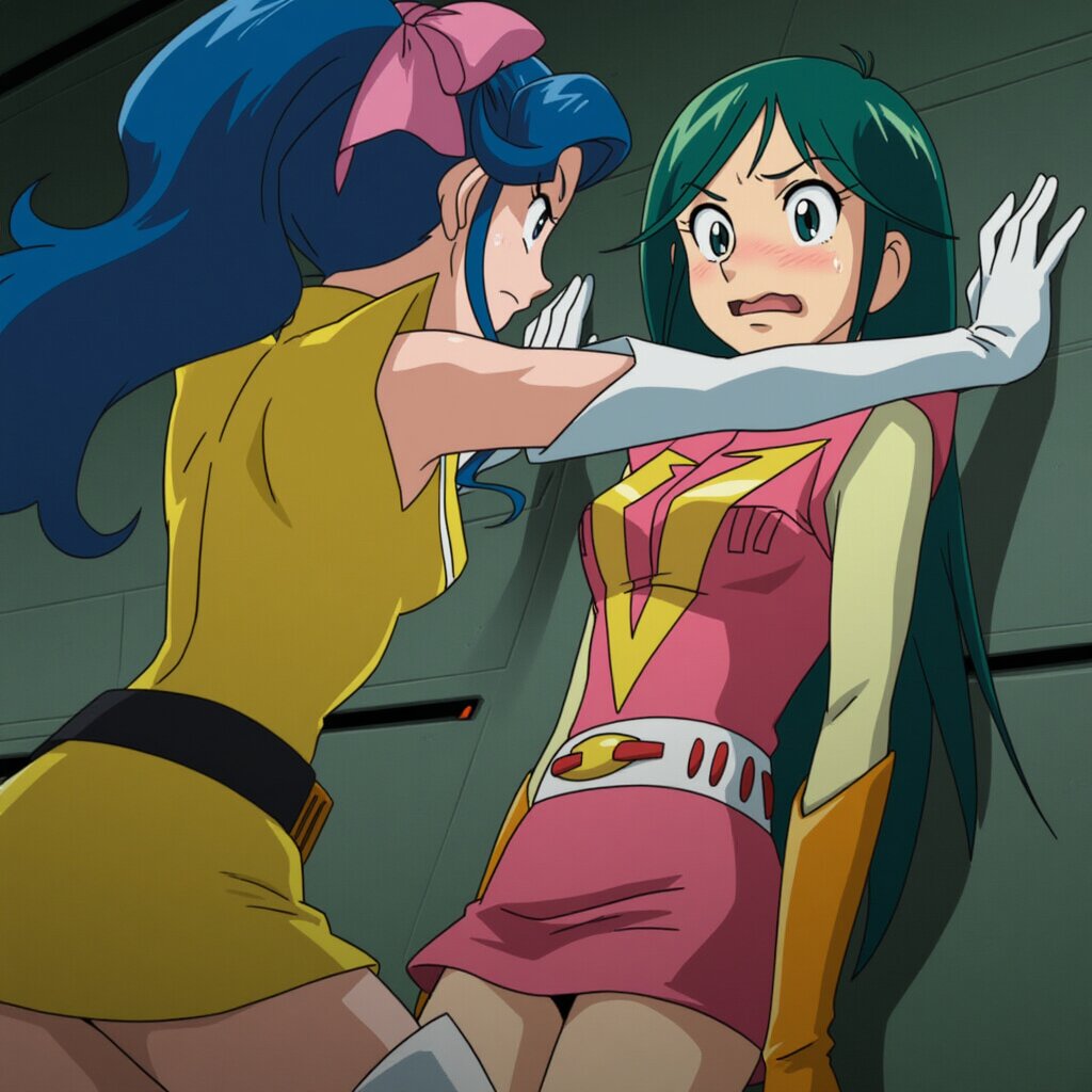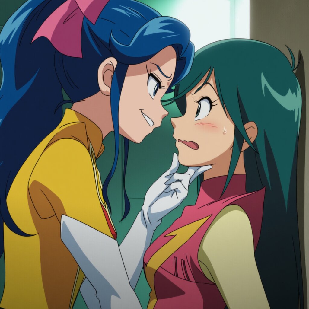 official style, anime coloring,fraught scene,serious face, looking at another, intricate, hyper-detailed, 100-layer, {{{{ultra-high resolution}}}}, {{{hi-vision anime}}},face to face ,flashing lights, revolving lights,, no text, best quality, very aesthetic, absurdres