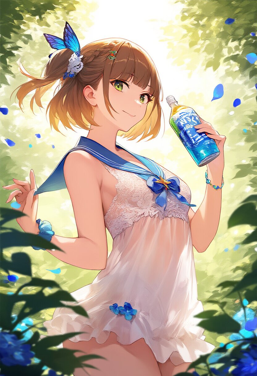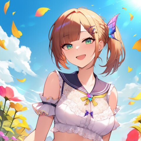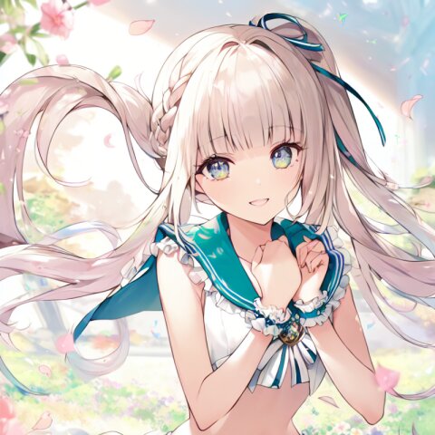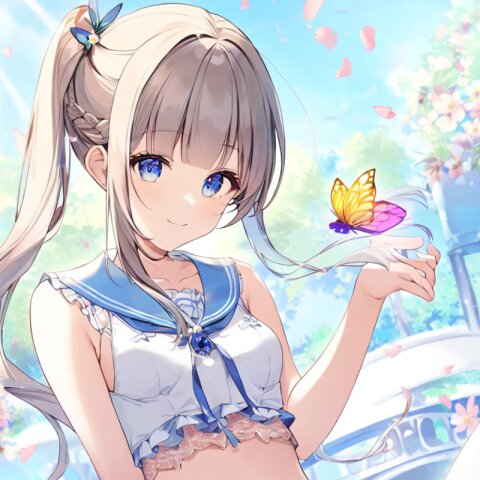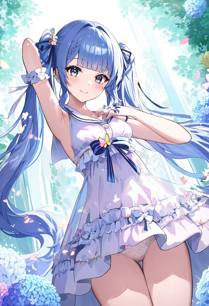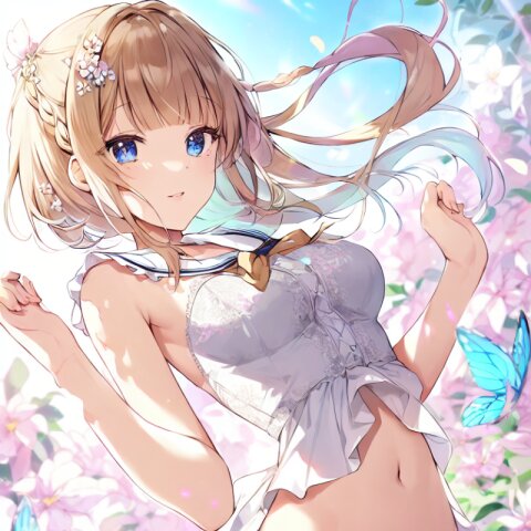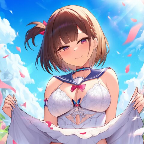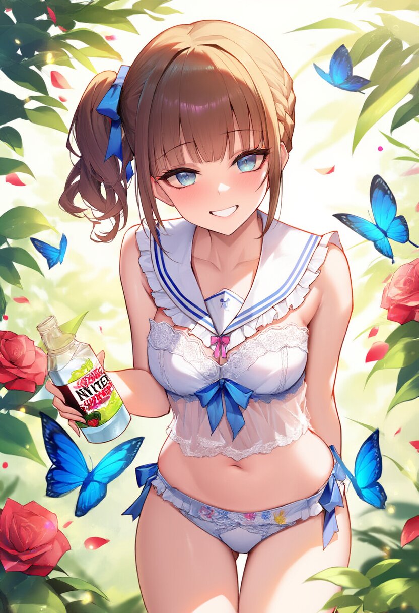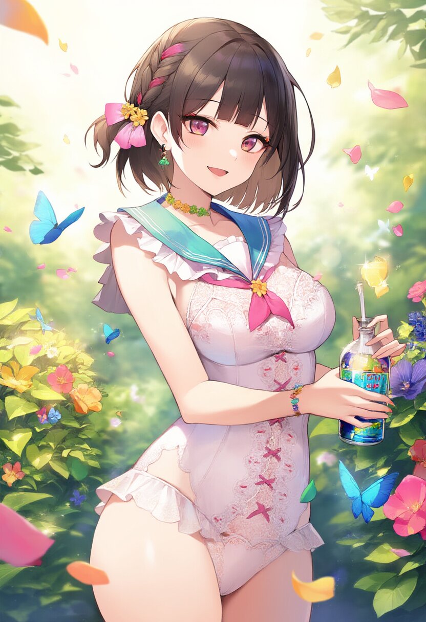 "Enchanted Garden Goddess" - Imagine a captivating AI illustration of a girl in a magical garden, wearing delicate lace lingerie adorned with ribbons and butterflies. She exudes confidence amidst floating petals and sunlight, her attire boasting frills, lace, and a sailor collar. Adorned with colorful accessories, her eyes sparkle with joy amidst blooming flowers, embodying the essence of beauty and allure... official art, {{ultra-detailed}}, {{high resolution}}, dynamic fuzziness, colorful, best quality, cowboy shot, underwear, girl ,solo, 20 years old, beautiful detailed hair, beautiful detailed eyes, blunt bangs, braid hair, twintail, side ponytail, bob, Shostakovich, hypermaximalist, super detailed, {{{{amazing quality, great quality, high quality, very aesthetic,, best quality}}}}, rating:general, best quality, very aesthetic, absurdres
