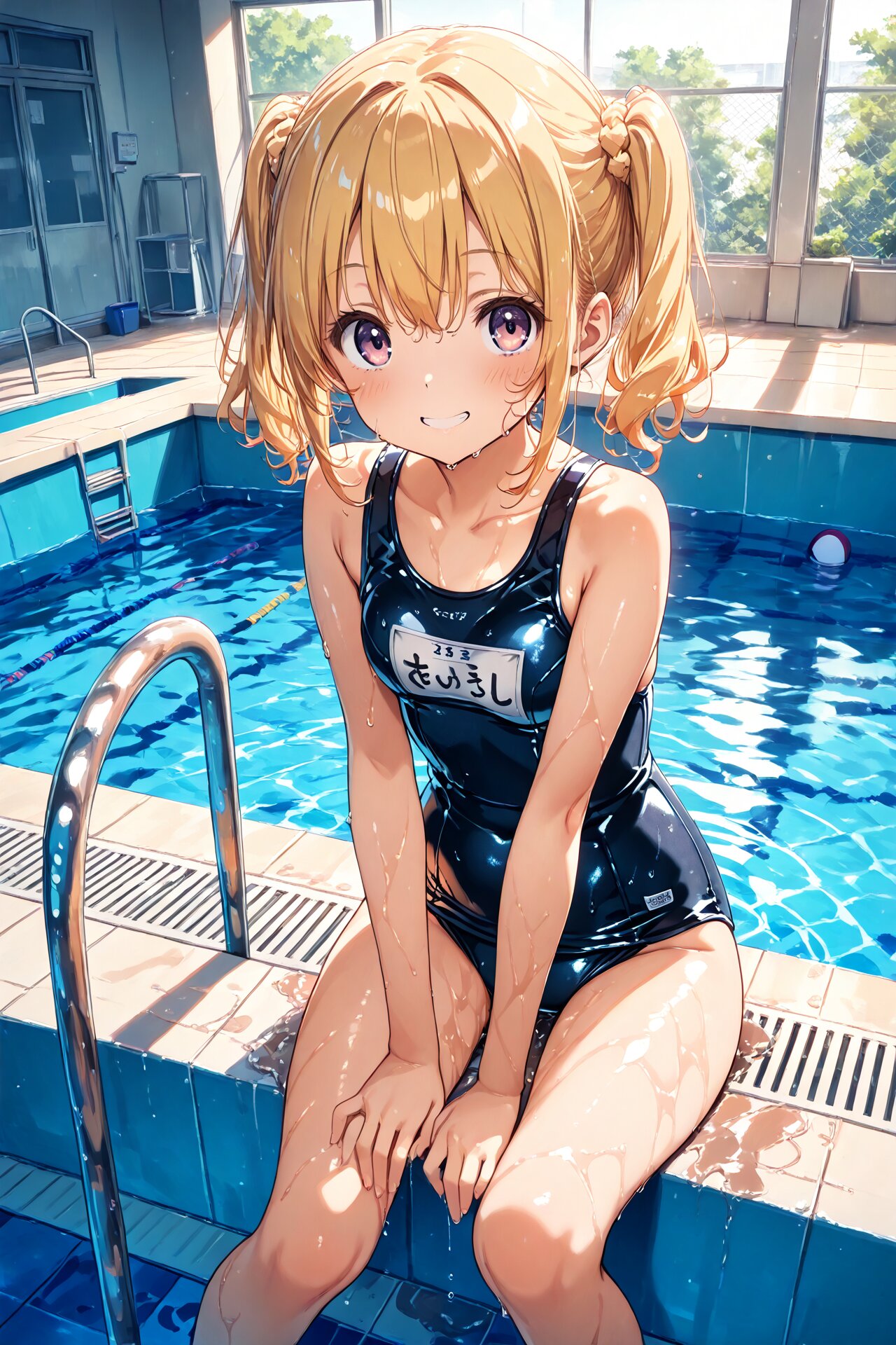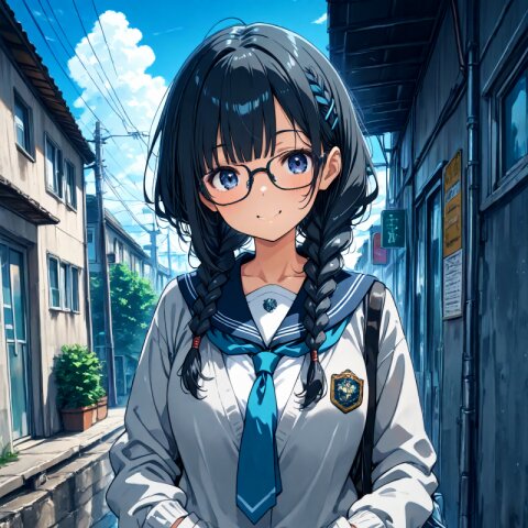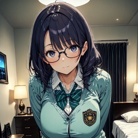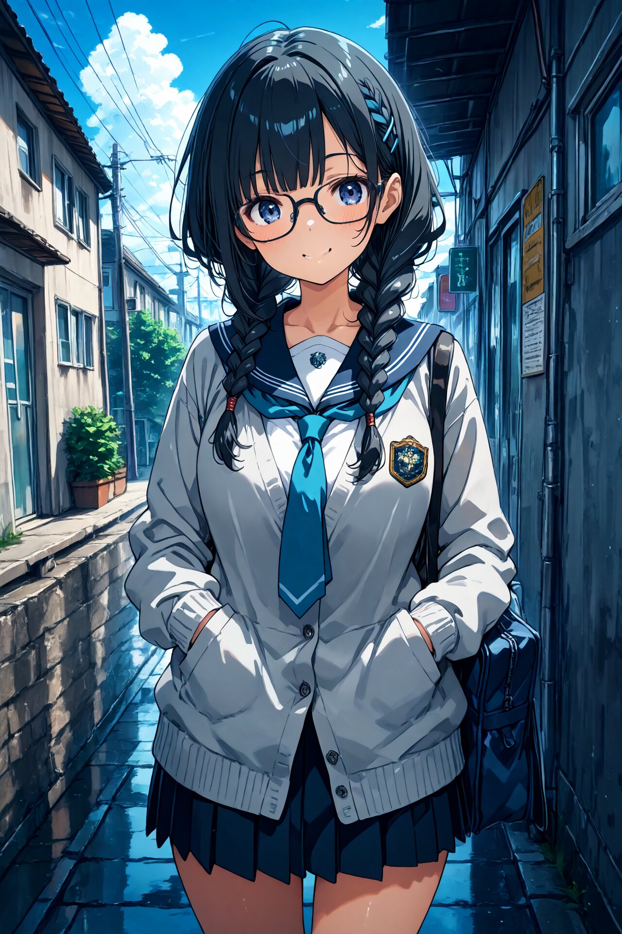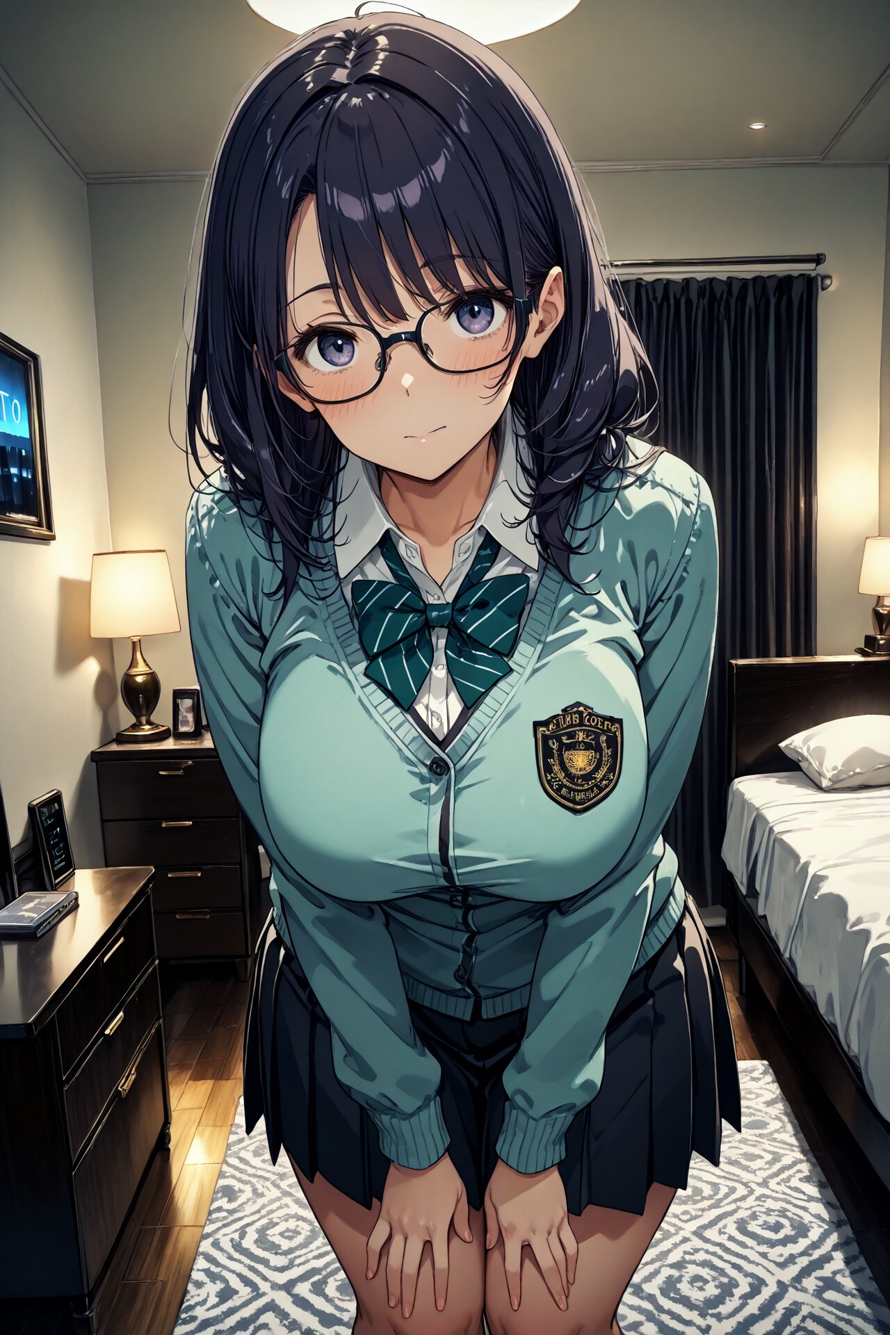 masterpiece, best quality, bikini, huge breasts, glasses, outdoors, wet, troubled face,