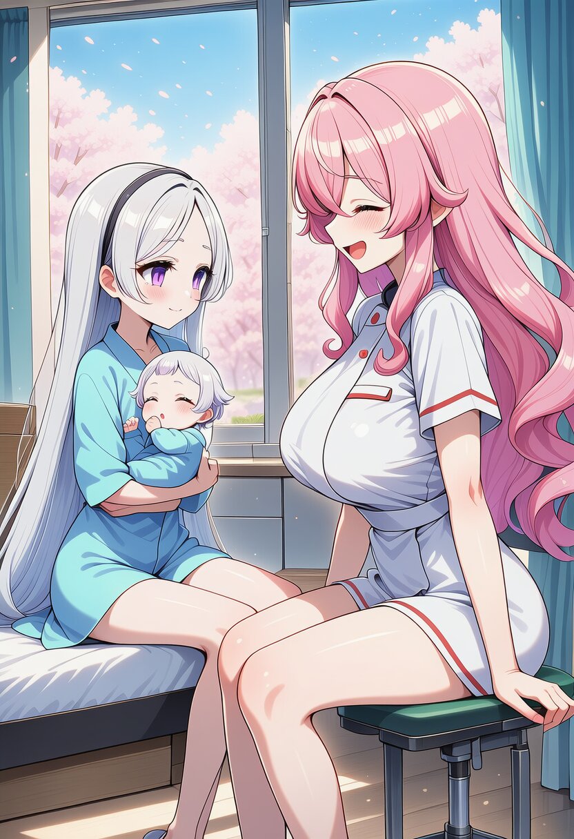 ai-generated, year 2024, 2.5::anime style::,2girls,yuri,facing opposite each other,midday,indoor,in hospital,dynamic angle, masterpiece, best quality, ultra detailed, perfect fingers, high resolution, absurdres, perfect anotomy, detailed background, unity 8k wallpaper, location, masterpiece, no text
