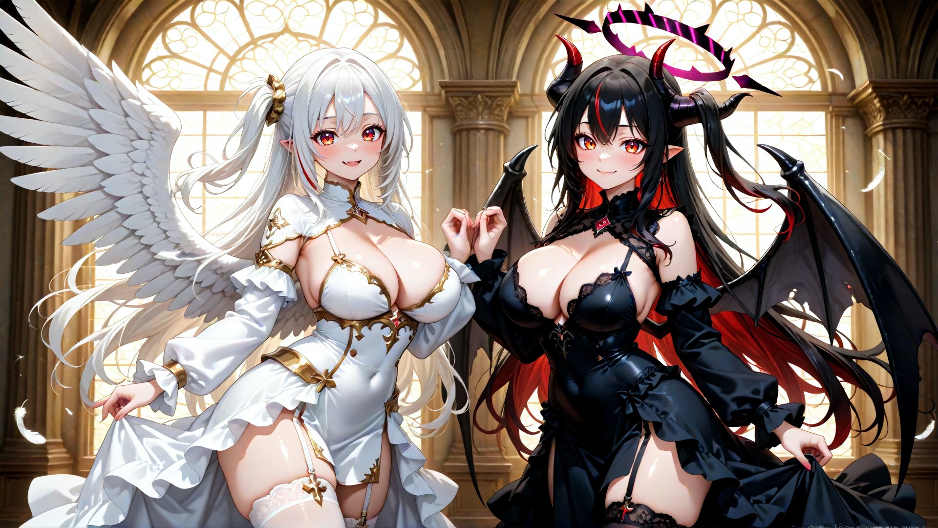 神聖な光をまとう天使と、誘惑の闇を纏う悪魔。