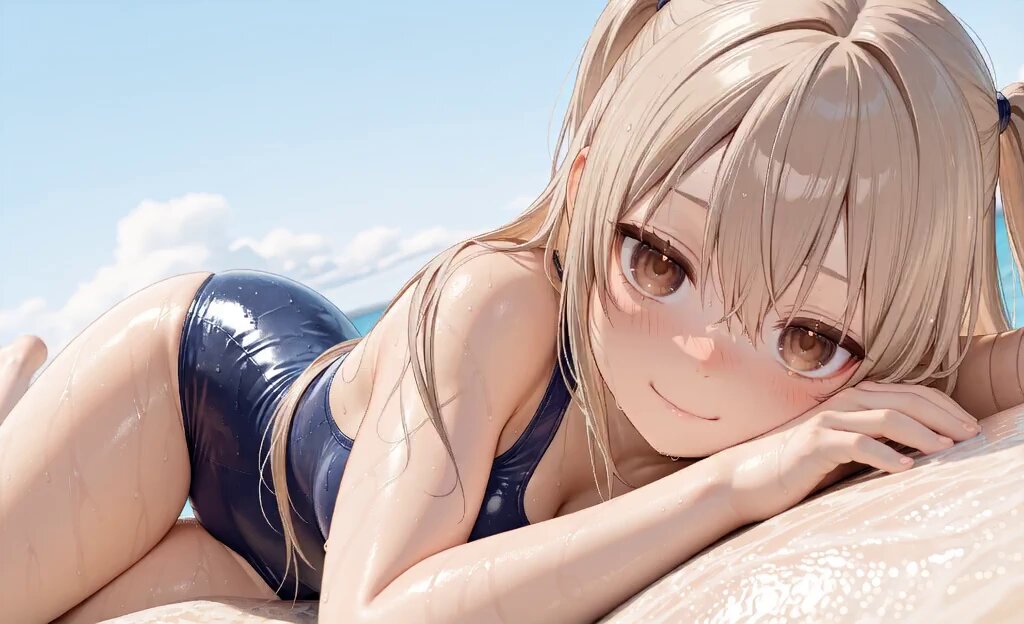 イラストのような浜辺はまだ先だと思いますが・・・。