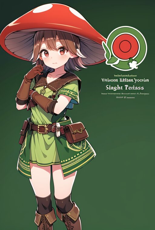 masterpiece, best quality, finely detailed, 1girl <lora:emg_test_3.safetensors:0.7>, medieval fantasy, brown hair, mushroom hat, mushroom red, short hair, beautiful detailed face, detailed eyes, green clothes, stand, cover picture, leather gloves, determined face, : >
