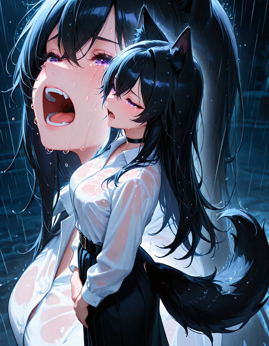 1girl,20yo,<玲さん>, black choker,white dress shirt,black belt,long skirt, standing, at night,night sky,rain,drainage,wet hair,wet clothes, tears,(screaming:1.1),half-closed eyes,crying, tearing up,tears, BREAK from above,from side,projected inset,(zoom layer | from front:1.2),general,safe,, appropriate posture,appropriate configuration,ideal ratio body proportions,perfect anatomy, <lora:Fixhands_anime_bdsqlsz_V1:1>, masterpiece,best quality,newest,absurdres,highres,ultra high res,8K UHD,hyper-detailed,