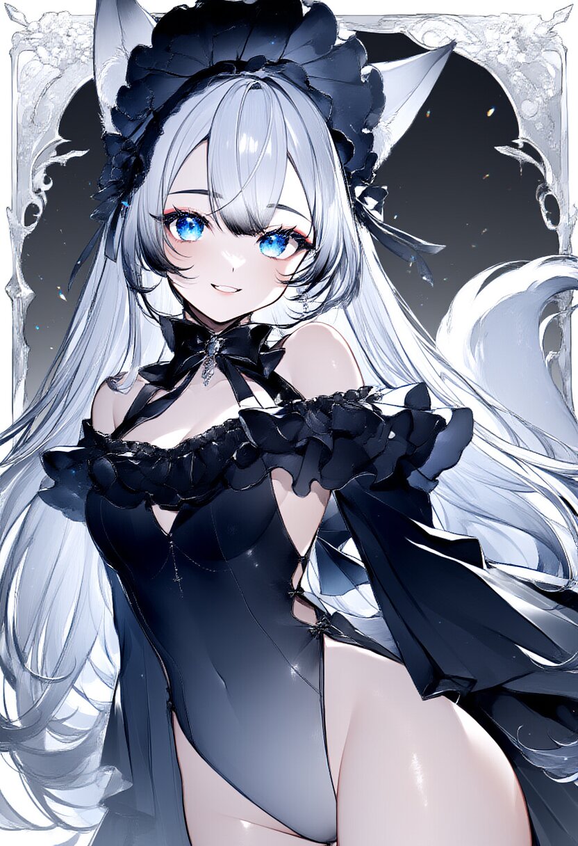 {{{amazing quality}}}, {{{ultra detailed}}}, {{{very aesthetic lineart}}}, {{{high resolution}}}, {{{detaild intricate}}}, {{{absurdres}}}, {{{high quality}}}, {{{very aesthetic gradation metallic blue eyes}}}, {{{very aesthetic face}}}, {{{very aesthetic skin}}}, {{{very aesthetic woman}}}, {{{very aesthetic hair}}}, {{{very aesthetic body}}}, dutch angle, beautiful detailed glow, perfect anatomy, depth of field, beautiful detailed woman, 1girl, fox girl, sharped fox ears, fox tail, eyelashes, lipgloss, Oversized gothic lolita outfit with lots of frills and ribbons, gothic lolita, {{{gothic elegant frill dress}}}, kawaii, frills, happy, smooth and silky hair, silky skin, headdress,