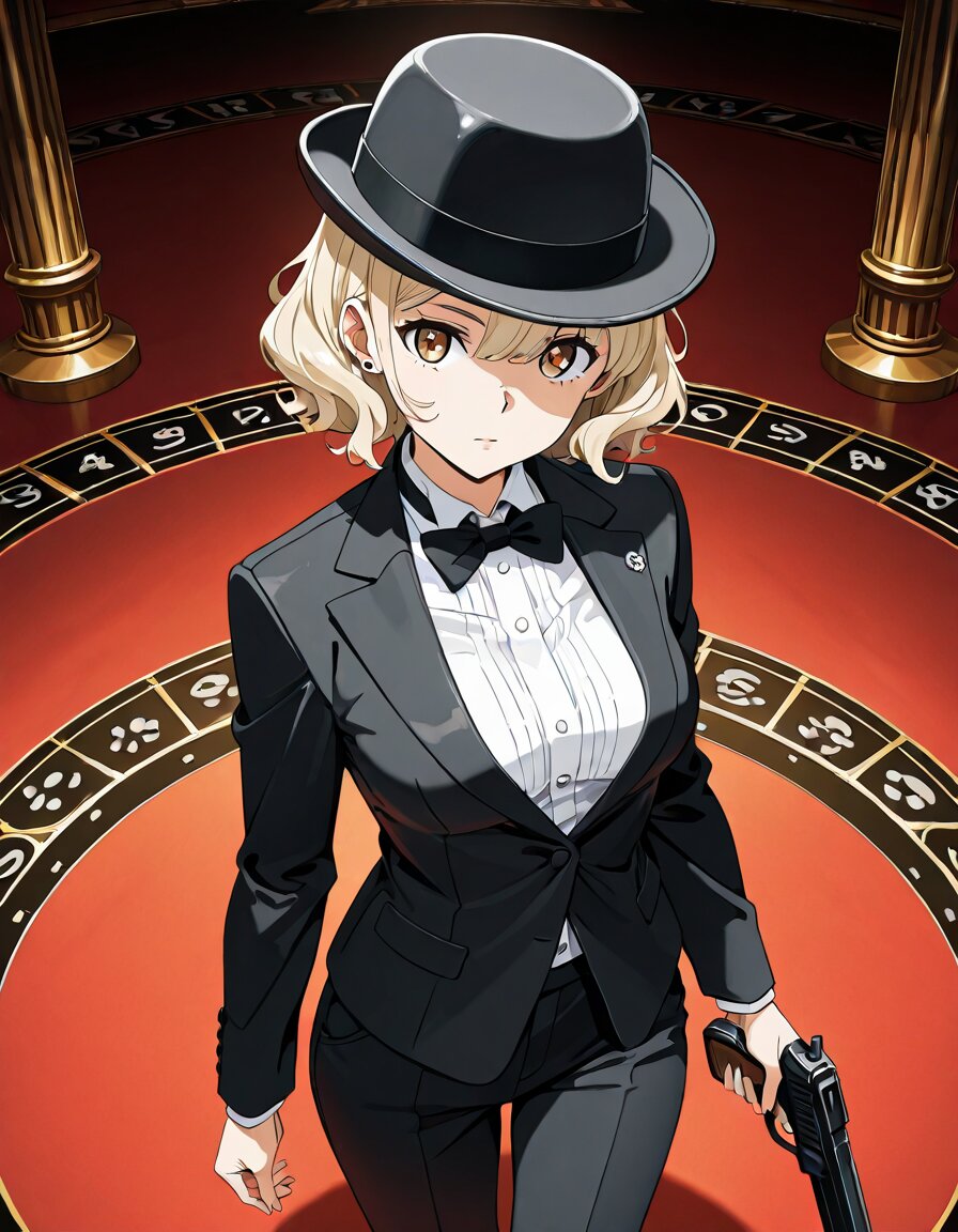 投稿7つ目になりましたので記念に作りました。世界で1番目か2番目(impossibleな任務をこなす方も有名ですので)に有名な某国諜報部員をイメージした女の子のイラストです。