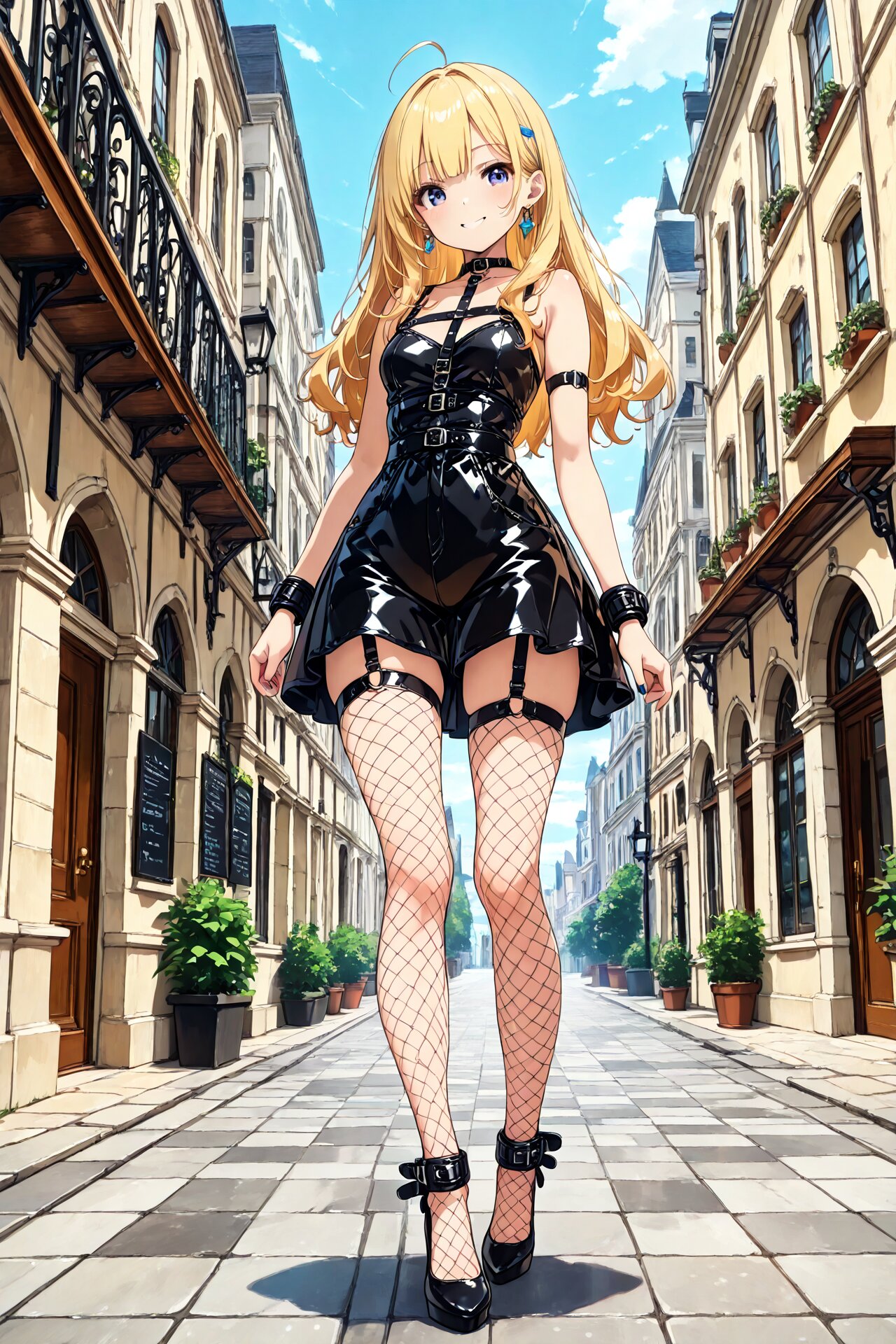 masterpiece, bondage fashion, outdoors, smile,