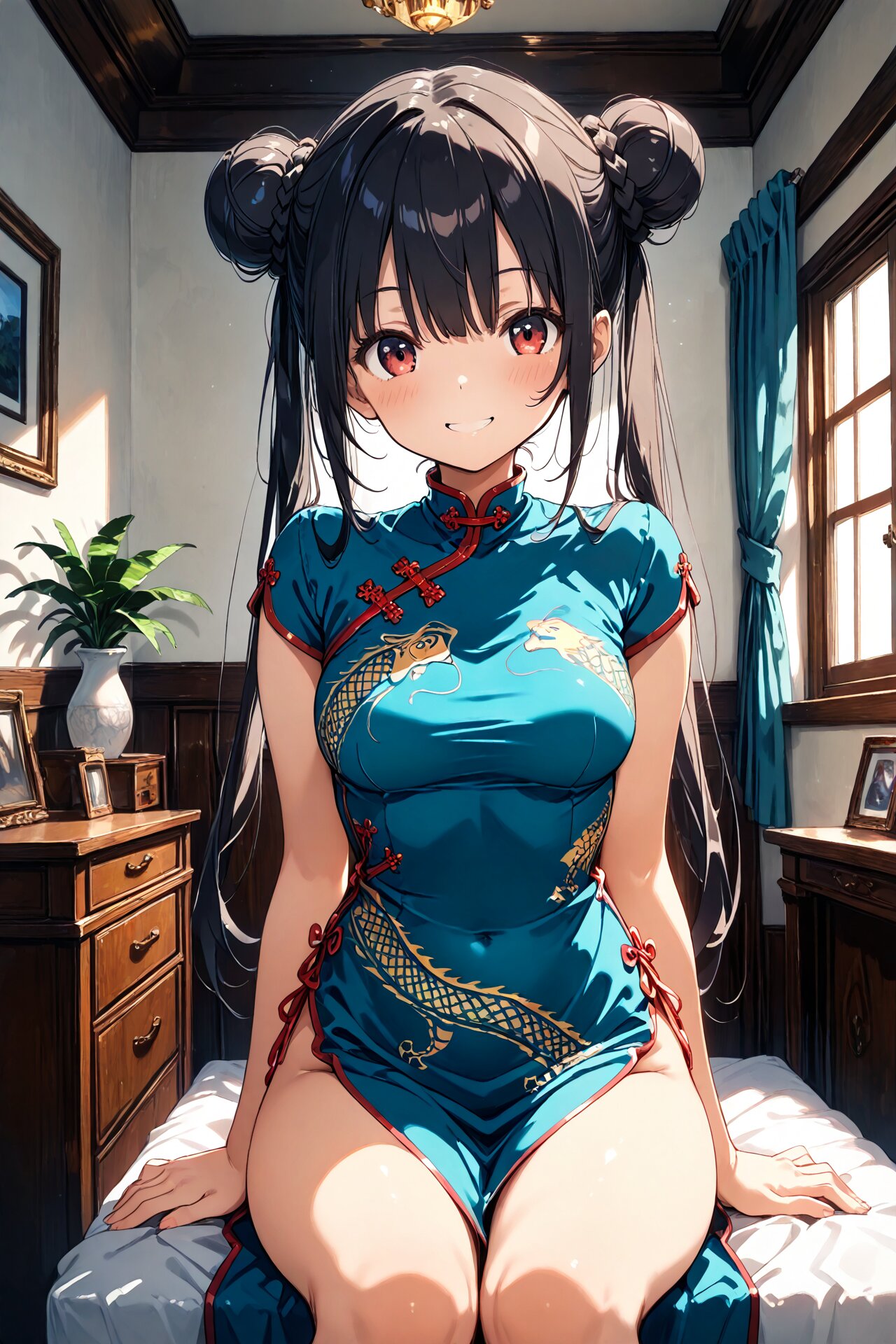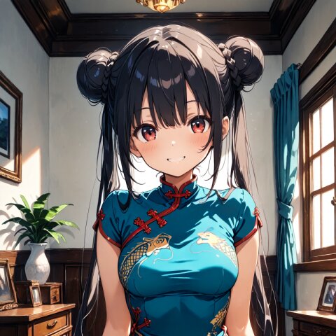 masterpiece, best quality, Chinese dress, indoors, smile,