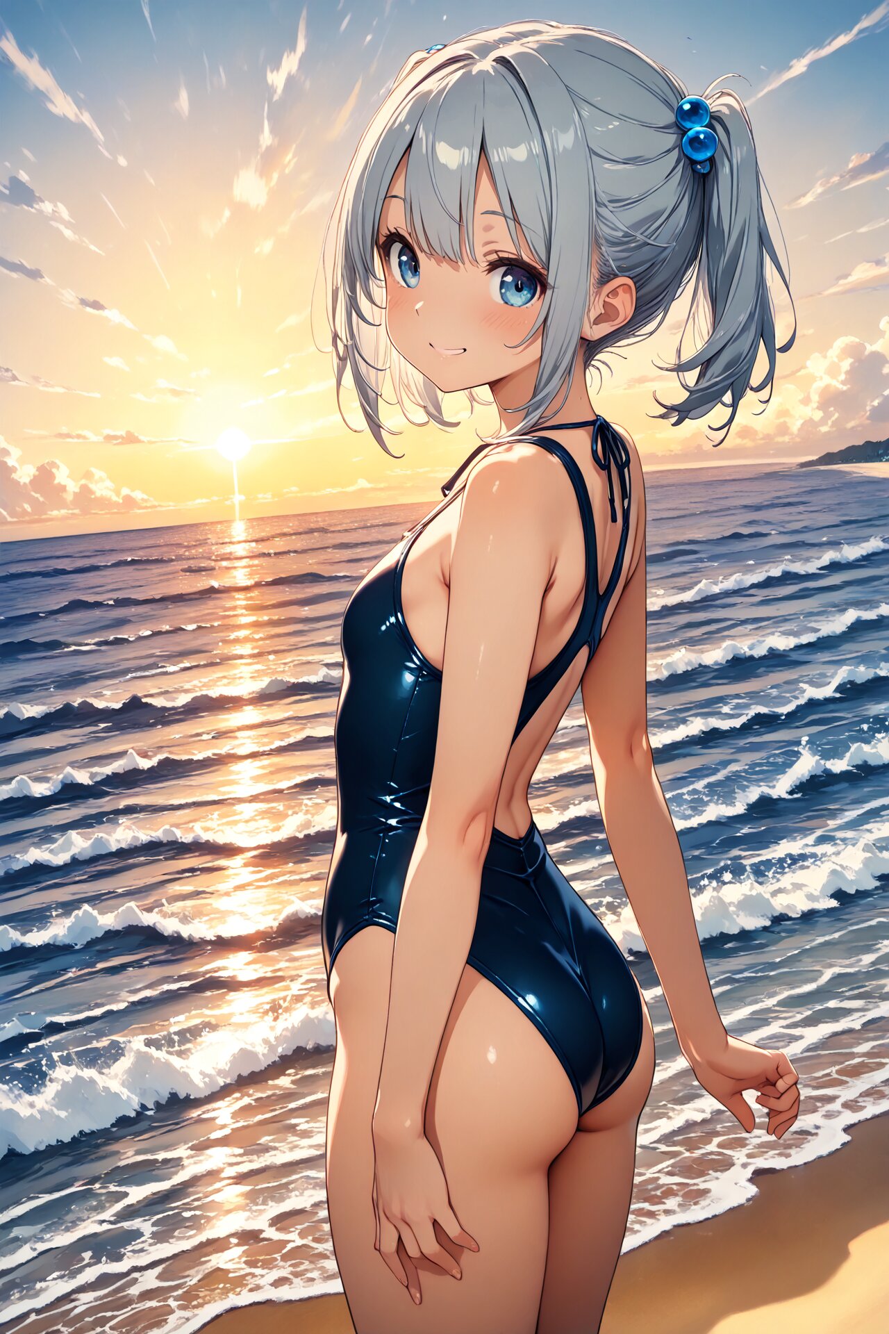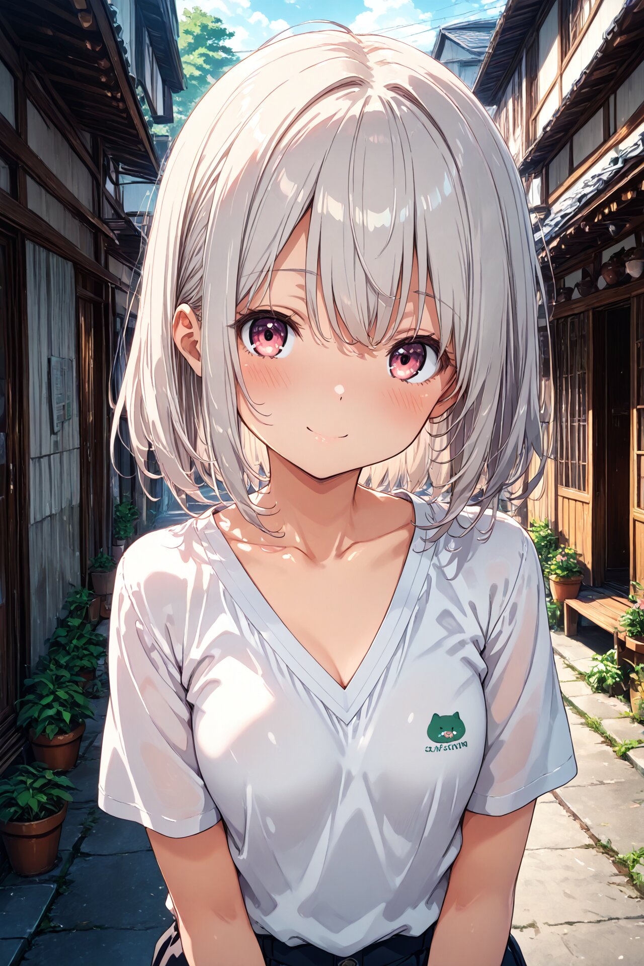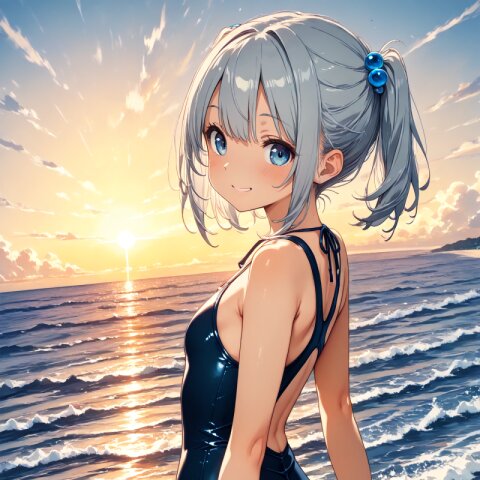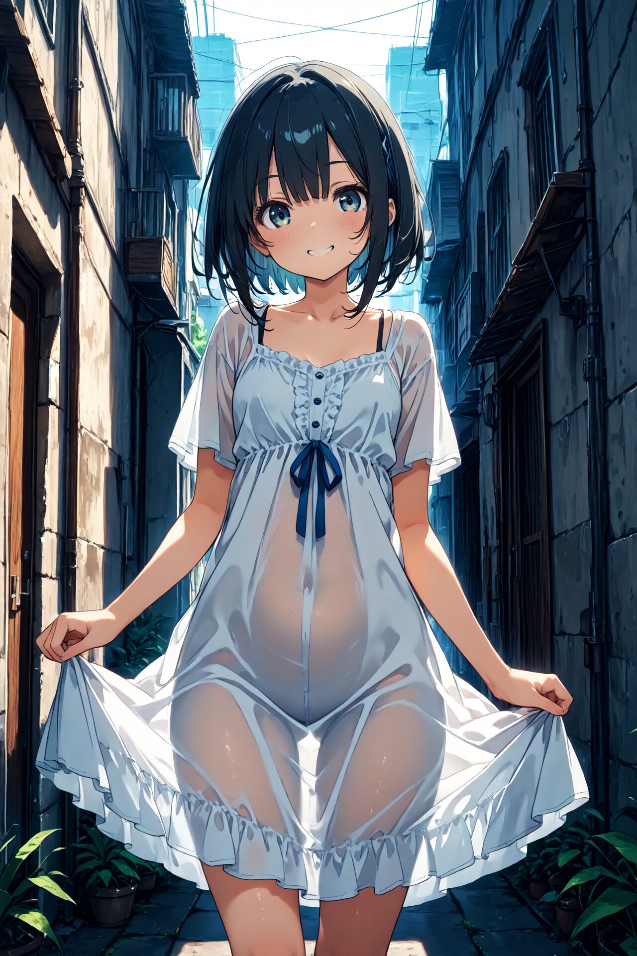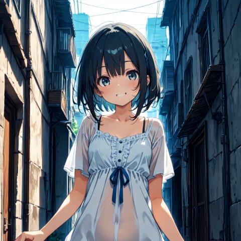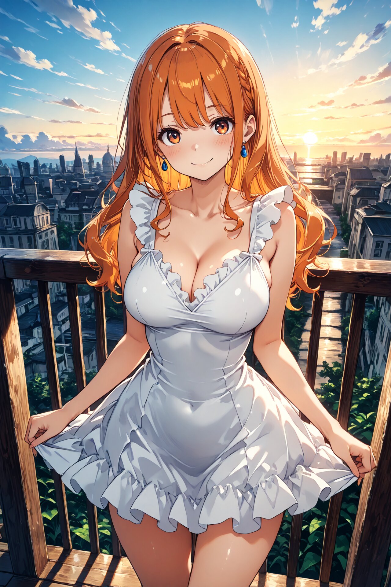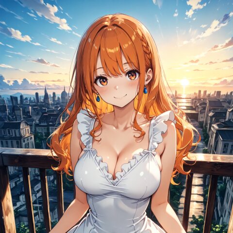masterpiece, best quality, one piece dress, outdoors, smile,