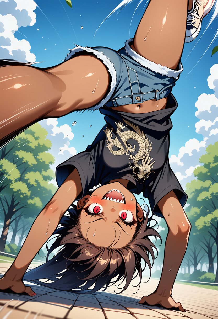 ai-generated, year 2024, anime style, 1girl, solo, dynamic action::, midday, outdoor, in sunny park, from upside down, masterpiece, best quality, ultra detailed, perfect fingers, high resolution, absurdres, perfect anotomy, detailed background, unity 8k wallpaper, location, masterpiece, no text, very aesthetic, masterpiece, no text