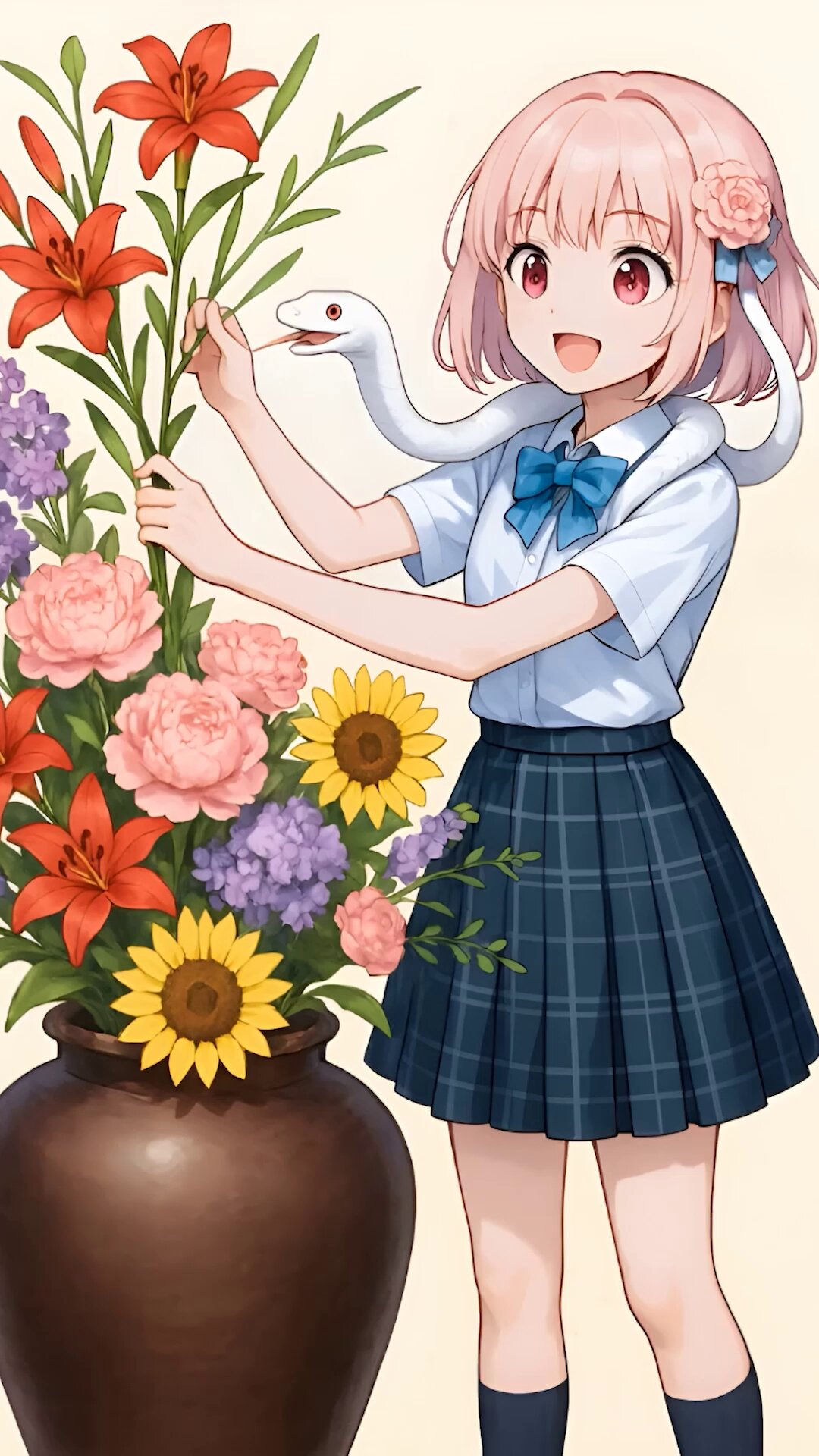 制限時間わずか5分で、ステージに用意されたお花を即興でいけるんやって 😆✨🐍
