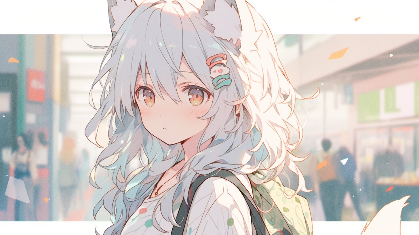 夕陽に染まる髪、ふわりと揺れるしっぽ。