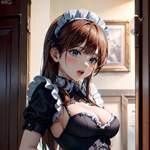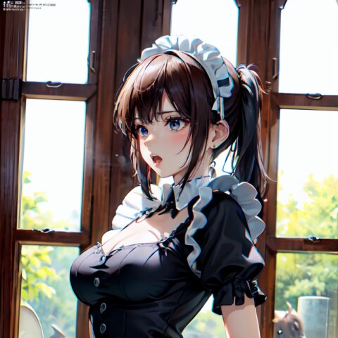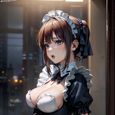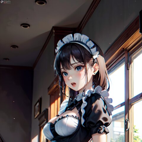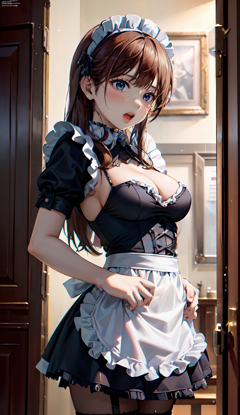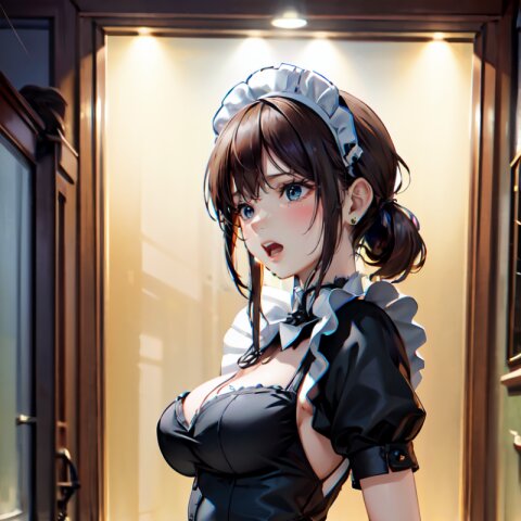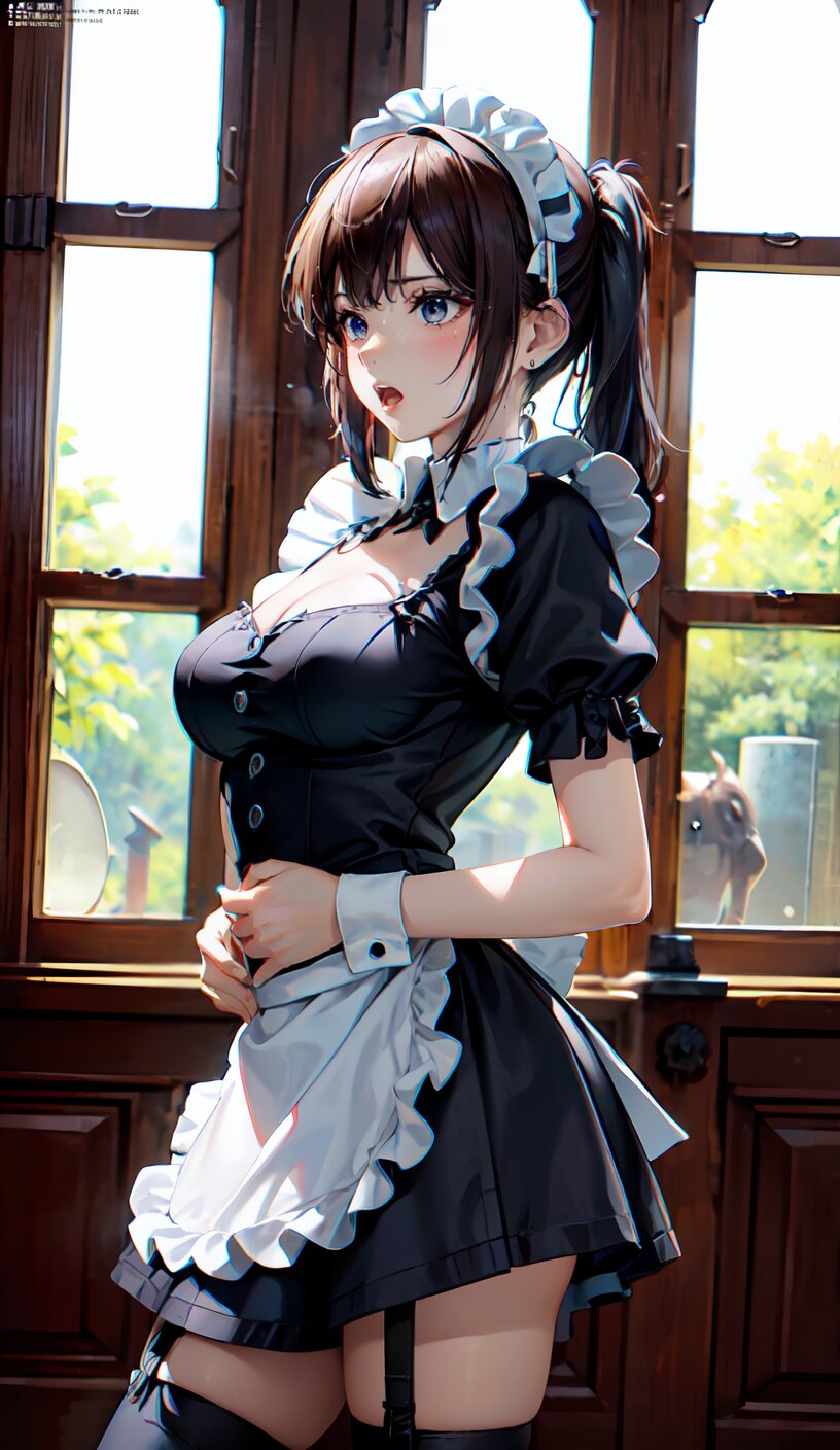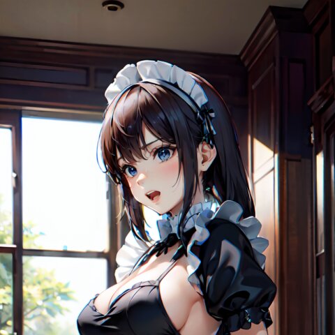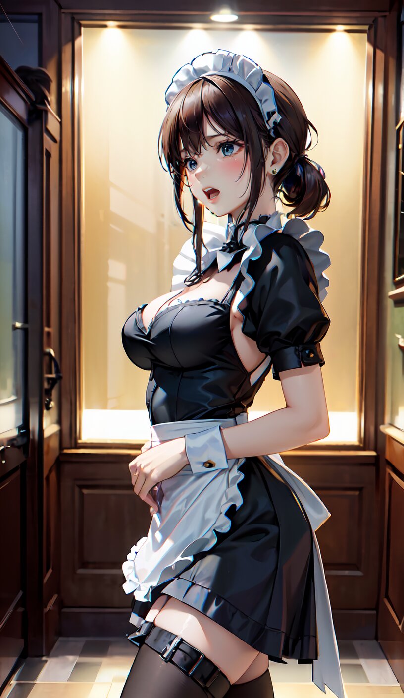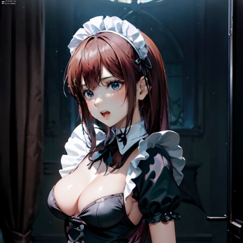 (from front: 1.6), (8k, best quality, masterpiece:1), (realistic, photo-realistic:1.4), HDR, (incredibly absurdres:1.2), 1girl, 20 years old, perfect anatomy, slender, (medium breasts: 1.4), beautiful detailed face, (cowboy shot: 1.6), perfect skin, detailed skin texture, looking aside, (Gothic Maid: 1.6), (standing and posing: 1.6), in the photo studio, <lora:mihi_v01:0.6>